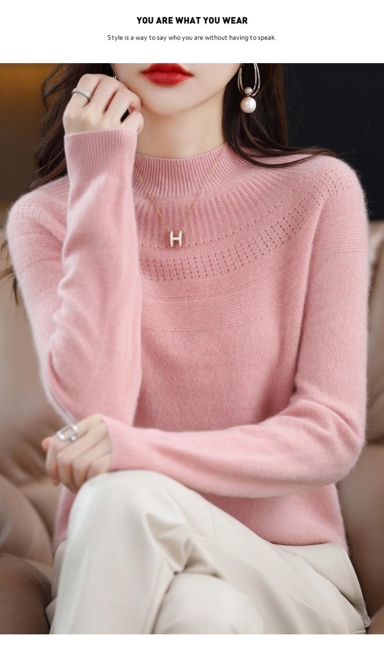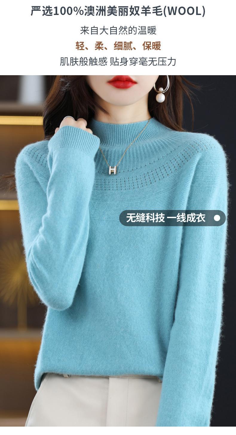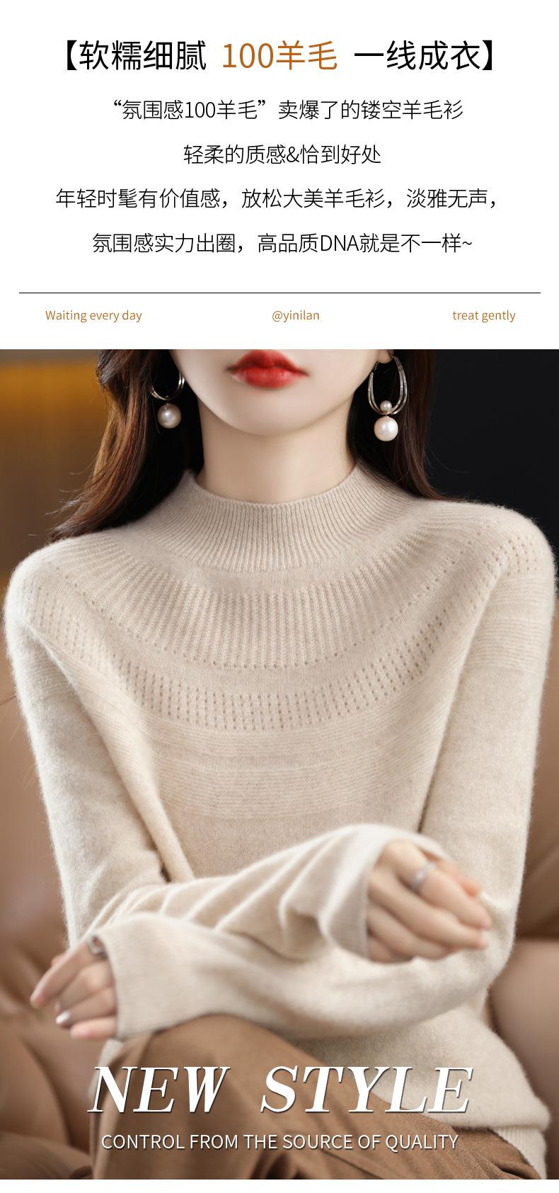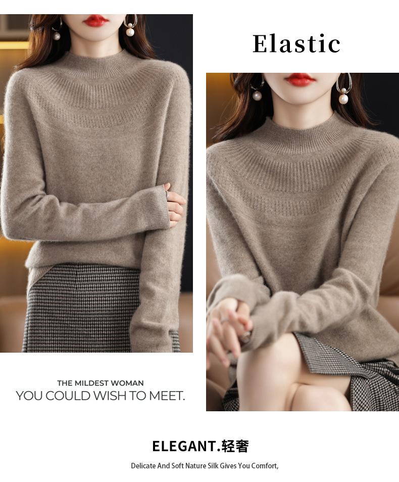 Suéter sin costuras de primera línea para mujer, 100% lana pura, otoño e invierno 2022, jersey holgado de cuello alto con parte inferior