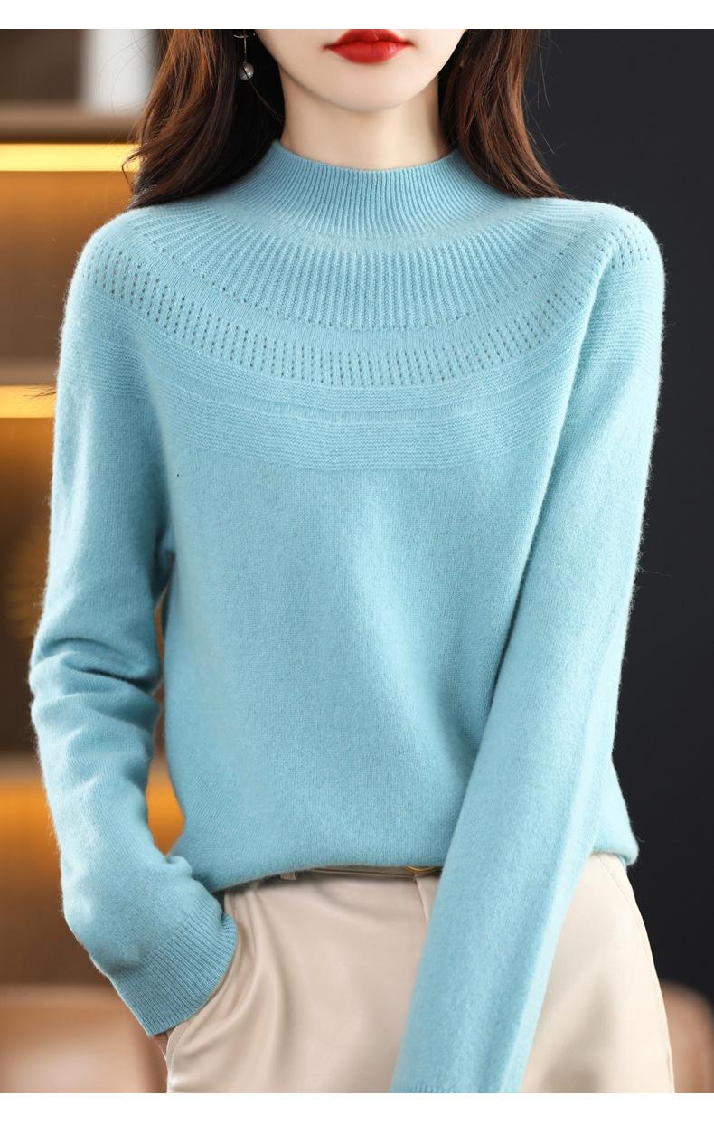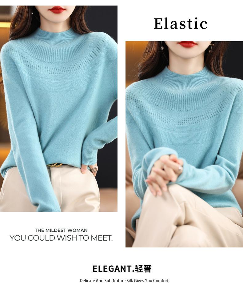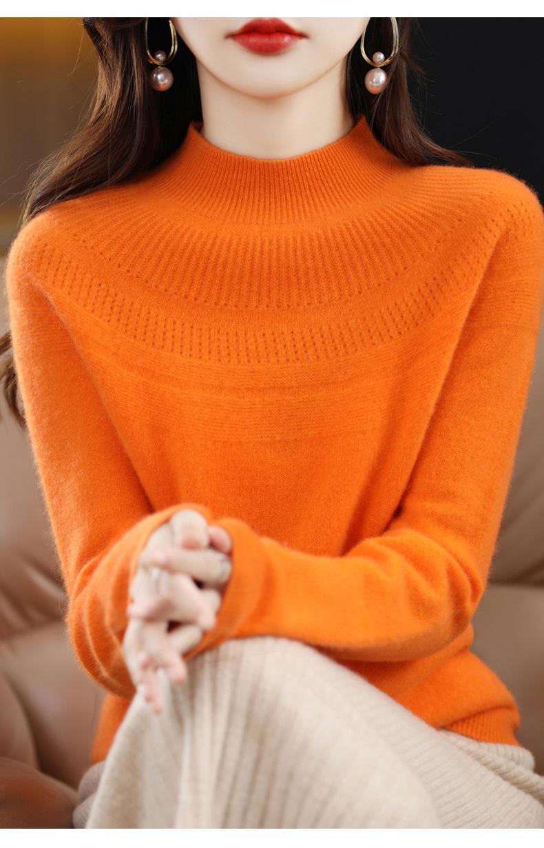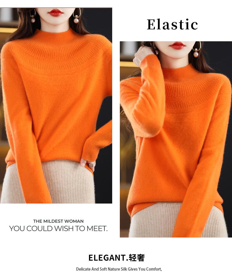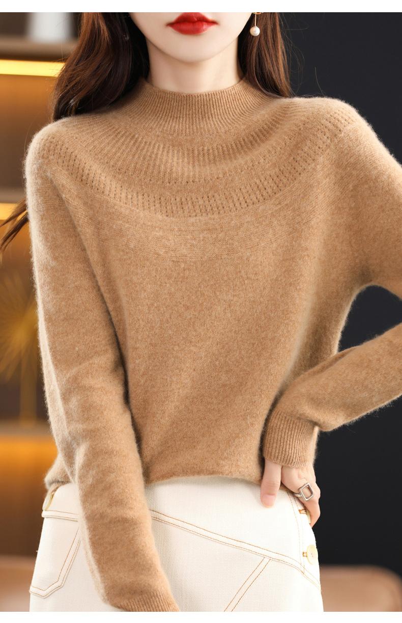Suéter sin costuras de primera línea para mujer, 100% lana pura, otoño e invierno 2022, jersey holgado de cuello alto con parte inferior