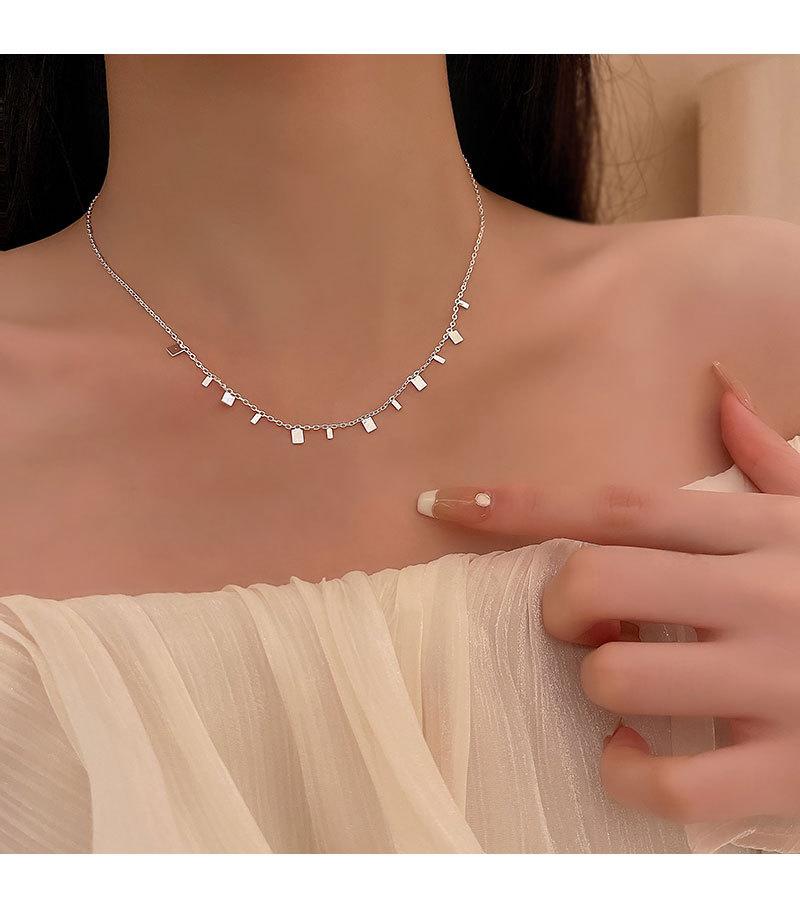 | |  | Collar de acero de titanio con forma de cuadrado geométrico para mujer, gargantilla de cadena de clavícula de hada con personalidad sencilla, accesorios, novedad de 2022 | | |