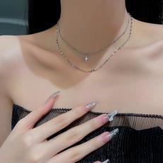| |  | Collar de acero de titanio de doble capa europeo y americano para mujer, nuevo estilo 2022, cadena de clavícula con personalidad de estilo frío, collar versátil de moda | | |