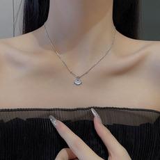 | |  | Collar de acero de titanio para mujer, estilo retro y sencillo, collar de cuentas de calcedonia, diseño de nicho, accesorios colgantes de la marca Blessing | | |