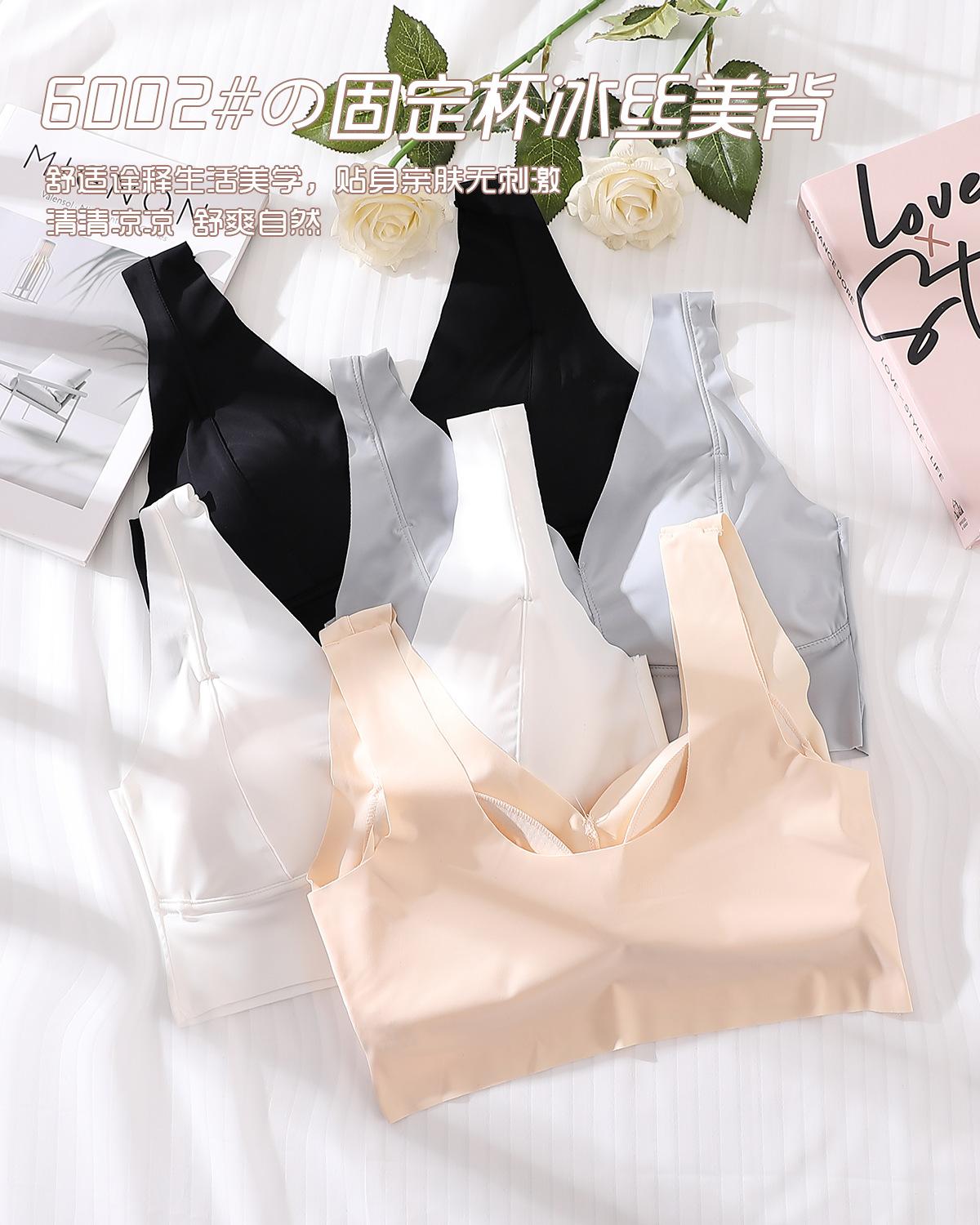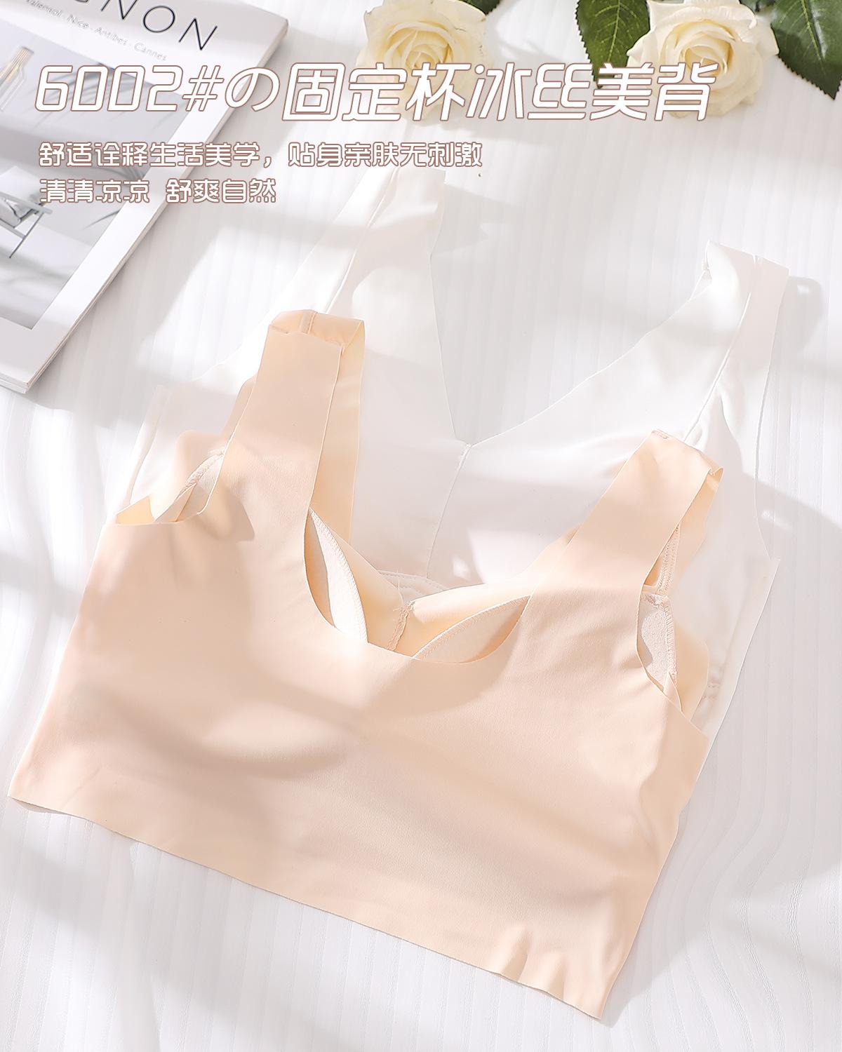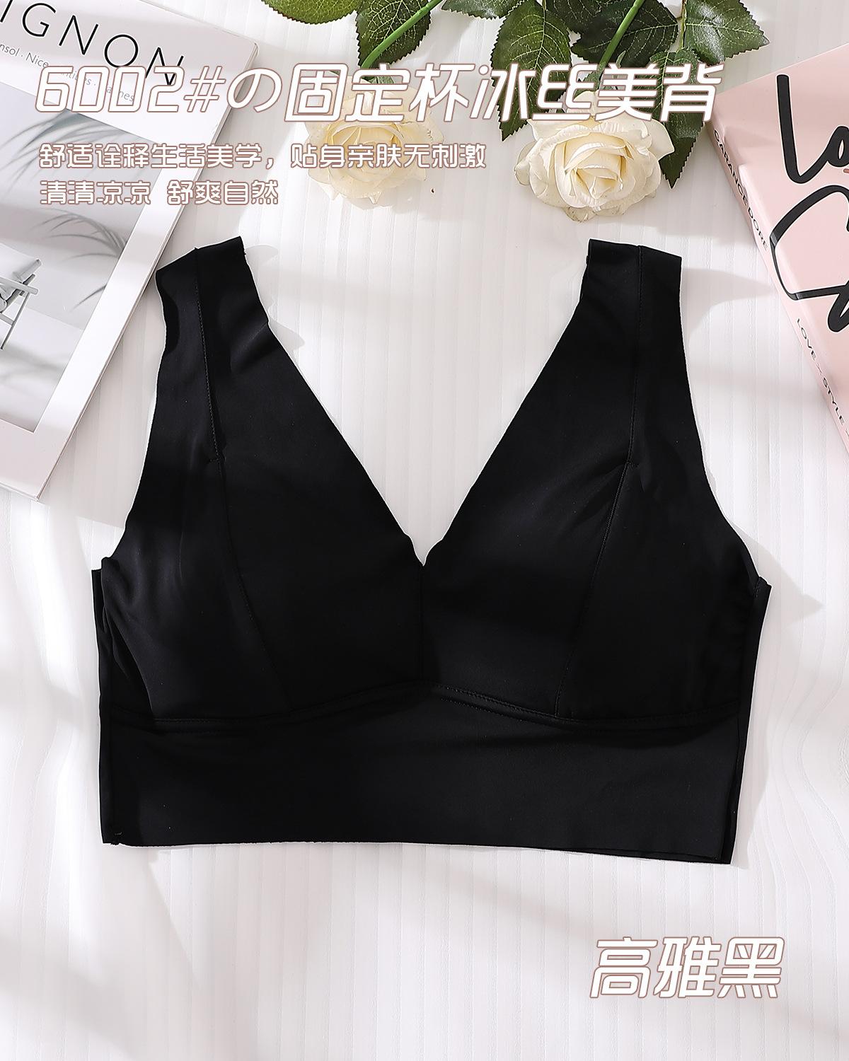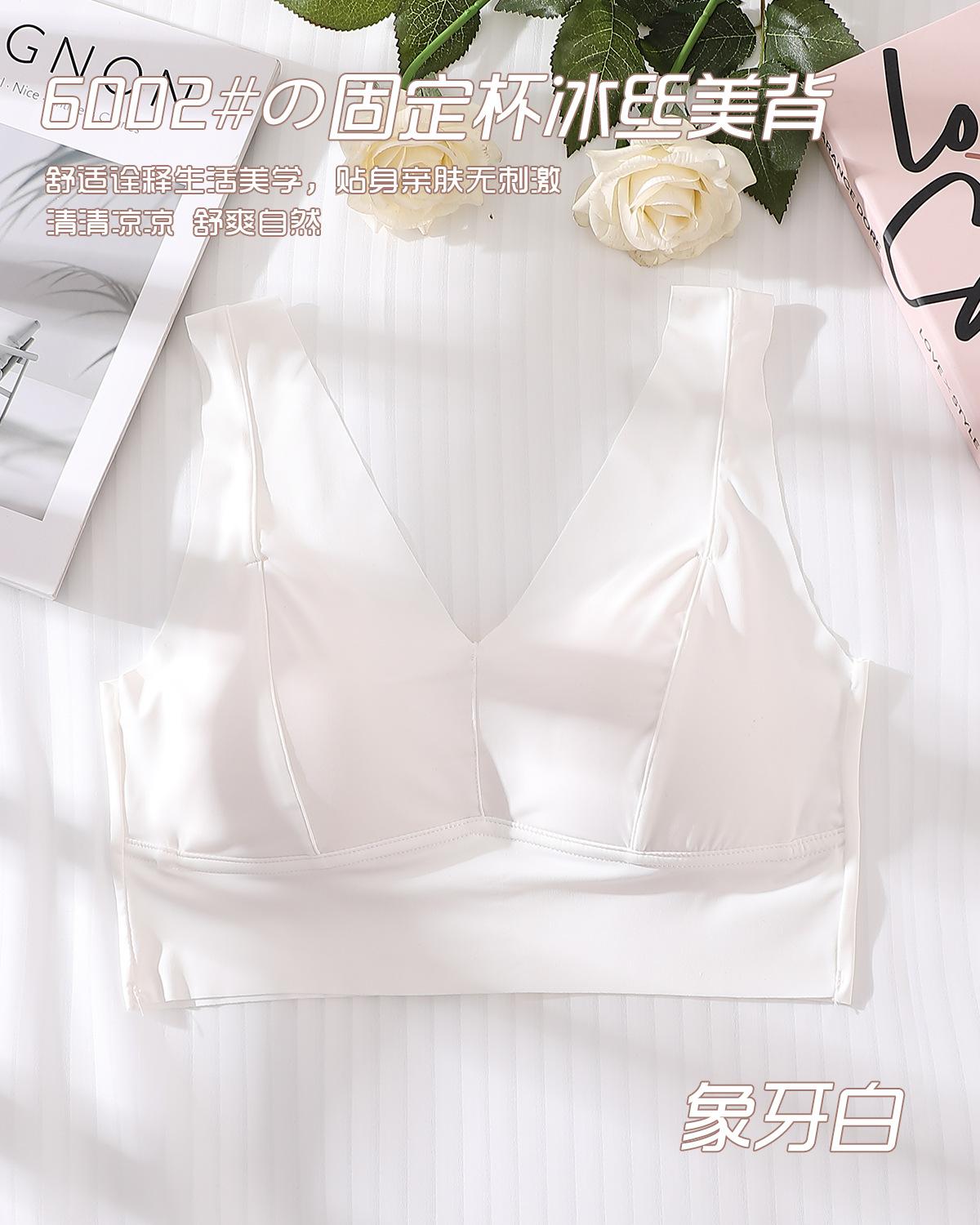 Ropa interior elástica sin costuras de seda de hielo nueva de verano, sexy, con escote en V profundo, push up, cómoda, bonita, con espalda ensanchada y tirantes para los hombros, chaleco de soporte