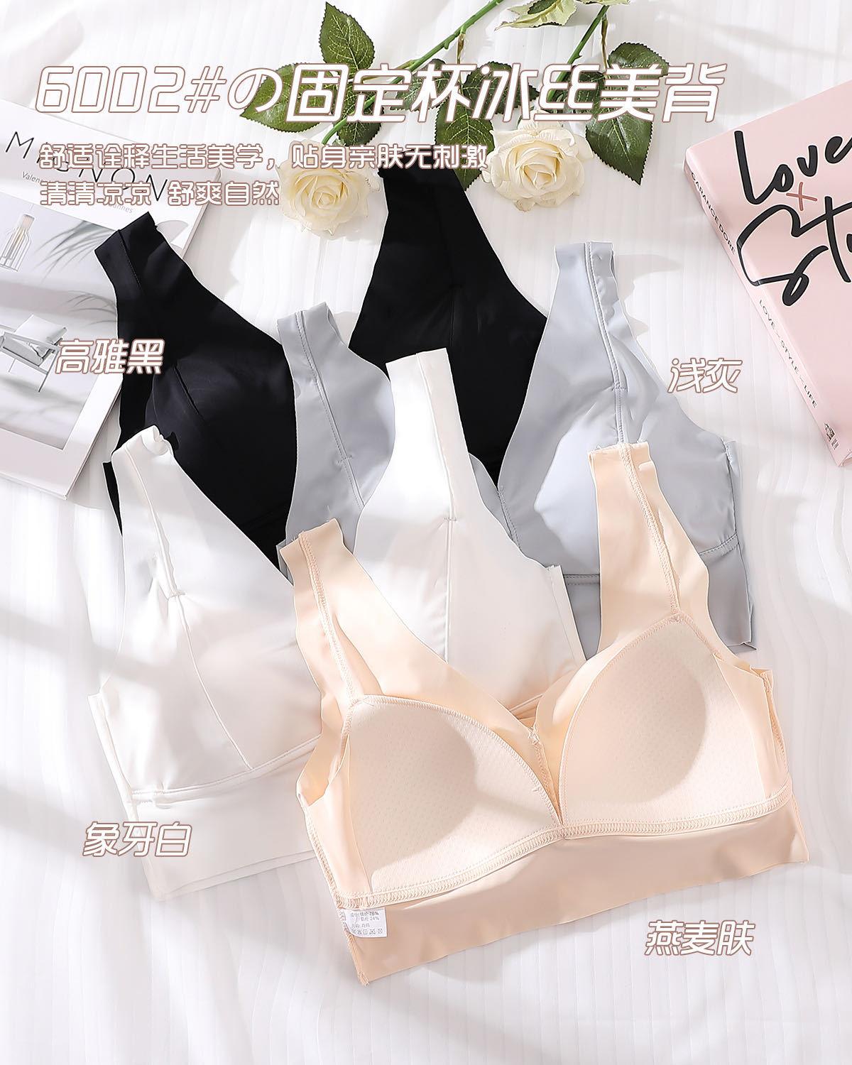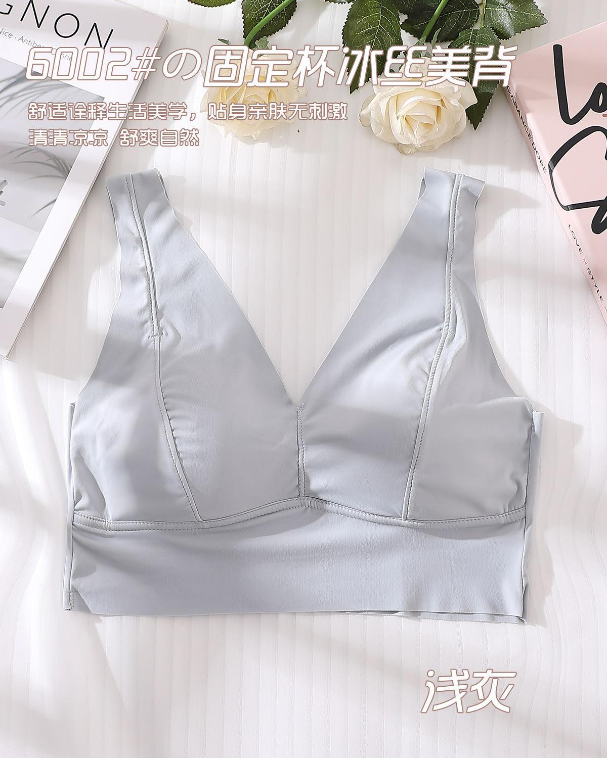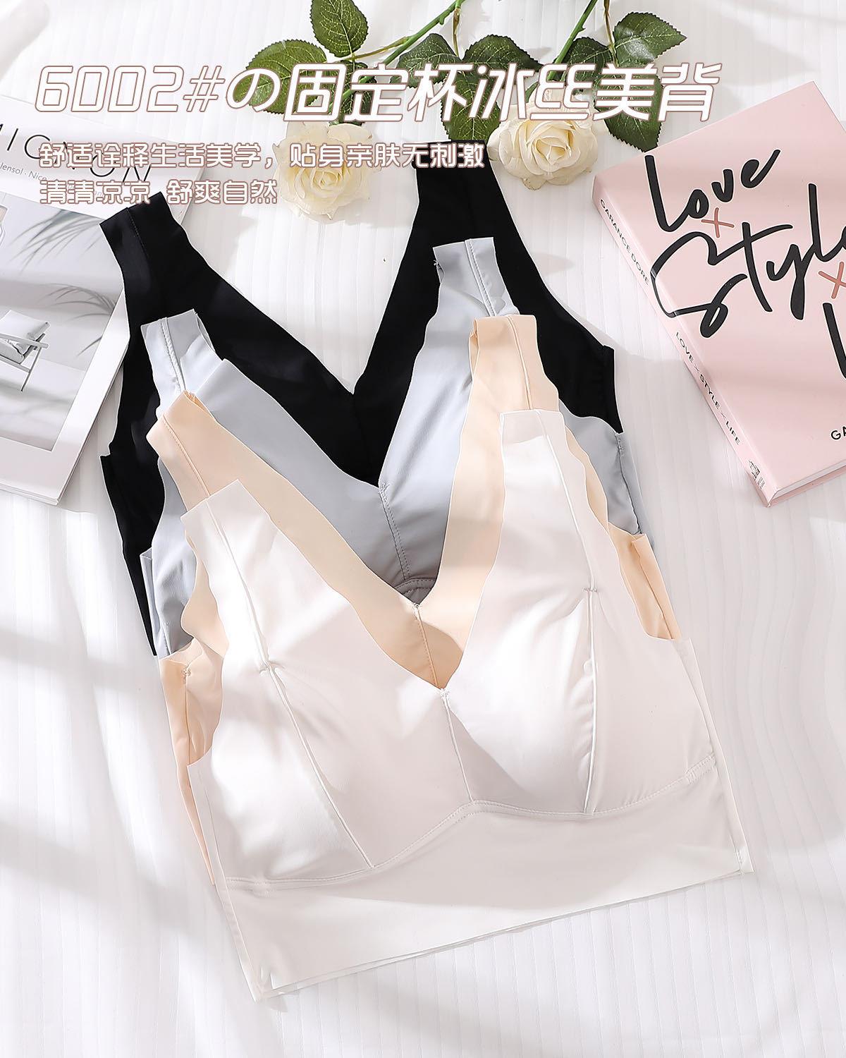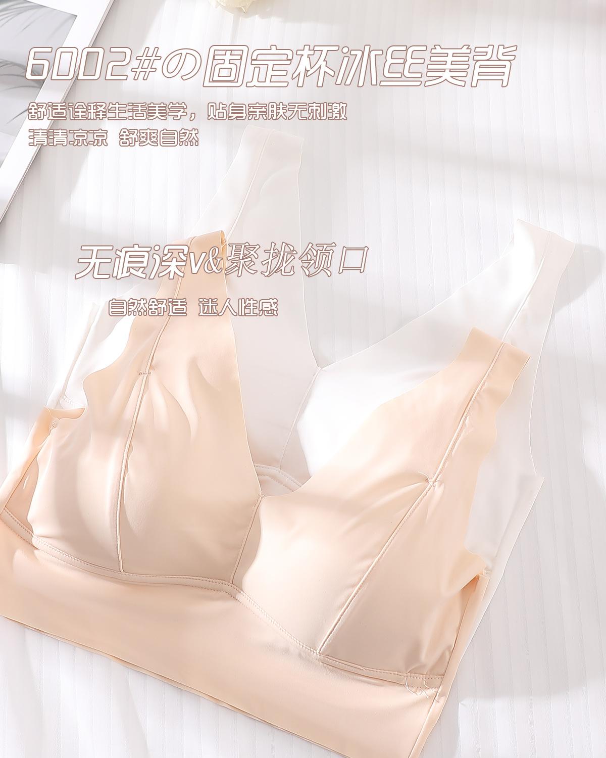 Ropa interior elástica sin costuras de seda de hielo nueva de verano, sexy, con escote en V profundo, push up, cómoda, bonita, con espalda ensanchada y tirantes para los hombros, chaleco de soporte
