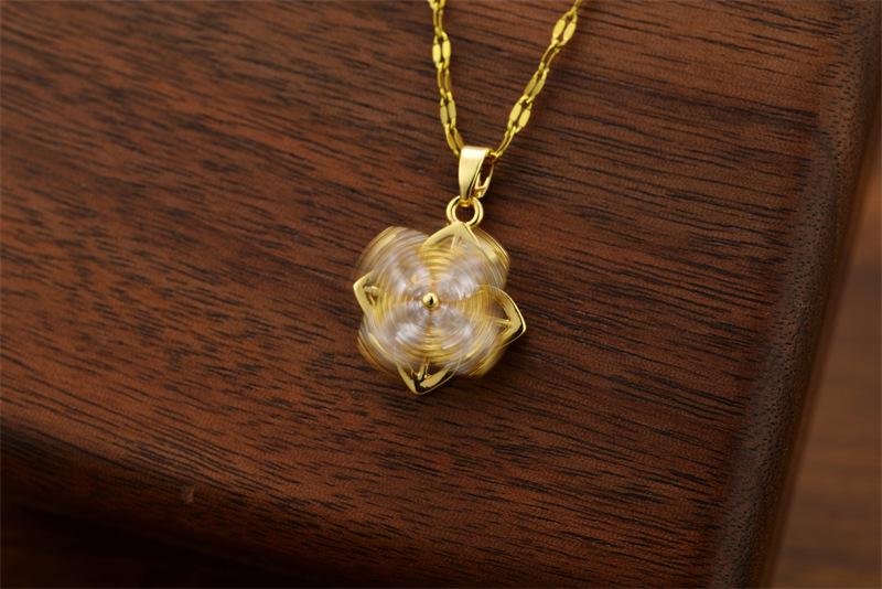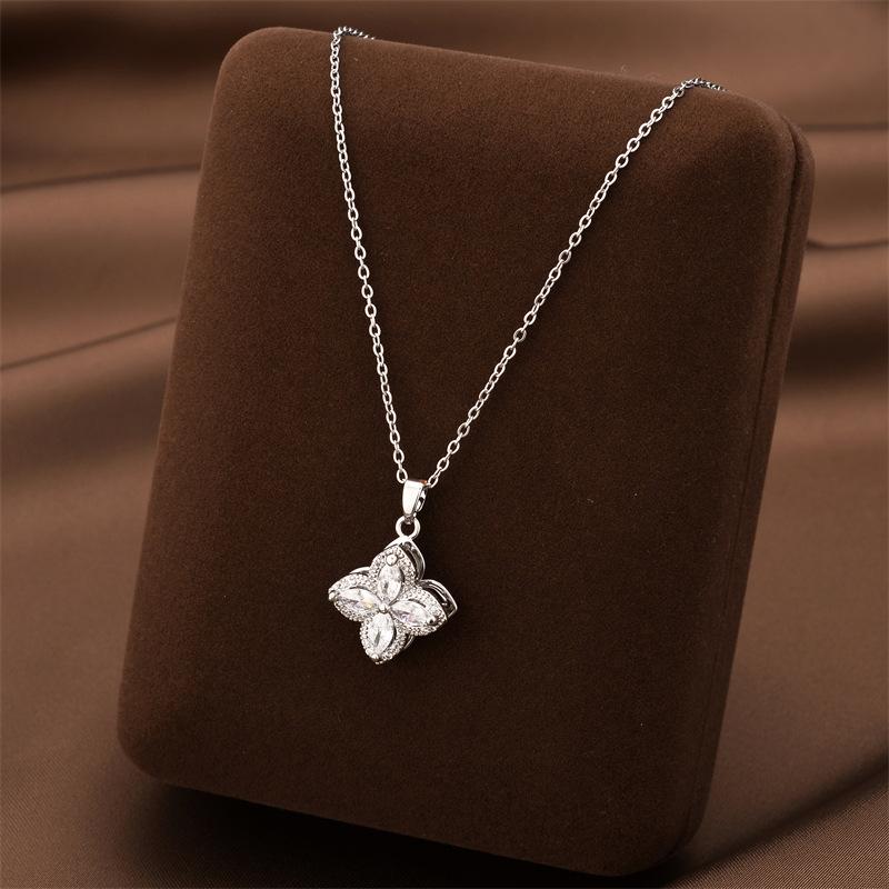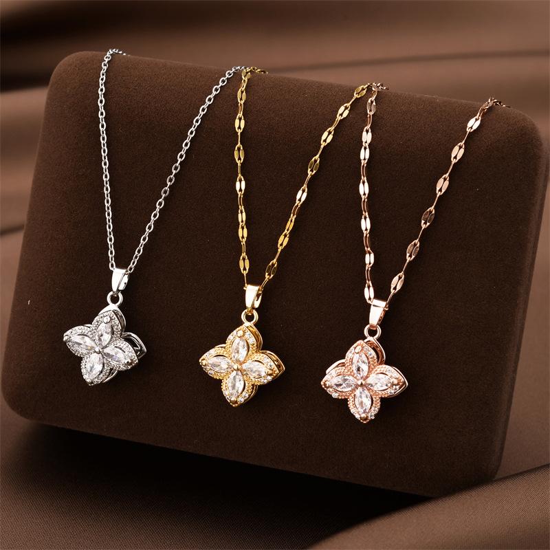 Collar de acero de titanio con colgante de trébol giratorio de celebridades de Internet, cadena de suéter de nicho de lujo ligera para mujer, joyería de cadena de clavícula femenina de alta calidad