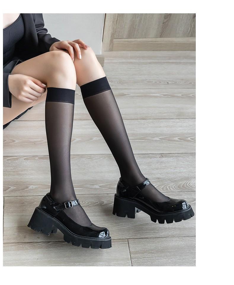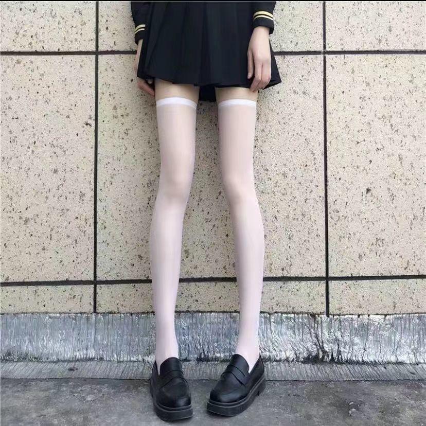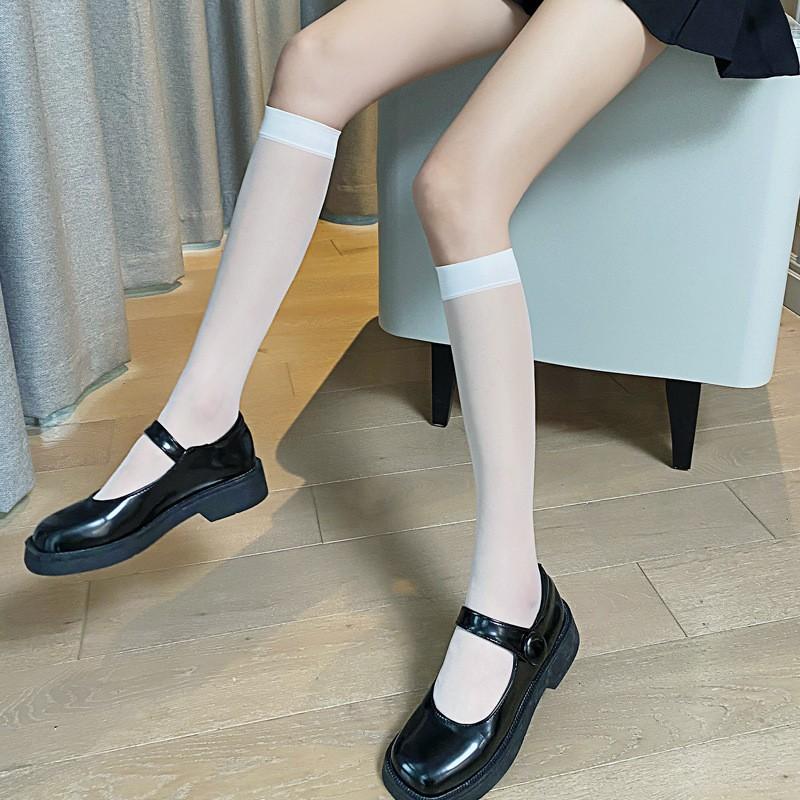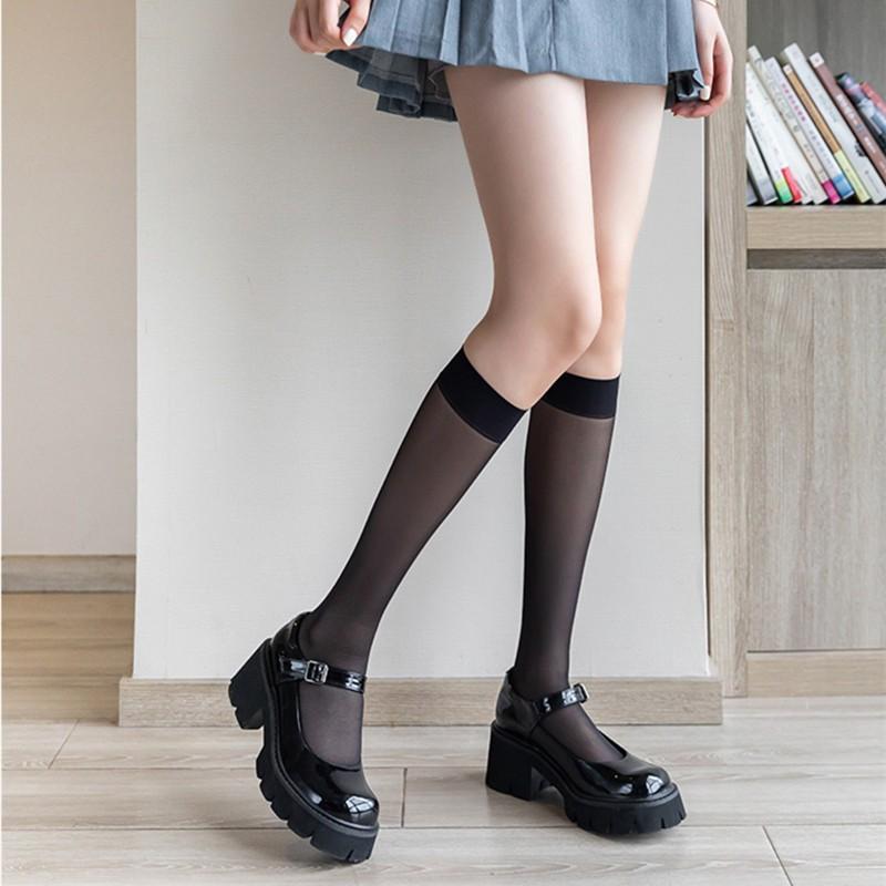 Medias de seda al por mayor puras por encima de la rodilla verano delgadas calcetines de tubo largo japonés jk calcetines de pantorrilla ins borde rojo boca ancha seda negra