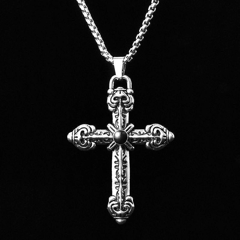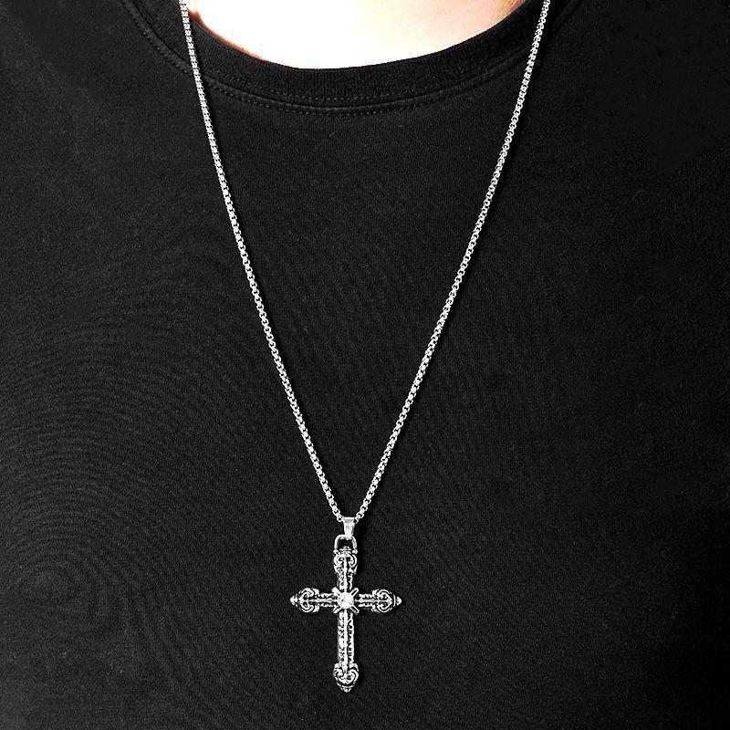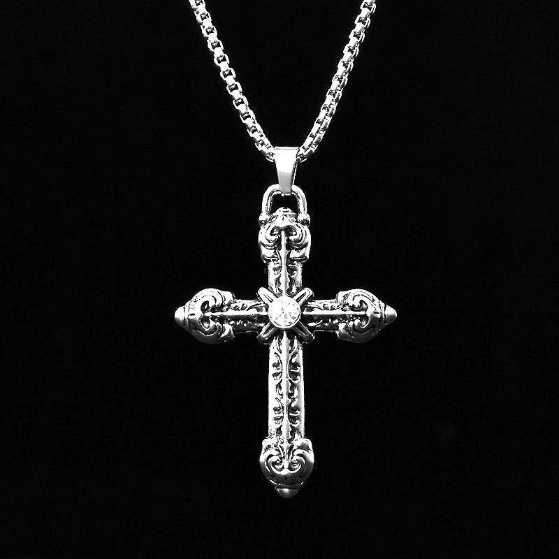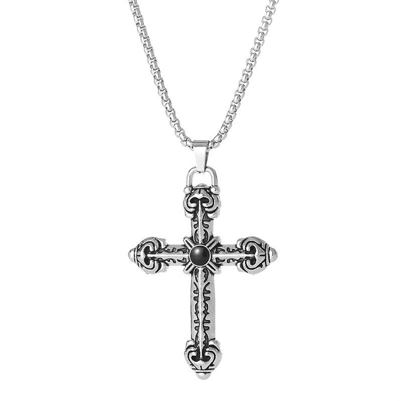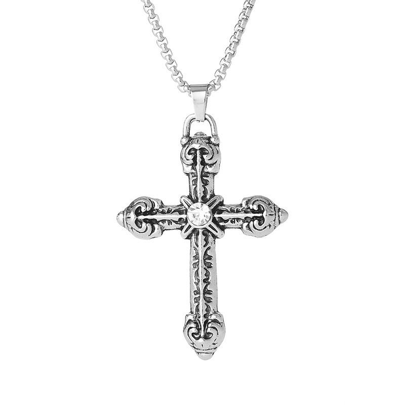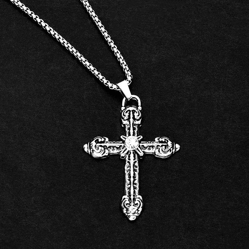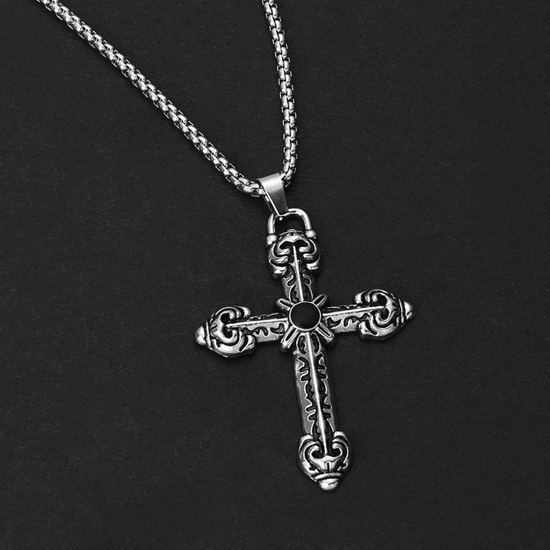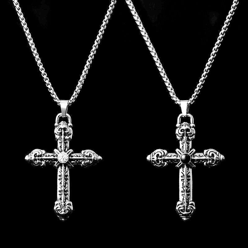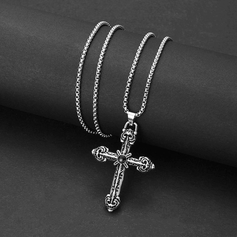 Collar con colgante de cruz de tendencia europea y americana, sencillo, de acero de titanio y estilo hip hop, con personalidad de estudiante, cadena de lana para hombres y mujeres.