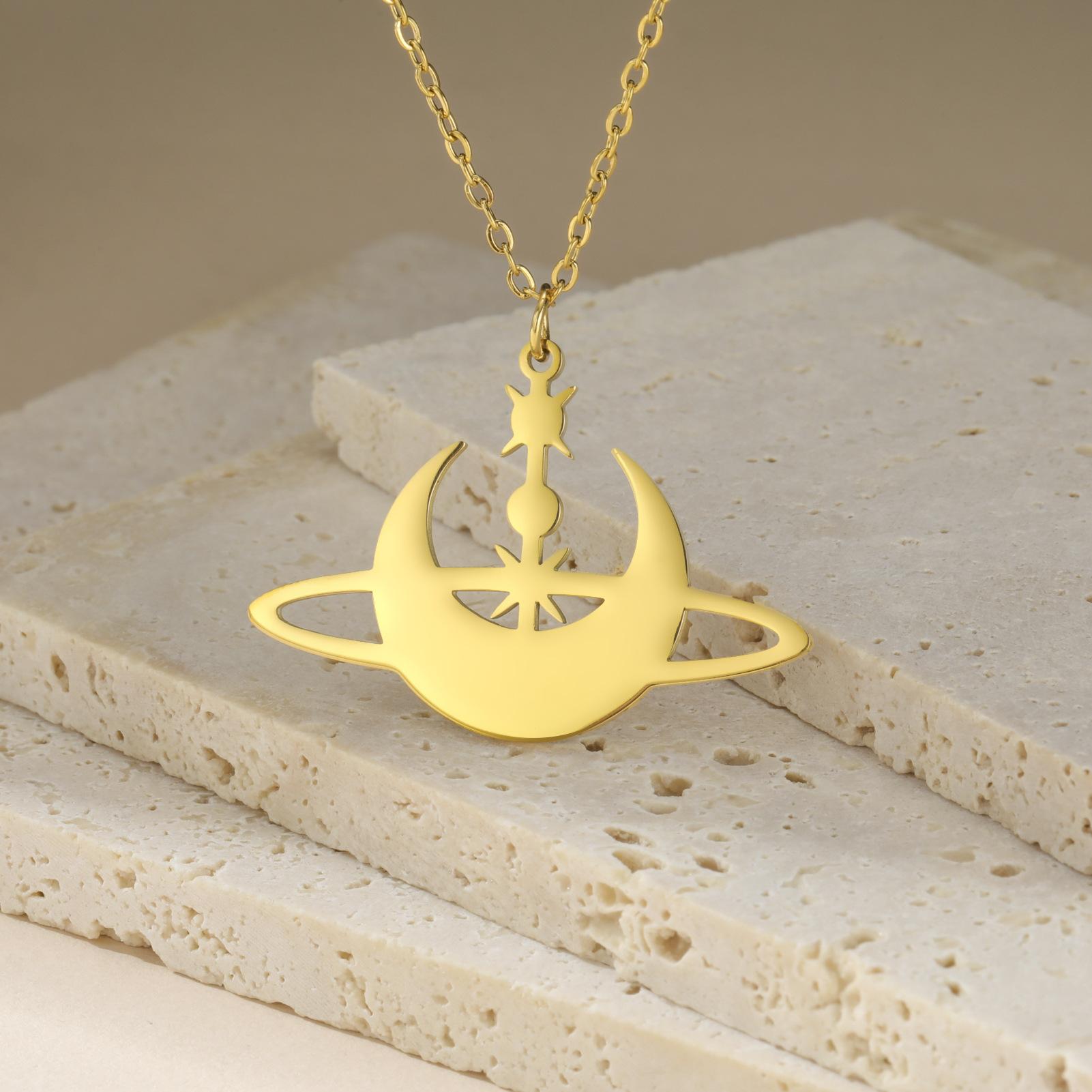 Collar de acero de titanio cortado, personalizado, simple, colgante de luna redonda, moderno collar de acero inoxidable combinable para hombres y mujeres
