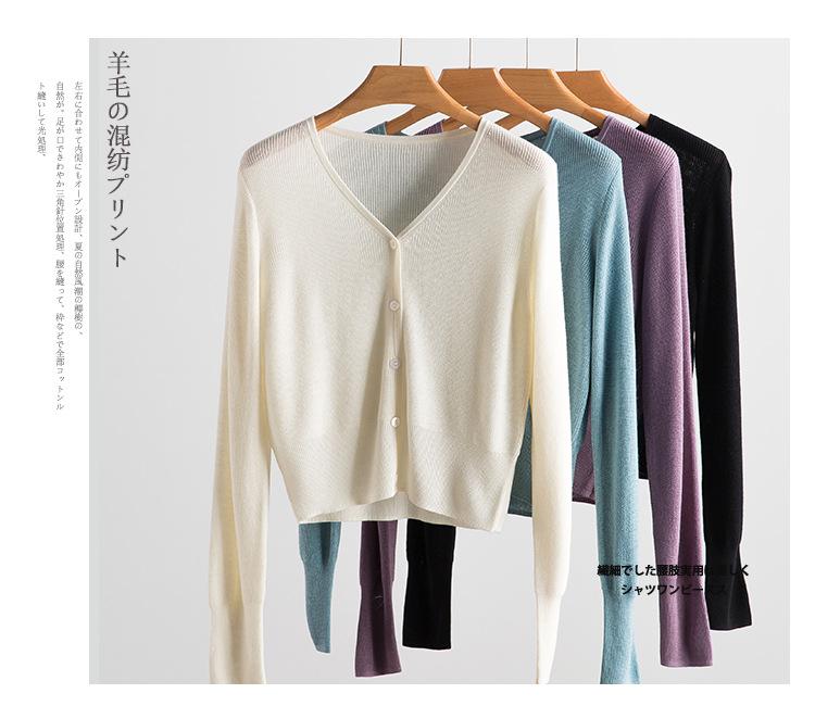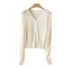 Chaqueta Cárdigan Tejida de Punto con Cuello en V para Mujer de Principios de Otoño, Chal de Manga Larga Calado para Mujer, Prenda Exterior Delgada, Camisa Protectora Solar, Estilo Primavera y Otoño