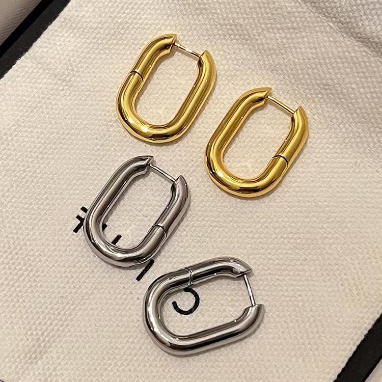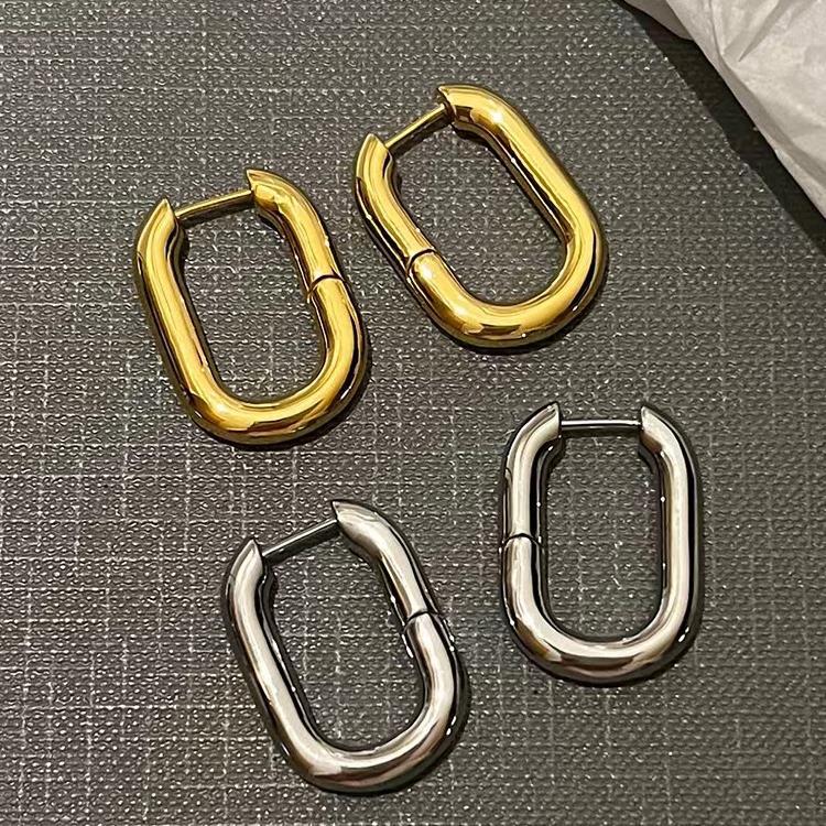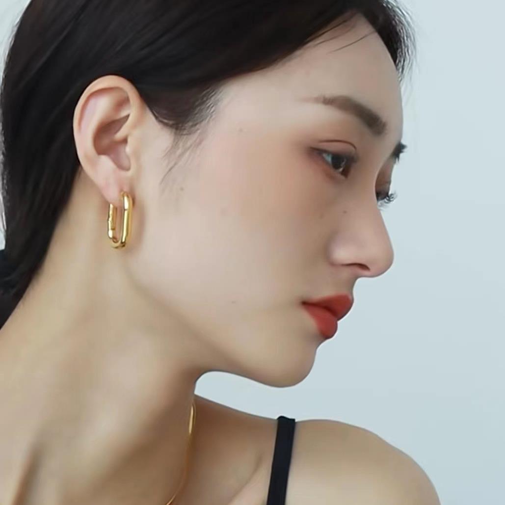 Anillo minimalista europeo y americano en forma de U con hebilla de oreja chapada en oro, nicho, personalidad simple y moderna, pendientes de estilo frío alto con borde cruzado