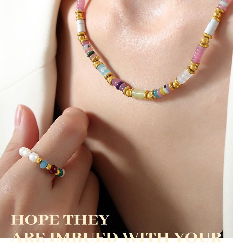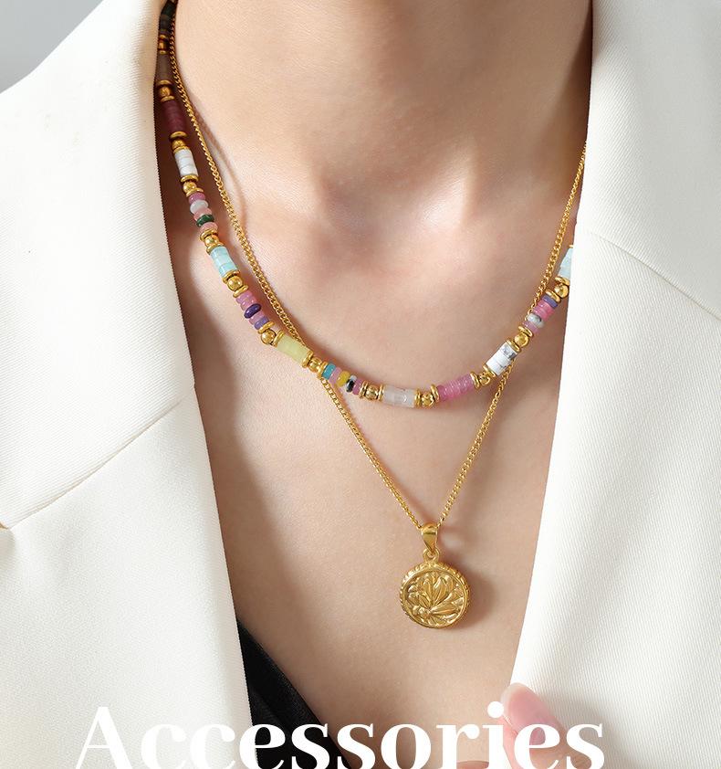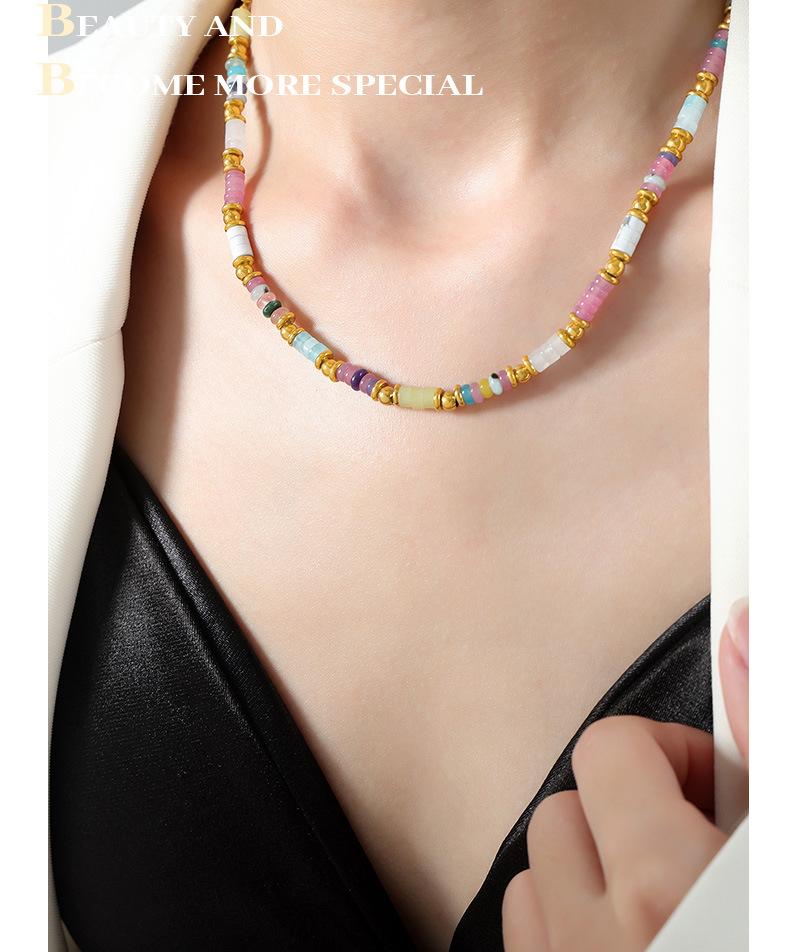 Collar de acero de titanio chapado en oro con cuentas de ábaco de color, joyería de alta calidad, estilo informal de vacaciones, hecho a mano