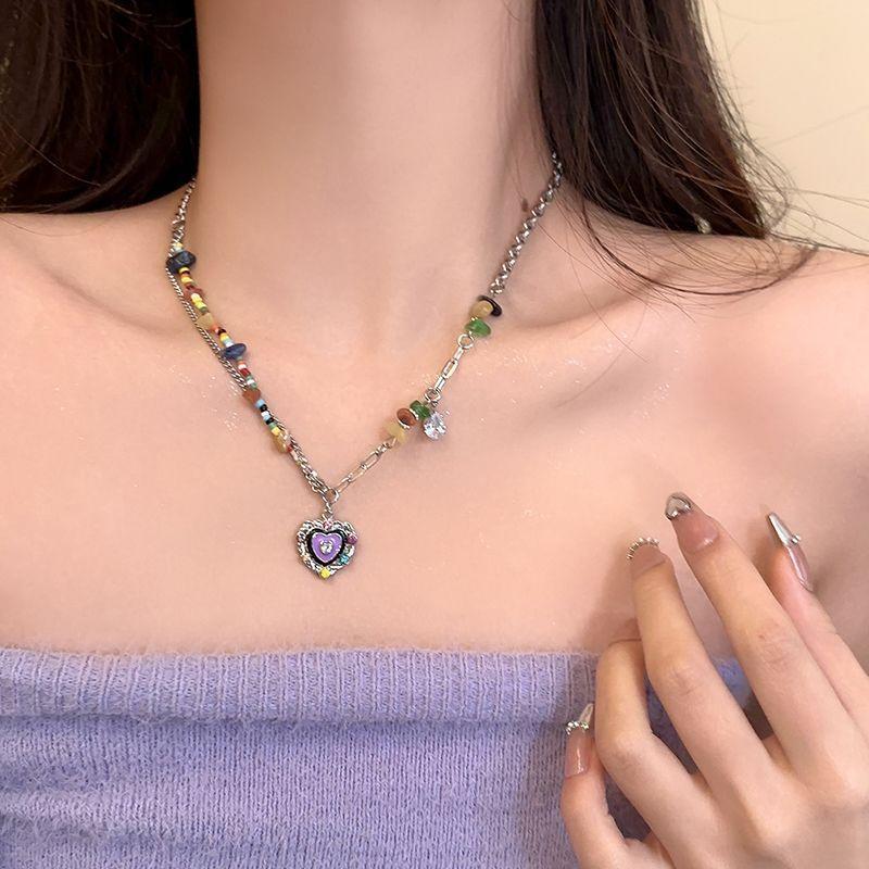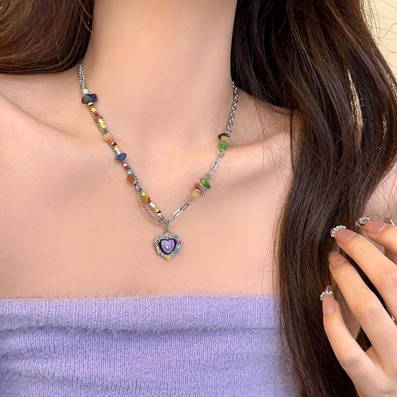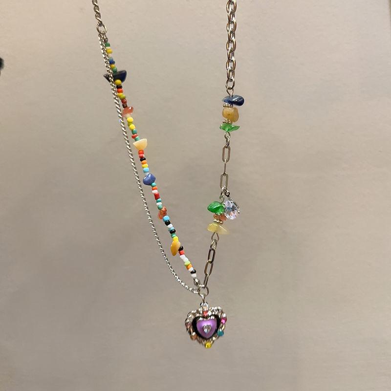 Collar Colorido ~ Collar de Gota de Amor de Piedra Colorida Esmaltado Set Collar Cadena Clavícula Marea Nuevo Nicho Dulce Cool Chica Picante Verano para Mujer