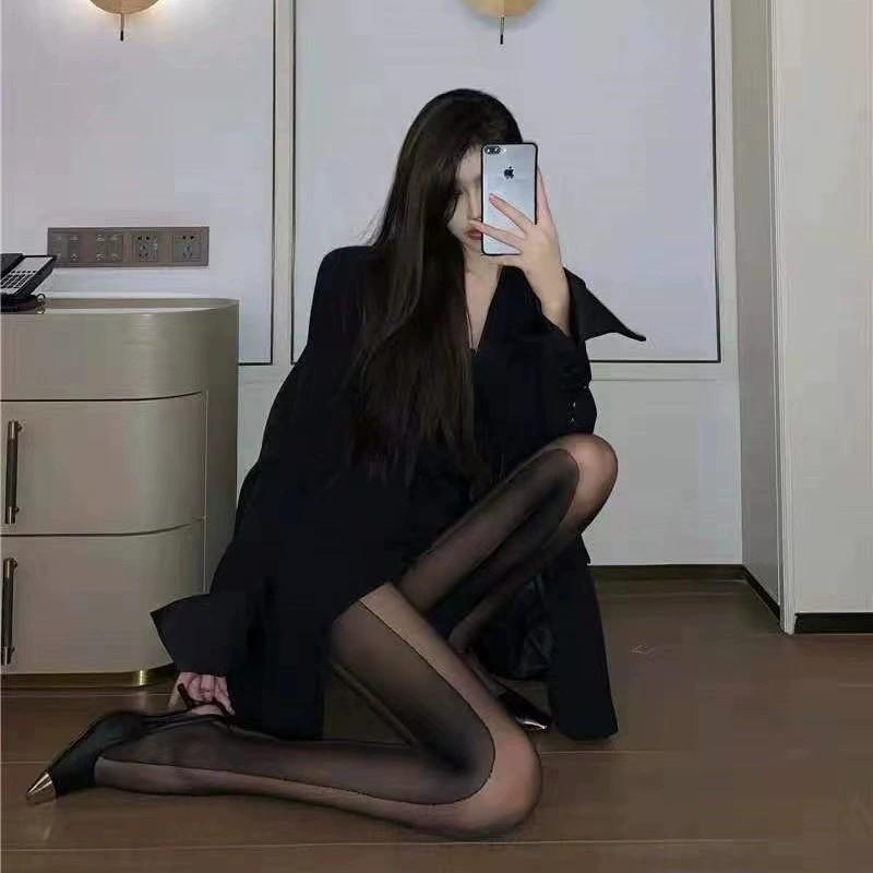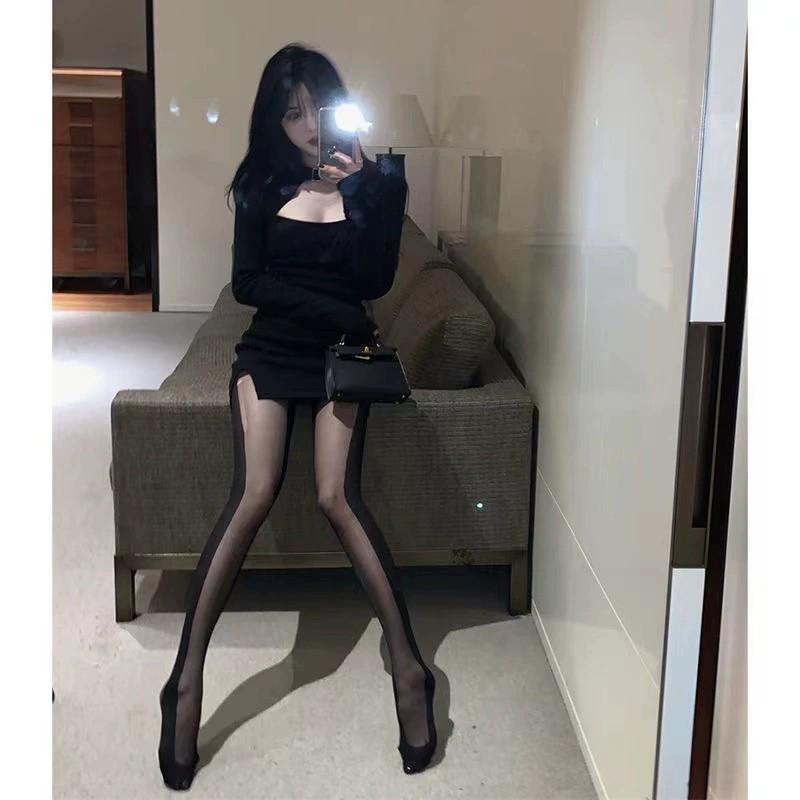 Pantimedias de seda negra con costuras de tentación y rayas verticales laterales, sexys, japonesas, de primavera y verano, de aspecto ajustado, sexys, para la parte inferior.