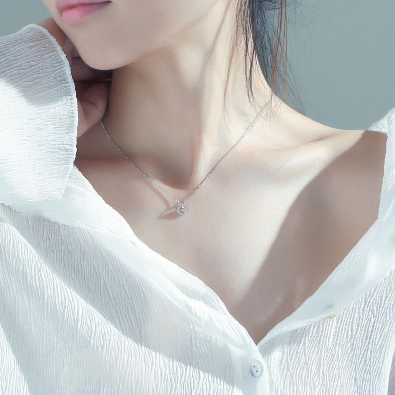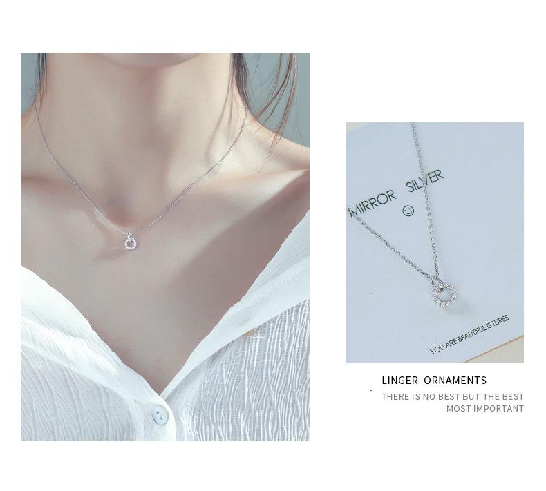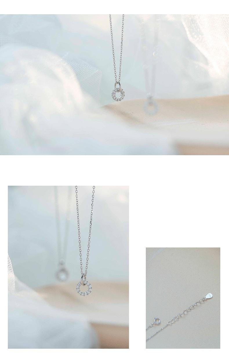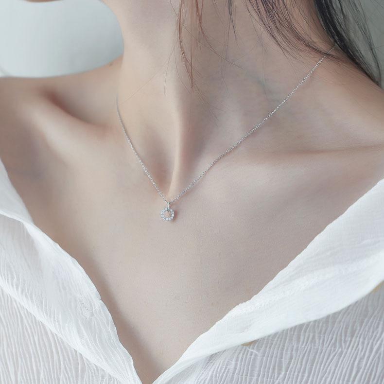 Collar circular simple con incrustaciones de diamantes nuevo transfronterizo europeo y americano, colgante de moda para mujer, luz de lujo, nicho, elegante cadena de clavícula ins