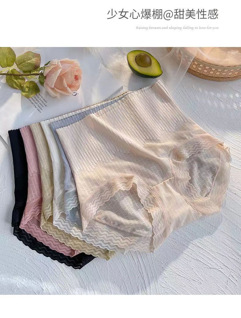 Pantalones moldeadores de cintura alta sin costuras para mujer, ropa interior de encaje fino con realce de cadera y fuerte moldeador de abdomen para estudiantes