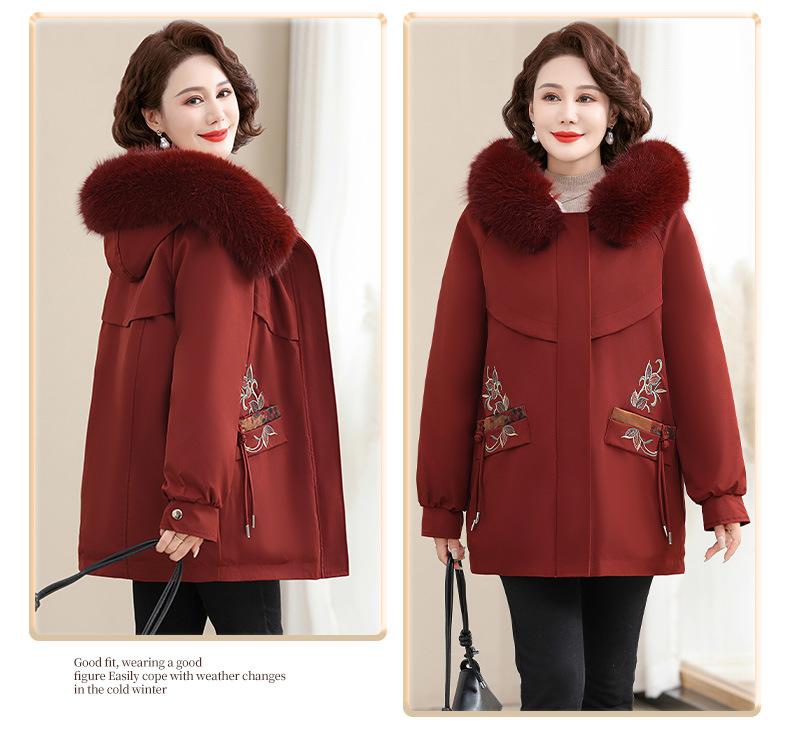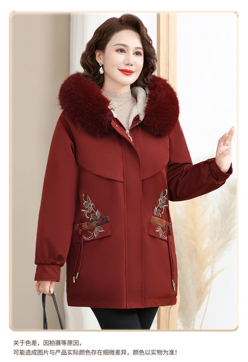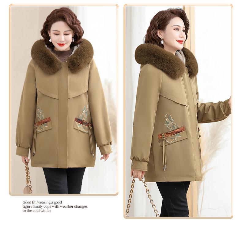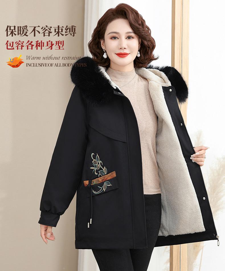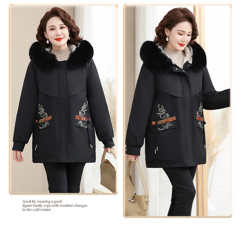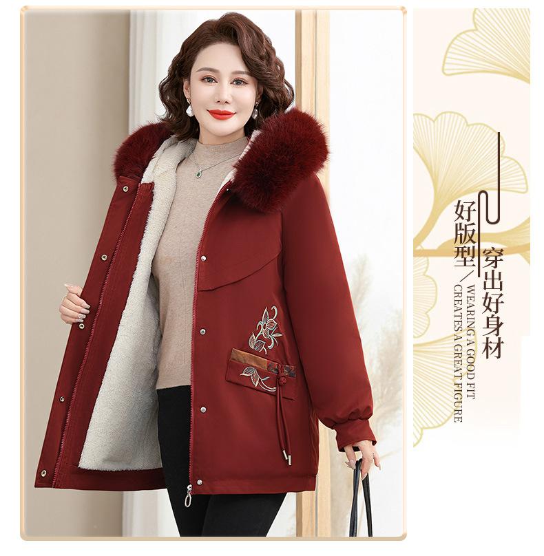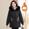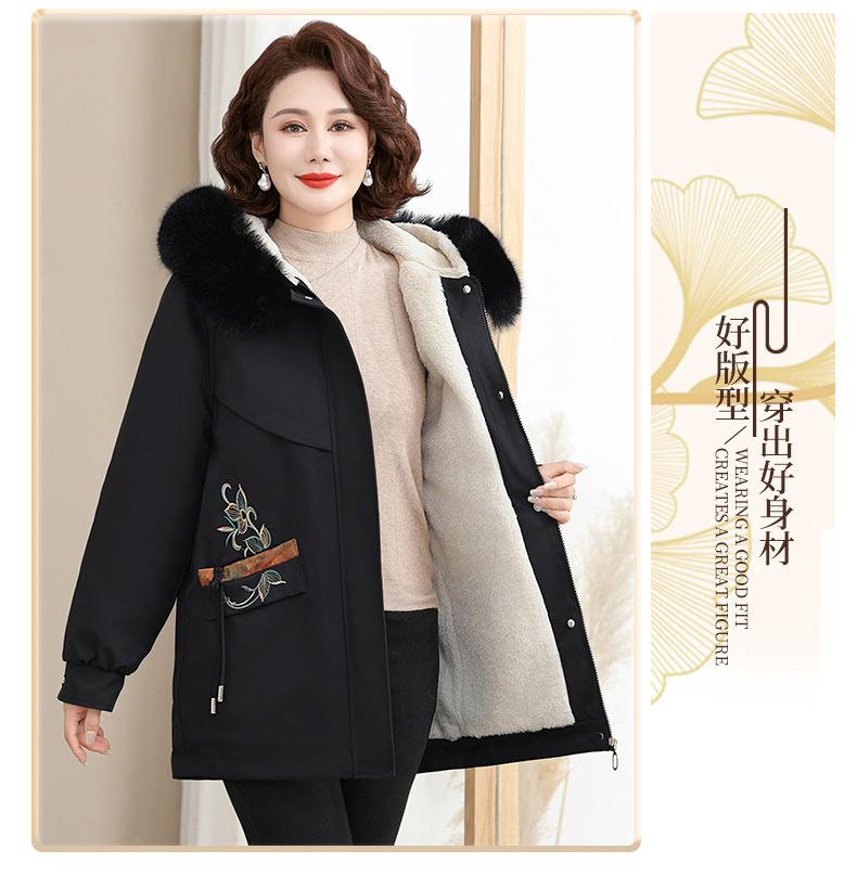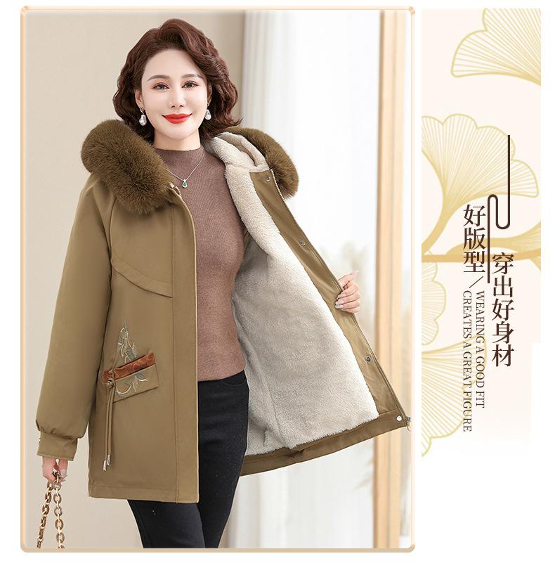 Abrigo grueso con forro polar para madres de mediana edad y mayores, nuevo abrigo de algodón para mujer para invierno, ropa de temperamento con cuello de lana bordado