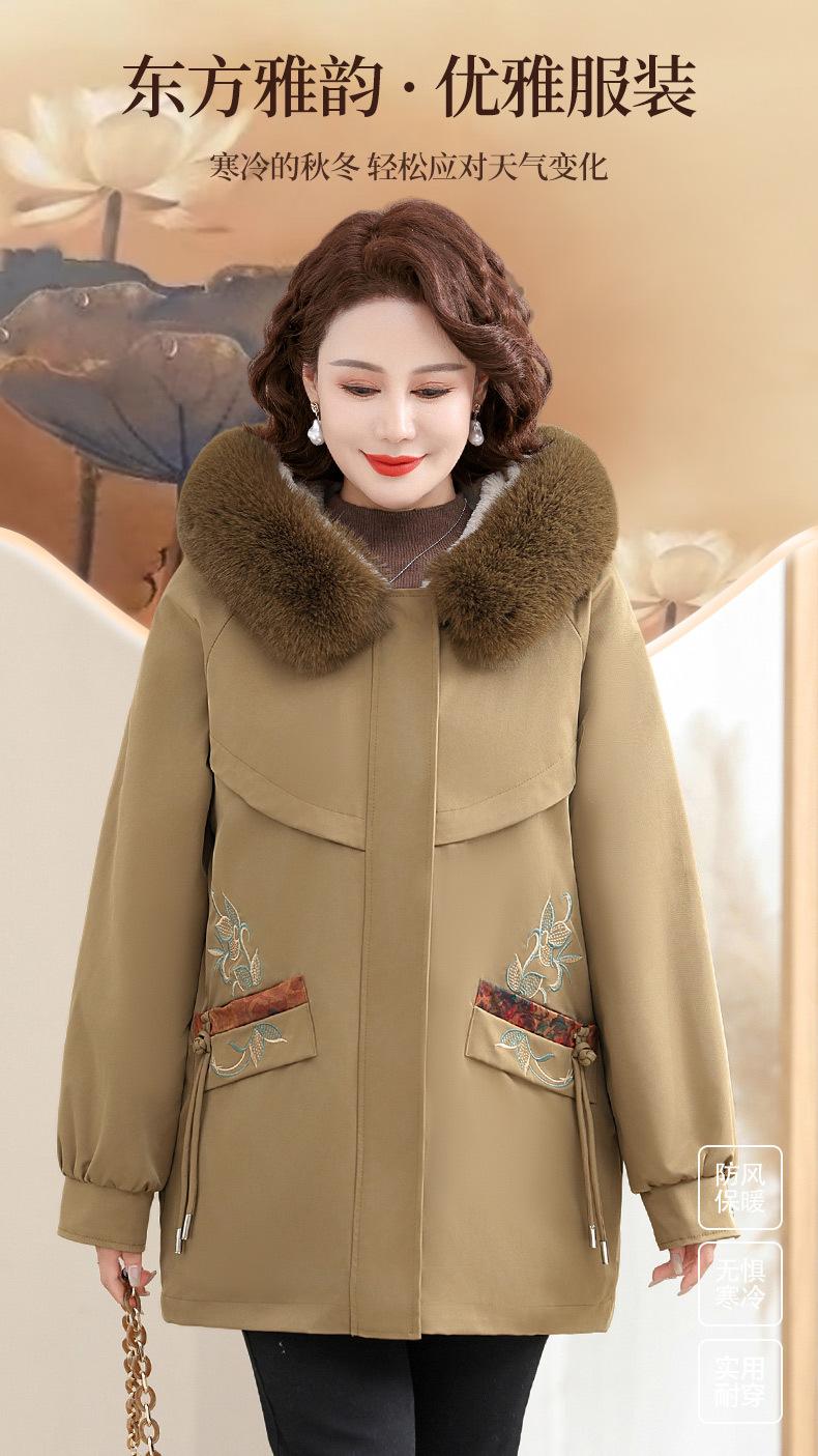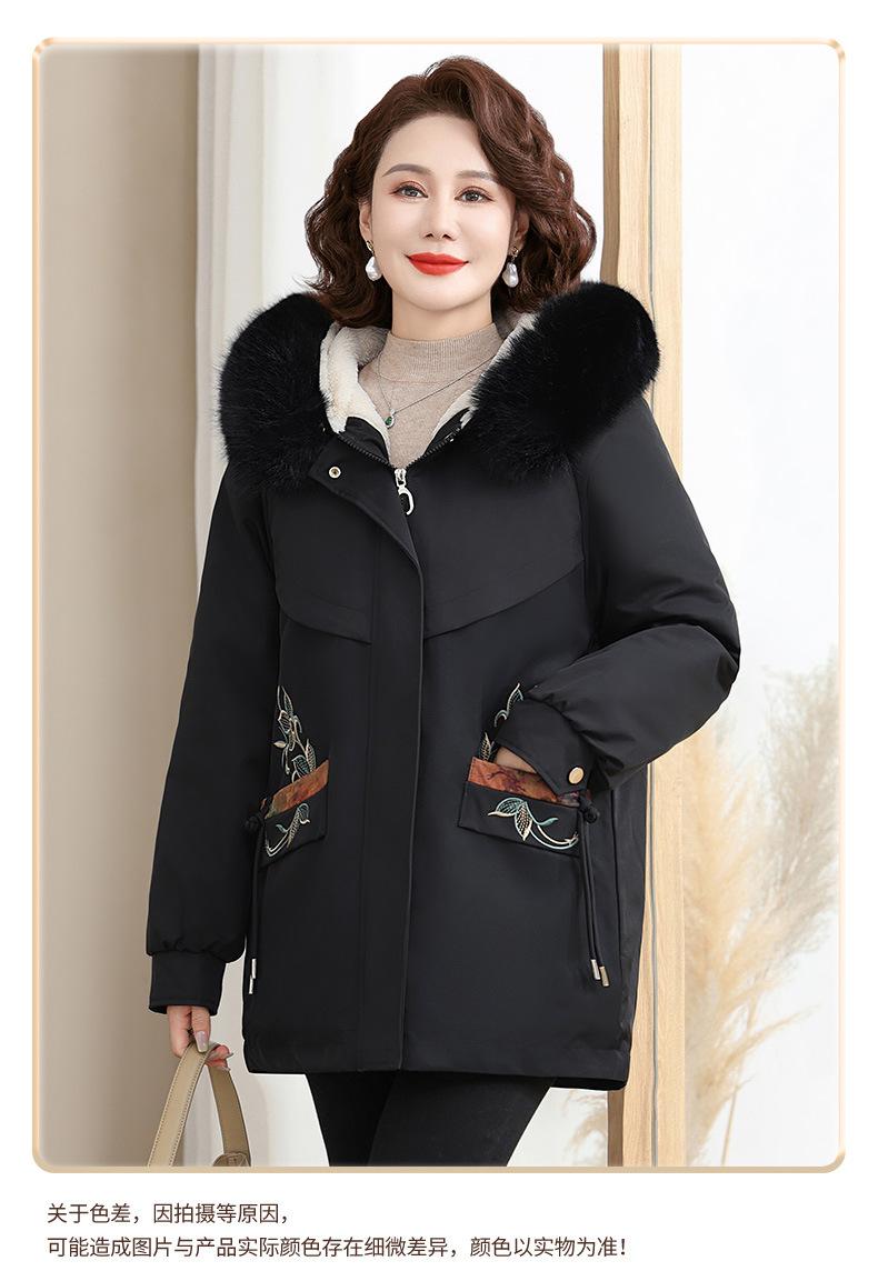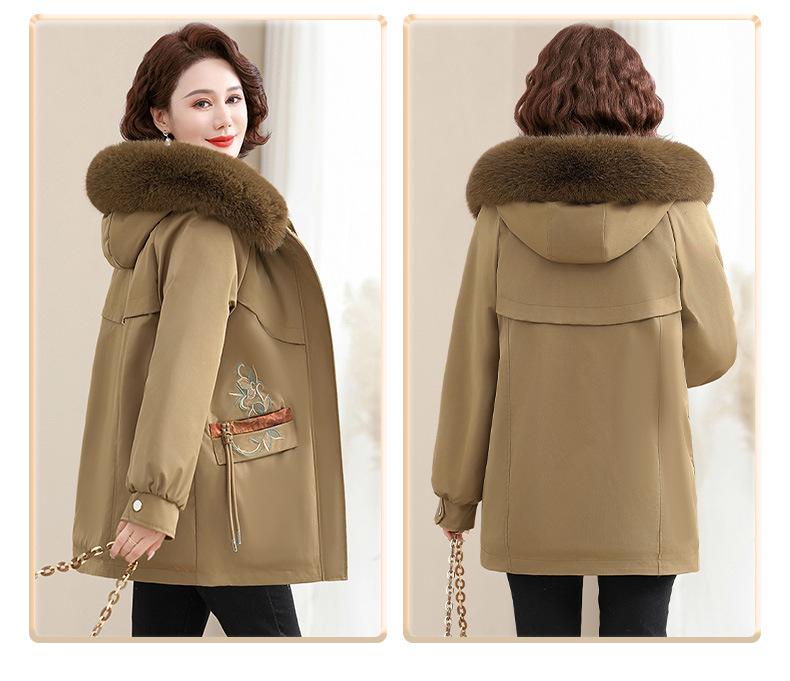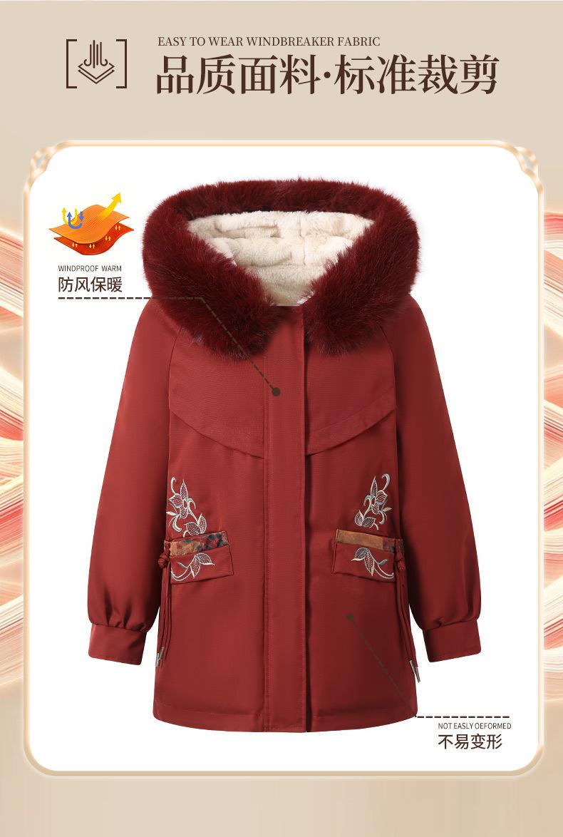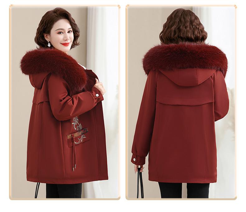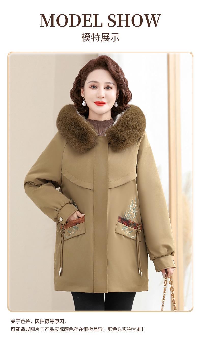 Abrigo grueso con forro polar para madres de mediana edad y mayores, nuevo abrigo de algodón para mujer para invierno, ropa de temperamento con cuello de lana bordado