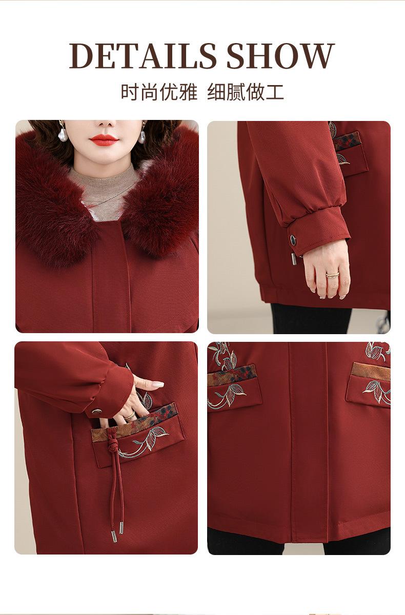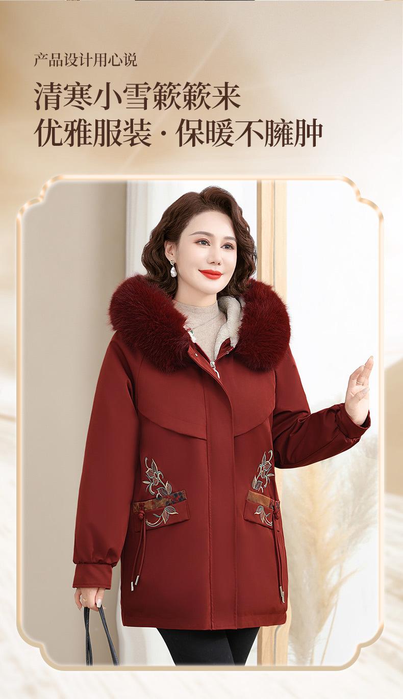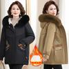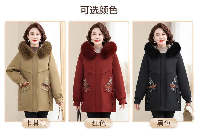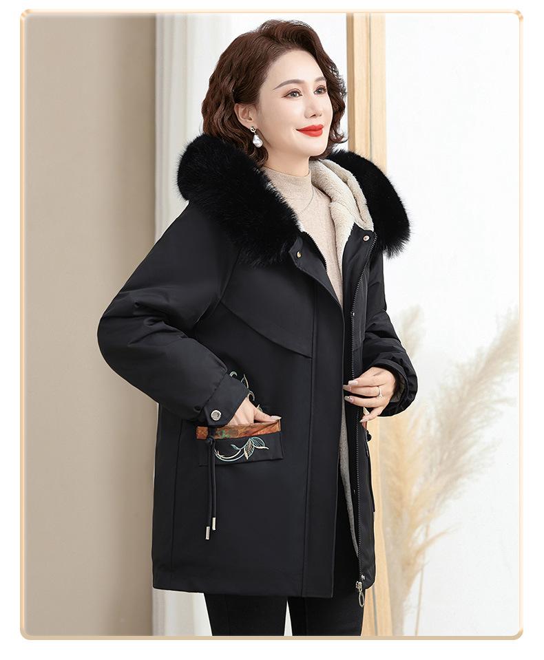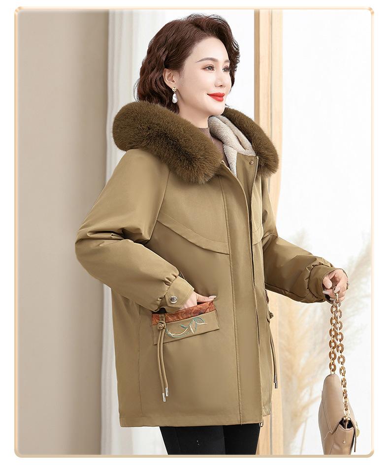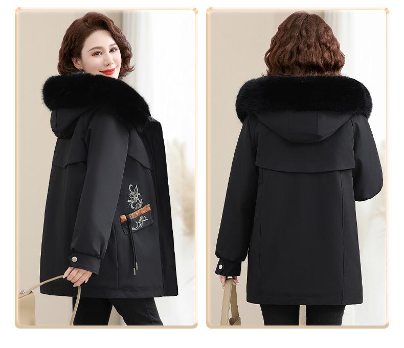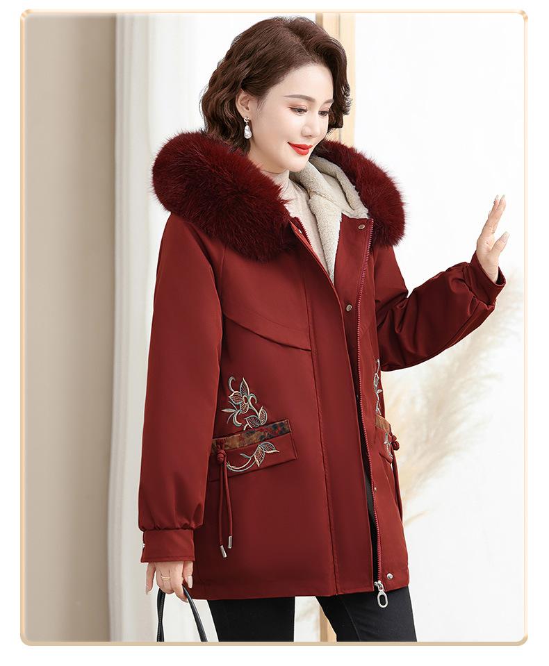 Abrigo grueso con forro polar para madres de mediana edad y mayores, nuevo abrigo de algodón para mujer para invierno, ropa de temperamento con cuello de lana bordado