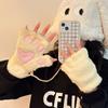 Guantes de invierno con medio dedo para estudiantes, de felpa gruesa, cálidos, resistentes al viento y al frío, cómodos y agradables para la piel, bonitos para escribir en pantallas táctiles.