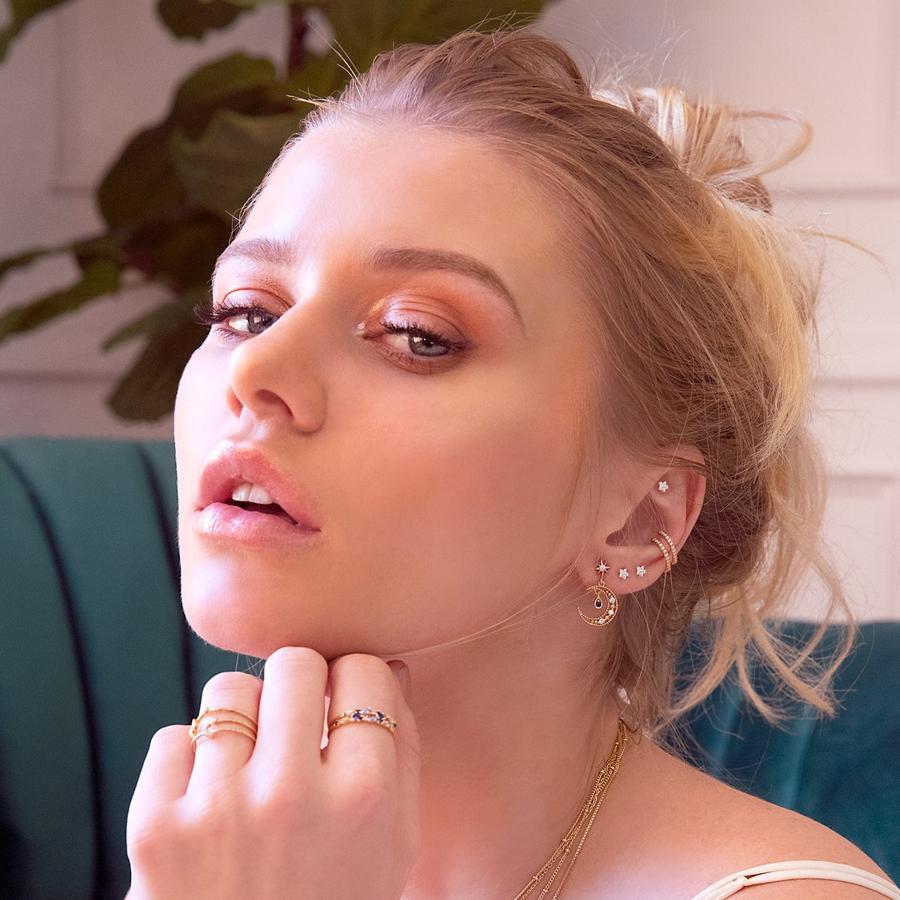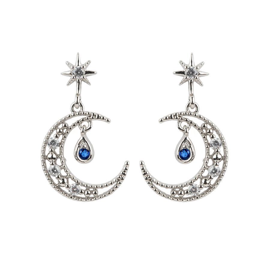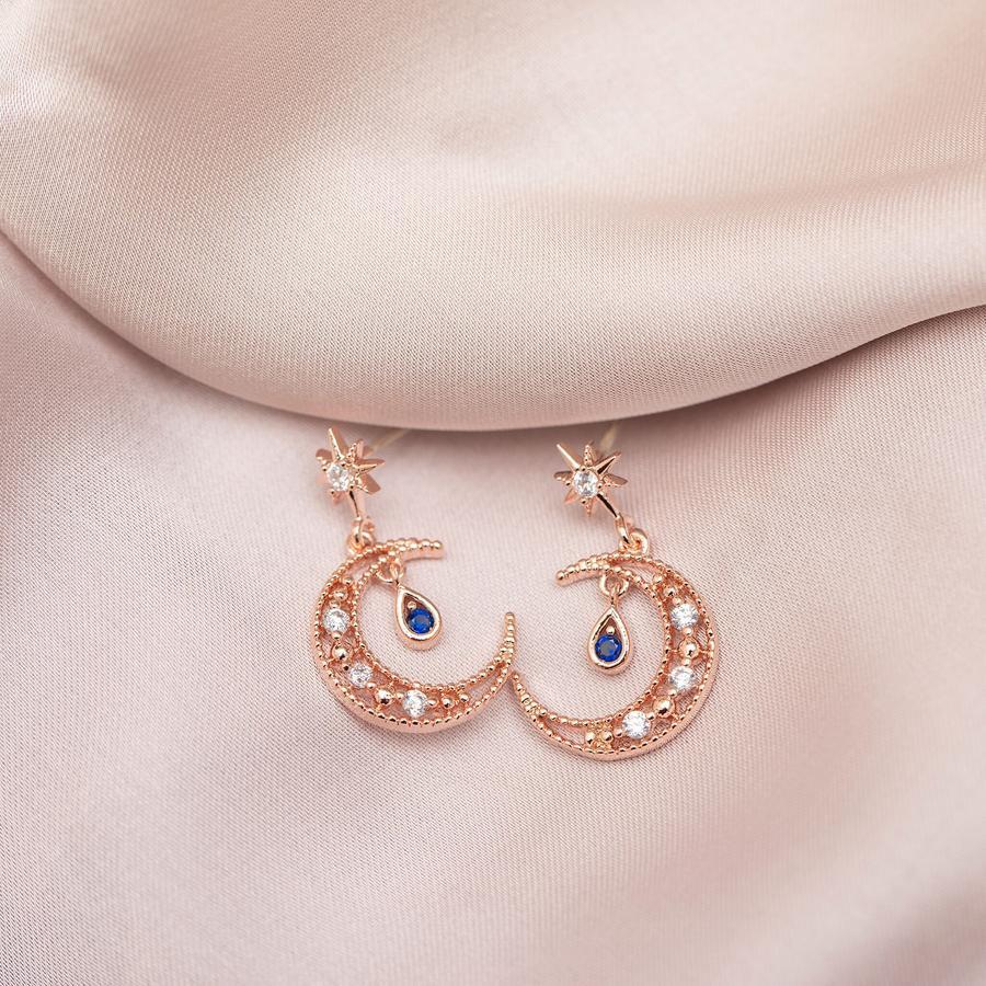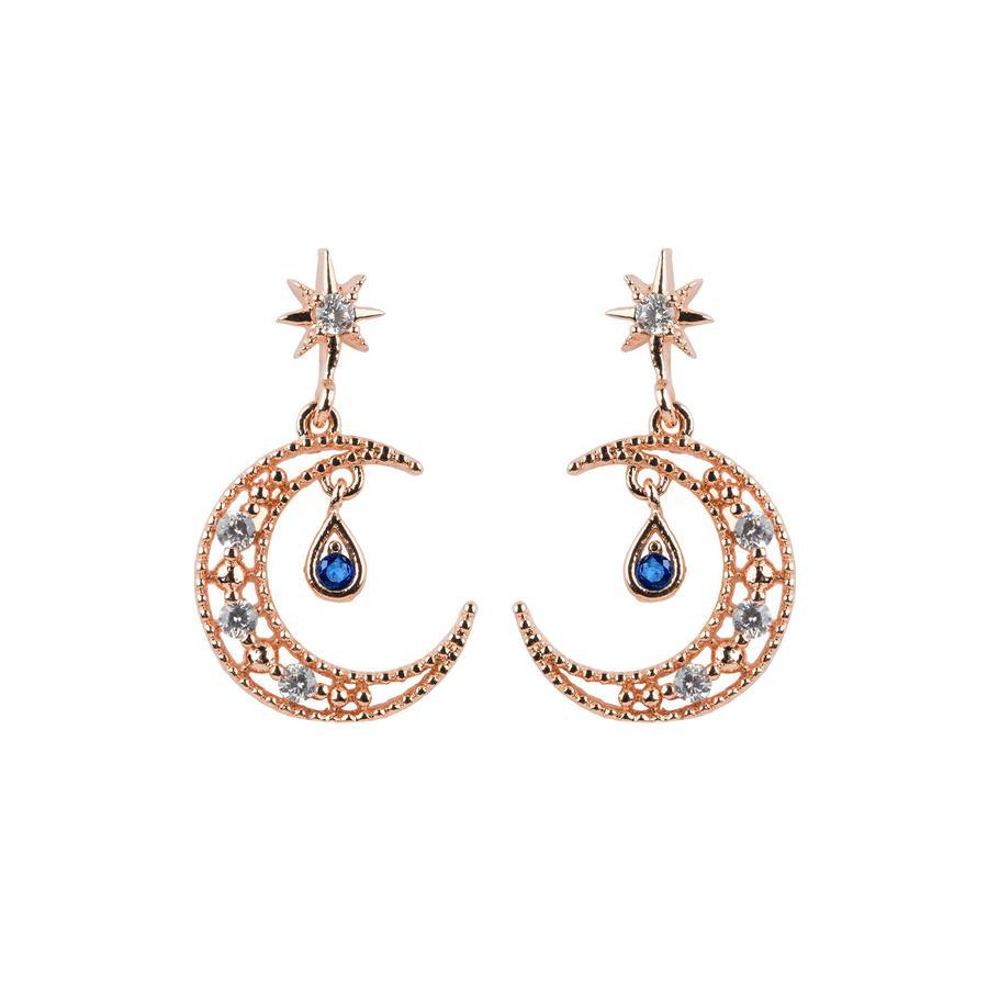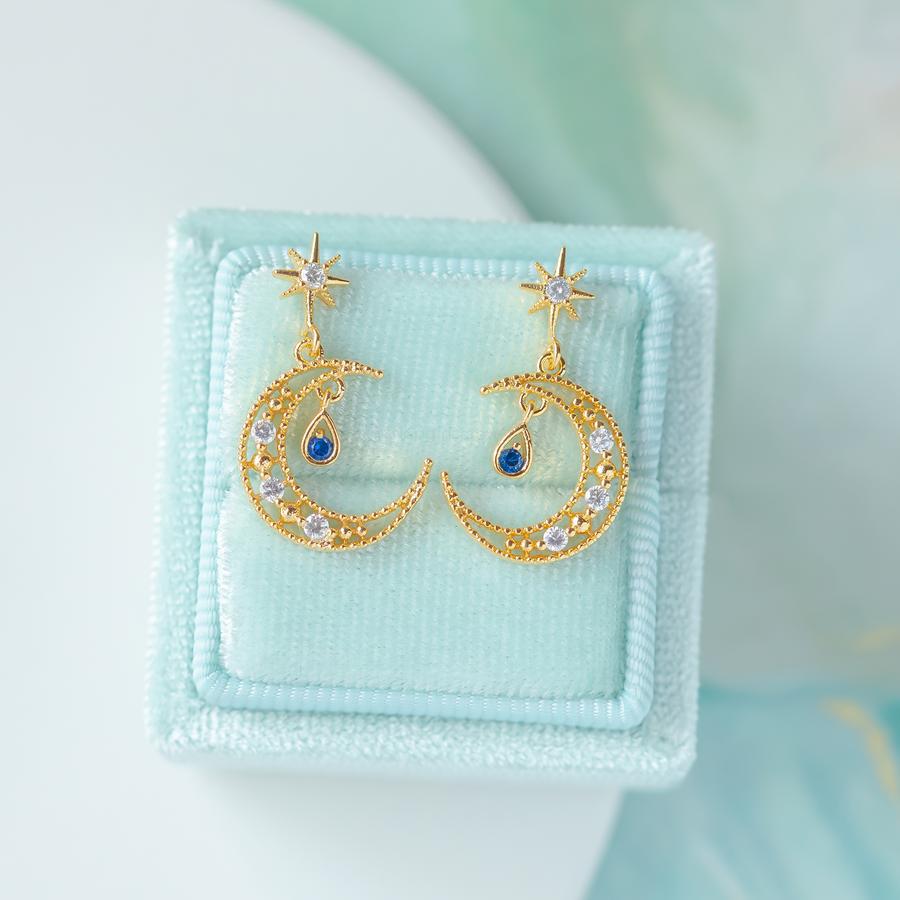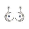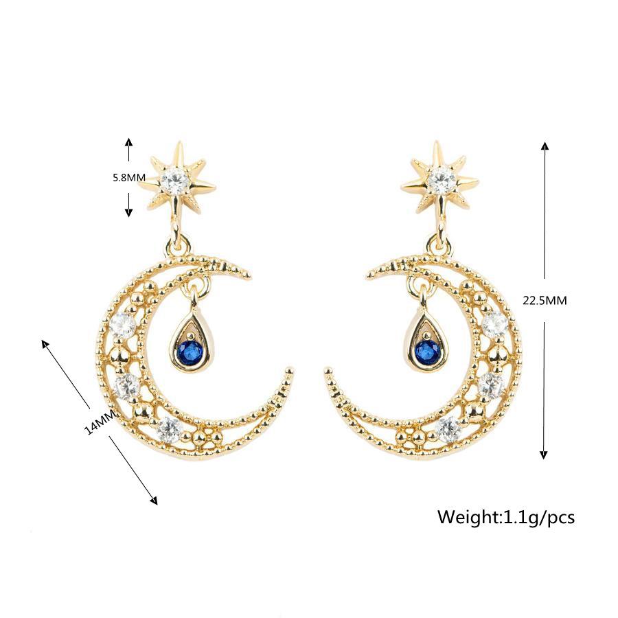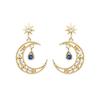 Pendientes de luna y estrella de otoño nuevos, chapados en cobre, oro auténtico, zafiro, joyería transfronteriza INS Wind para mujer, venta al por mayor
