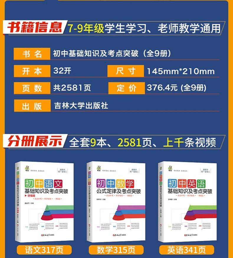 Junior Middle School Chinese Basic Knowledge and Test Breakthrough, Junior high school mathematics formula law...