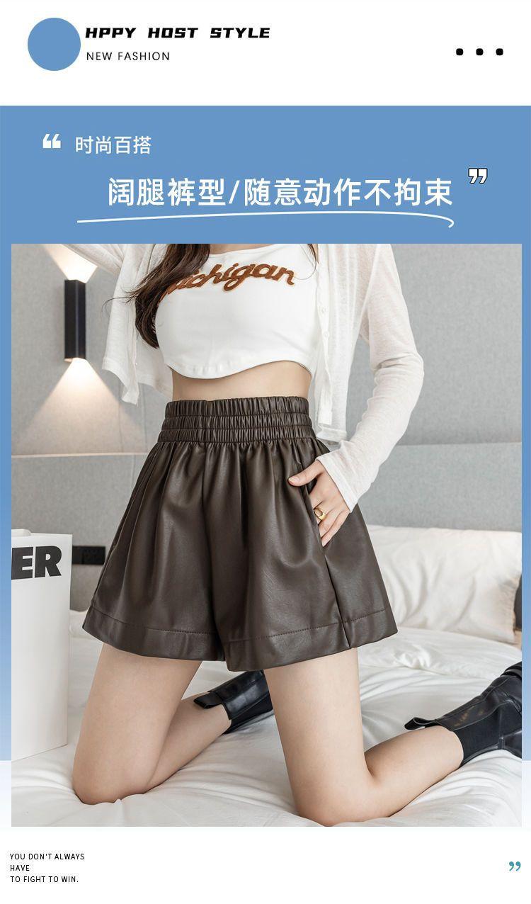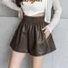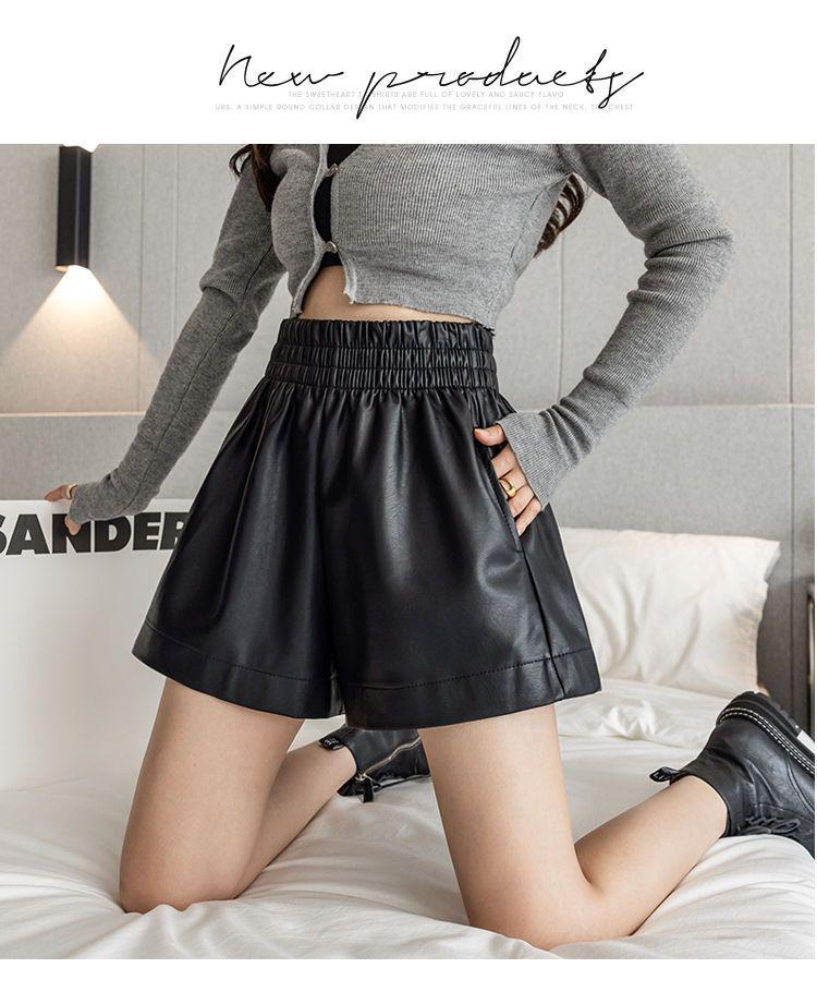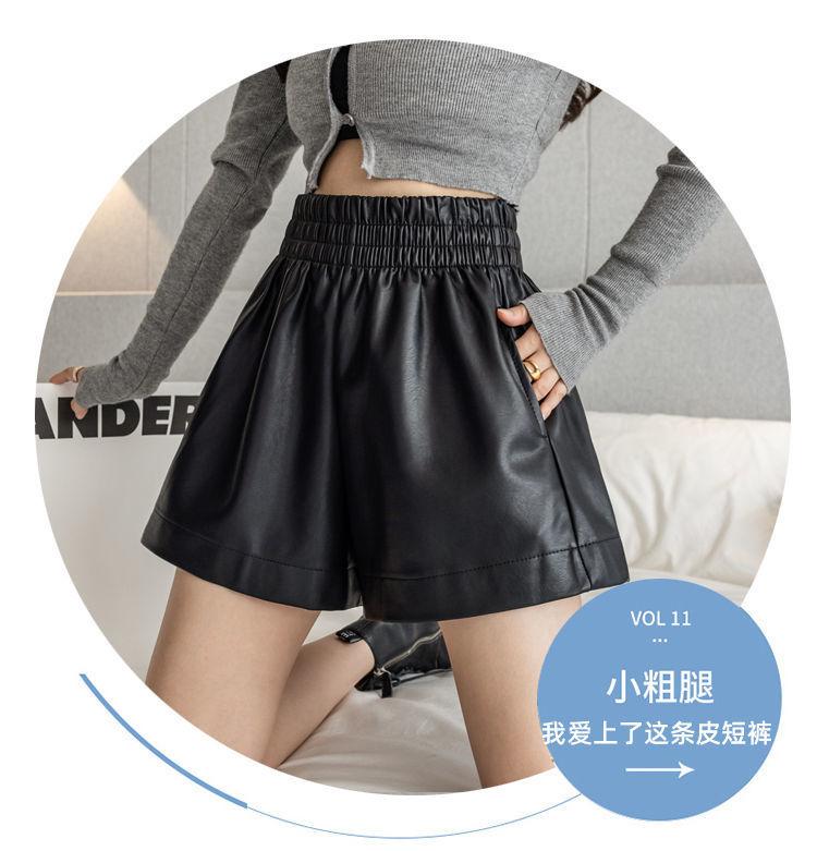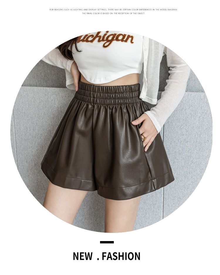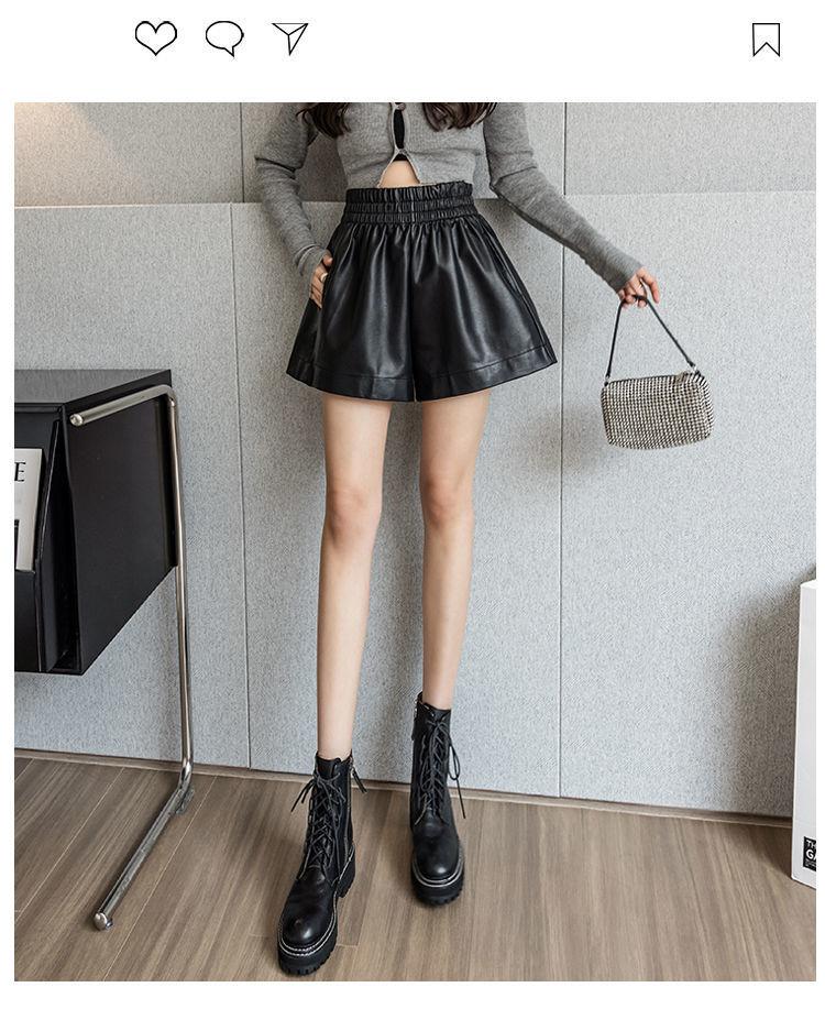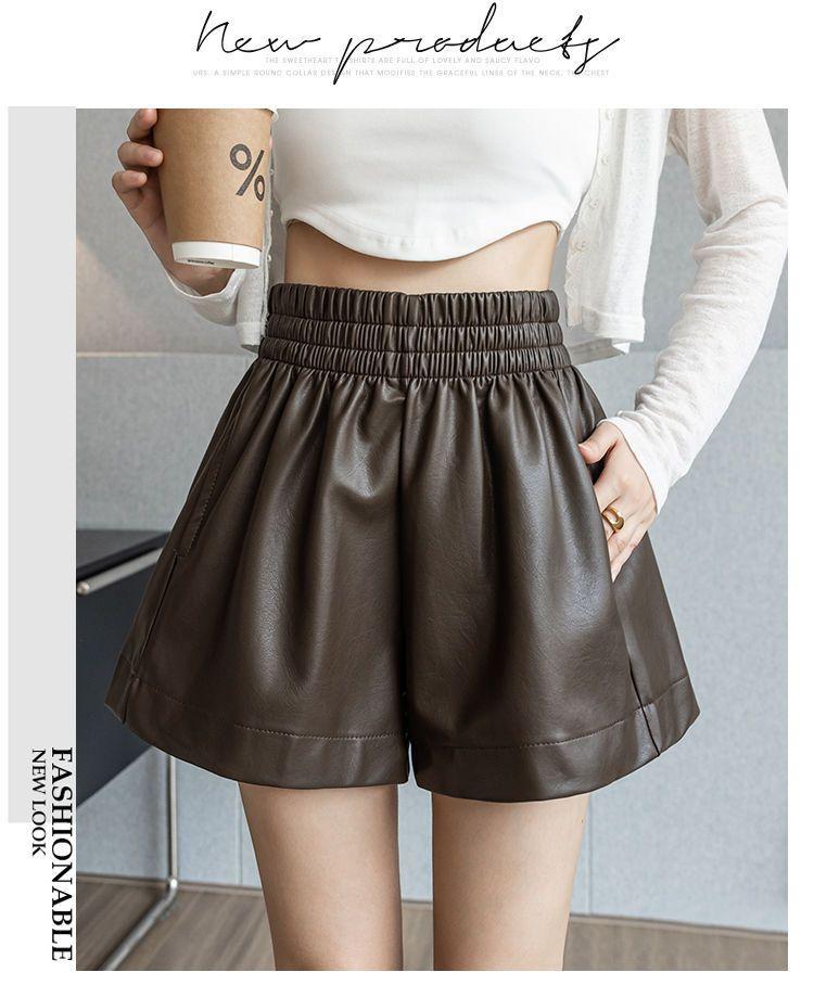 Pantalones cortos de cuero PU para mujer, ropa de exterior de primavera y otoño 2023, nuevos pantalones holgados de pierna ancha, pantalones casuales adelgazantes de cintura alta versátiles de corte A