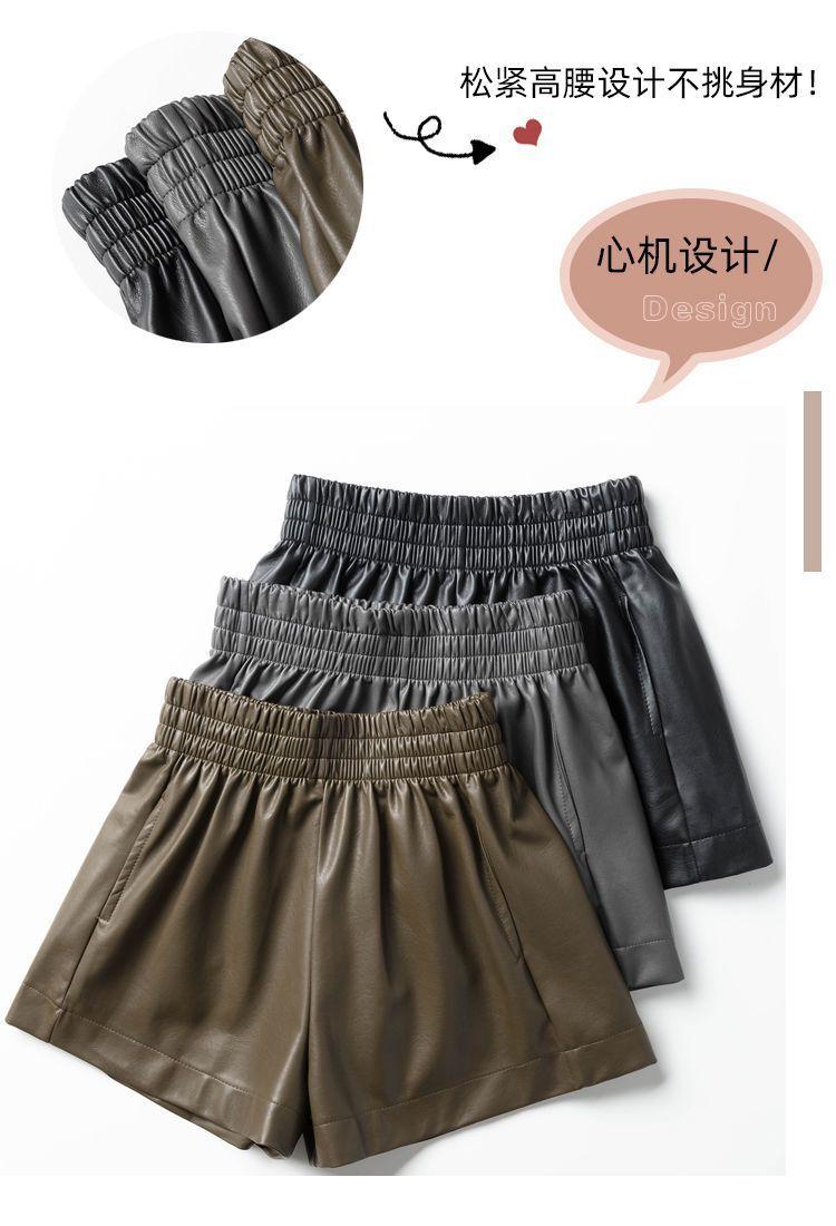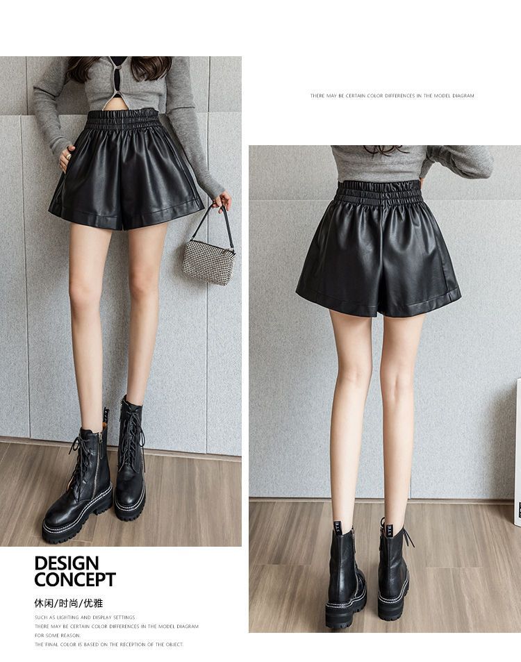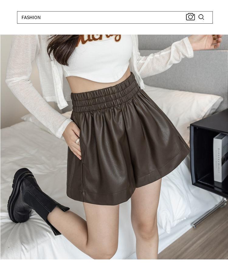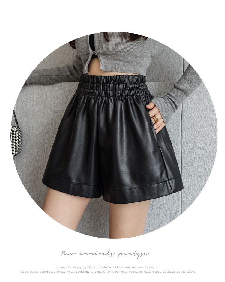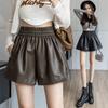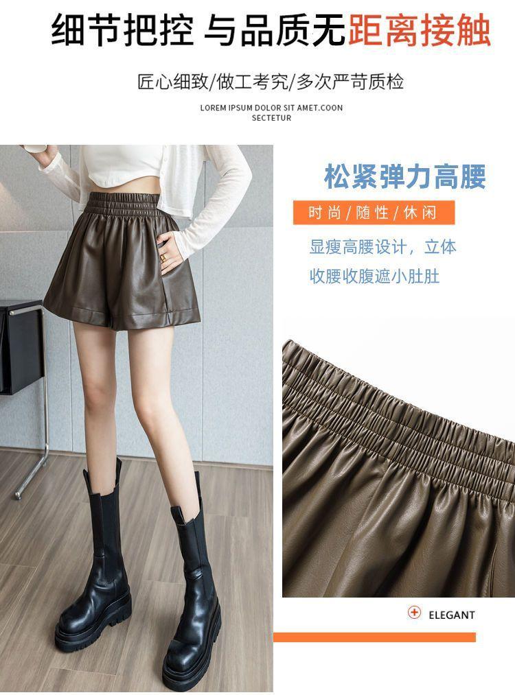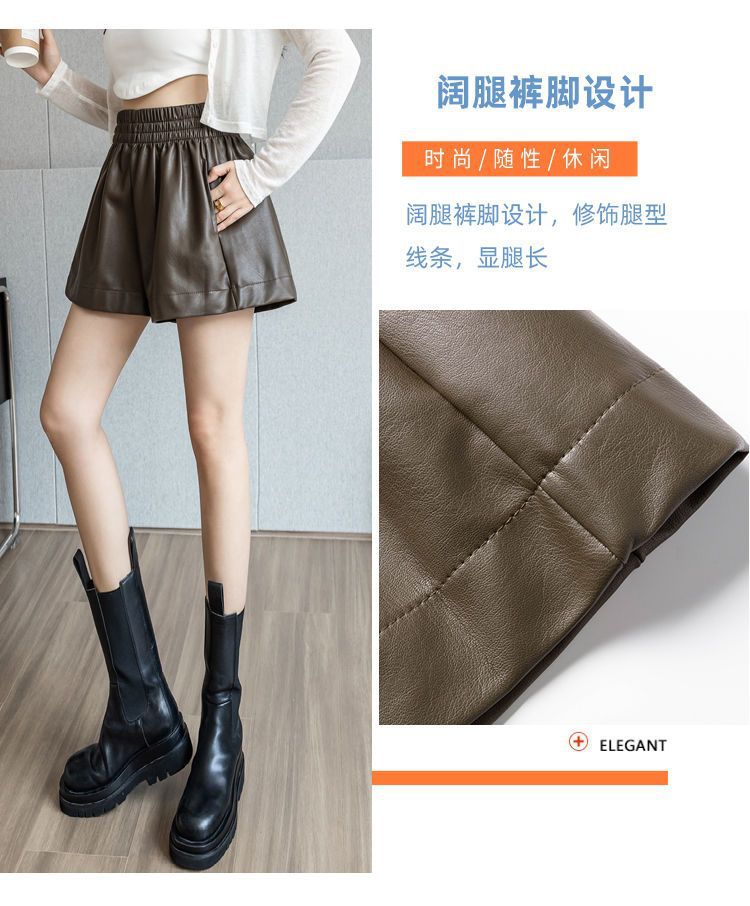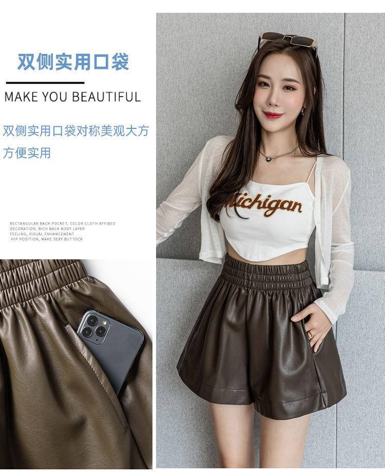 Pantalones cortos de cuero PU para mujer, ropa de exterior de primavera y otoño 2023, nuevos pantalones holgados de pierna ancha, pantalones casuales adelgazantes de cintura alta versátiles de corte A