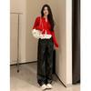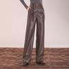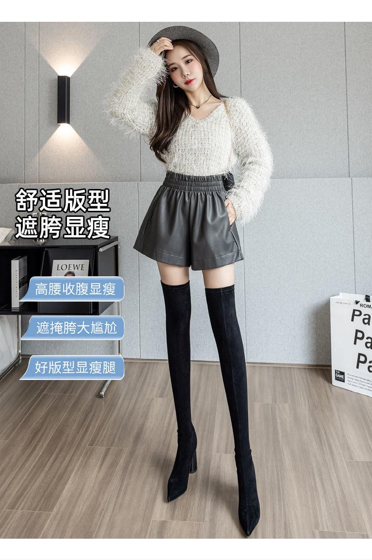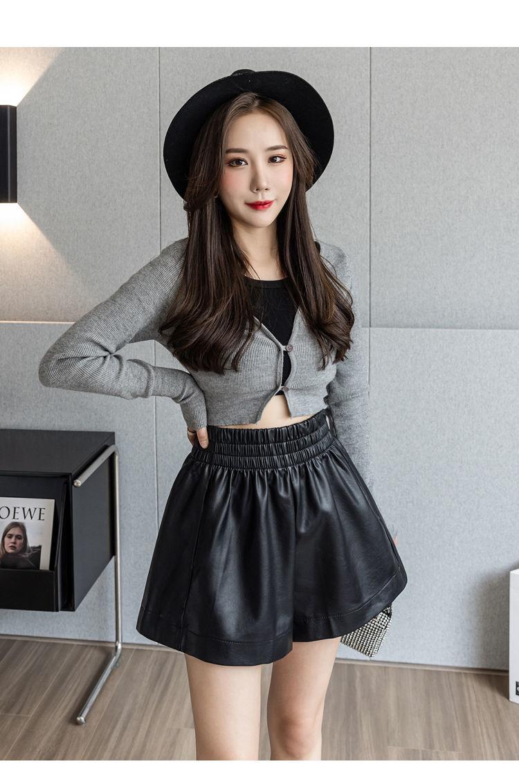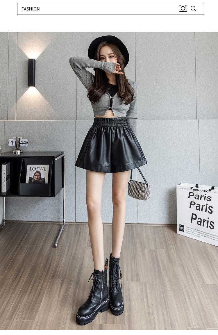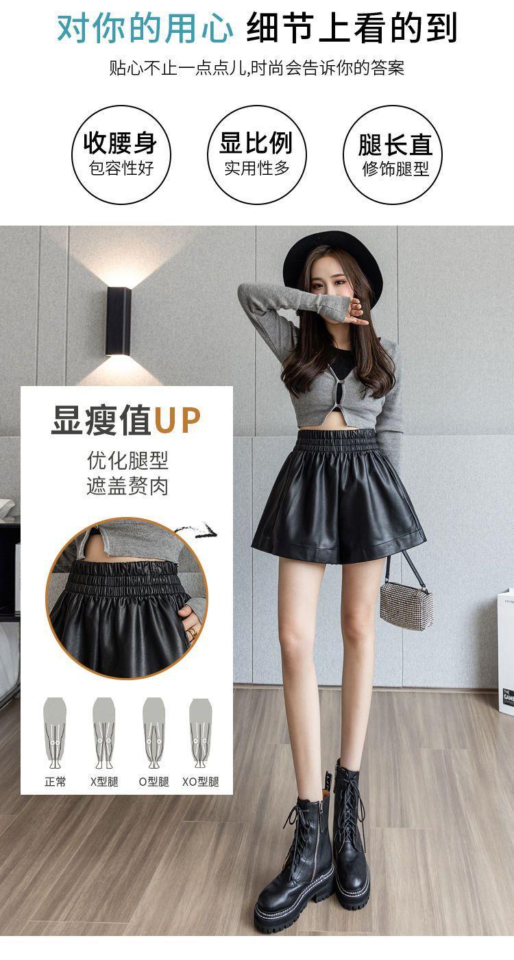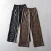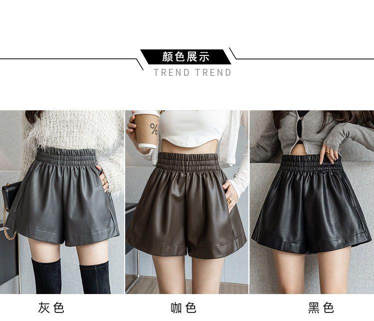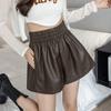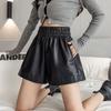 Pantalones cortos de cuero PU para mujer, ropa de exterior de primavera y otoño 2023, nuevos pantalones holgados de pierna ancha, pantalones casuales adelgazantes de cintura alta versátiles de corte A