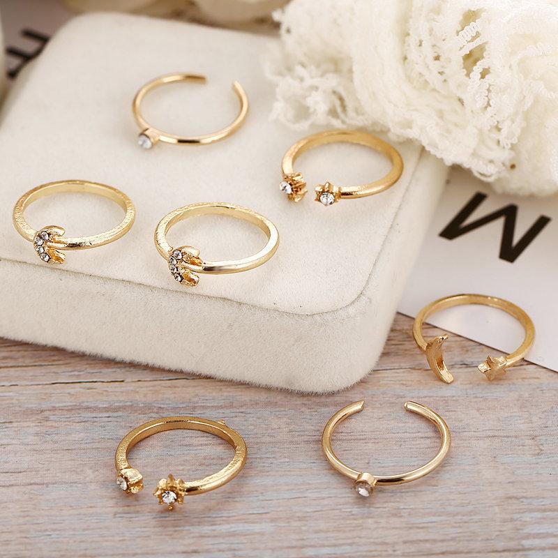 AliExpress Anillo de Combinación para Mujer Creativo Simple Temperamento Más Vendido Estrella y Luna Mariposa Geométrico Anillo de Amor 22 traje