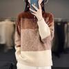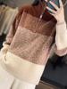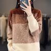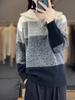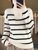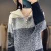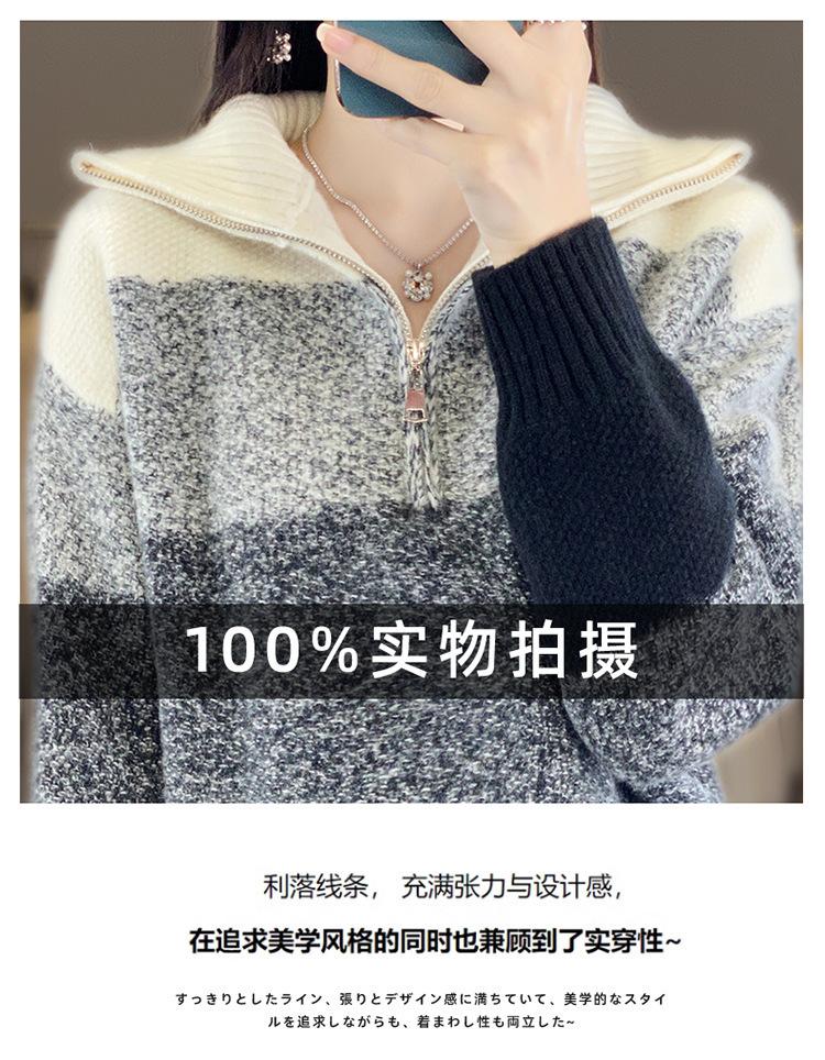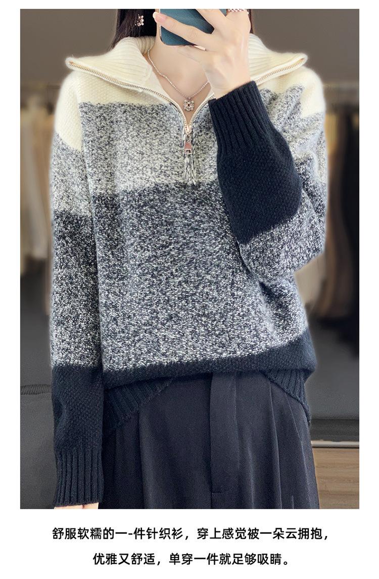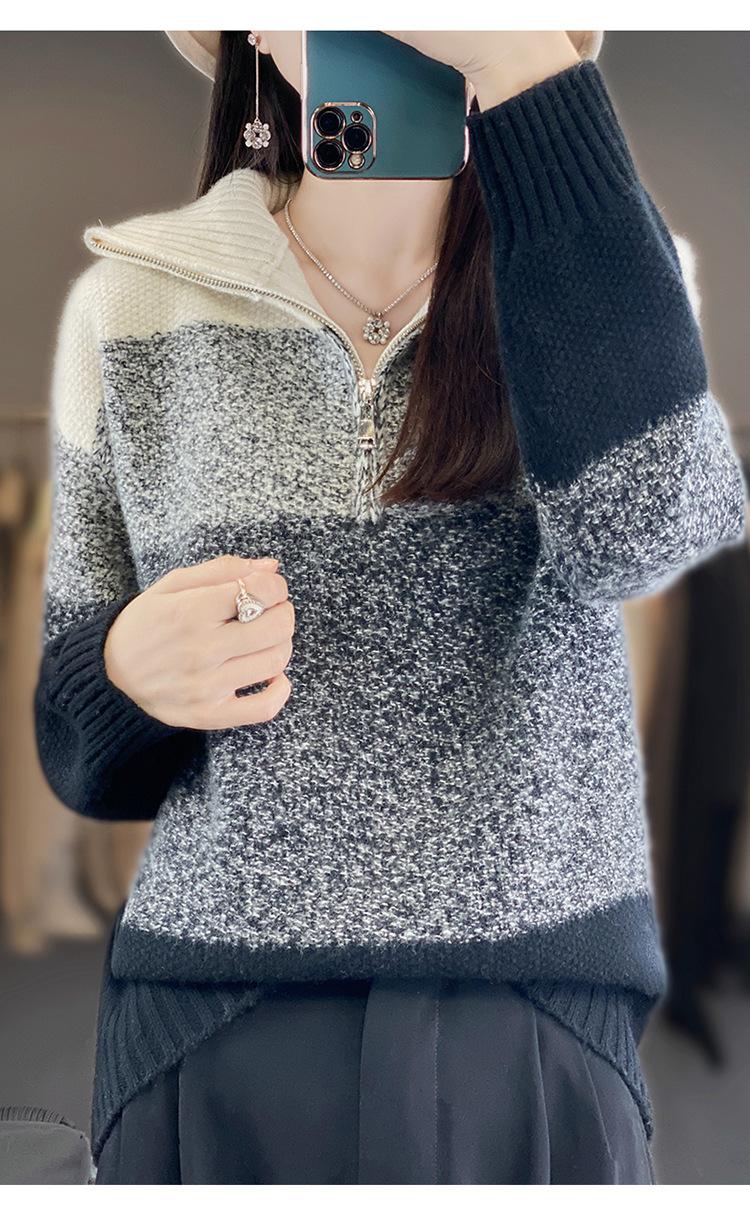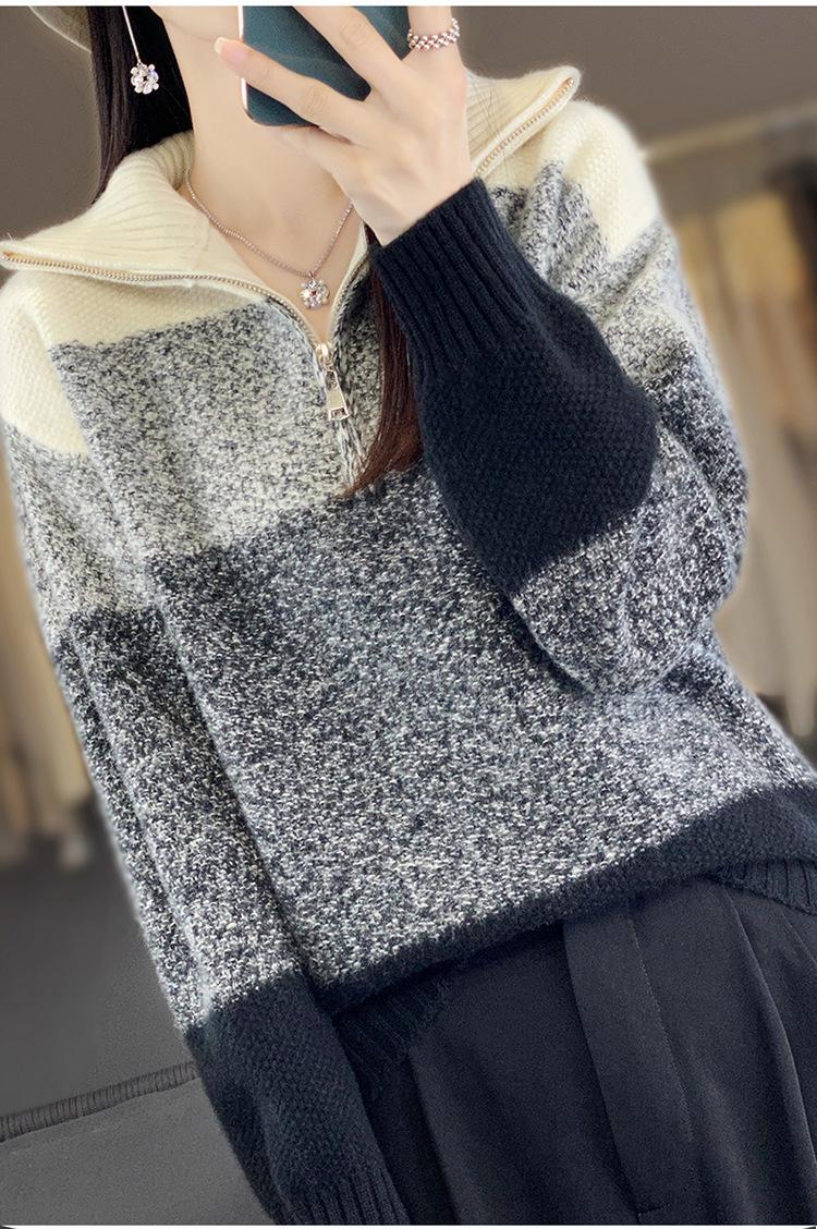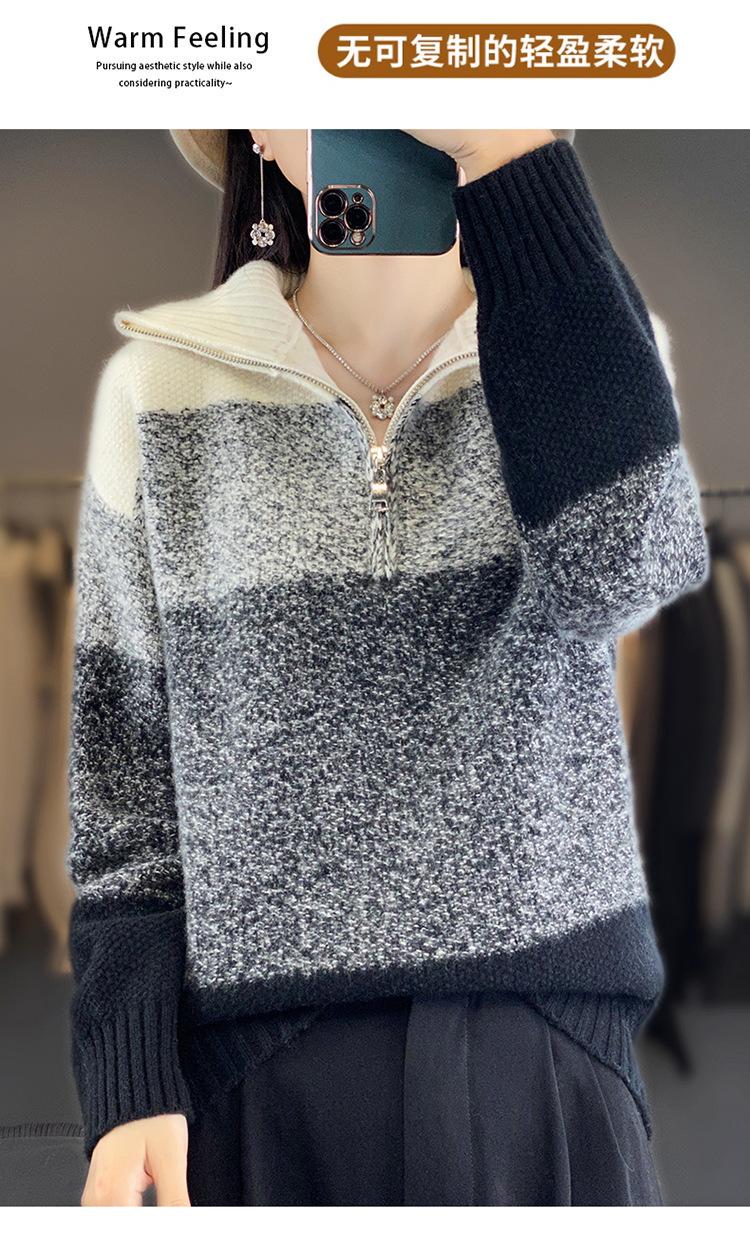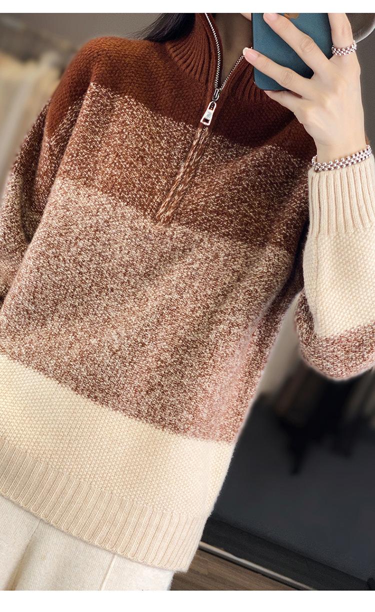 Suéter de Cuello Alto con Cremallera de Otoño e Invierno para Mujer, de Manga Larga, Color en Contraste, Suéter Retro Holgado a Rayas con Degradado, Suéter Pulóver