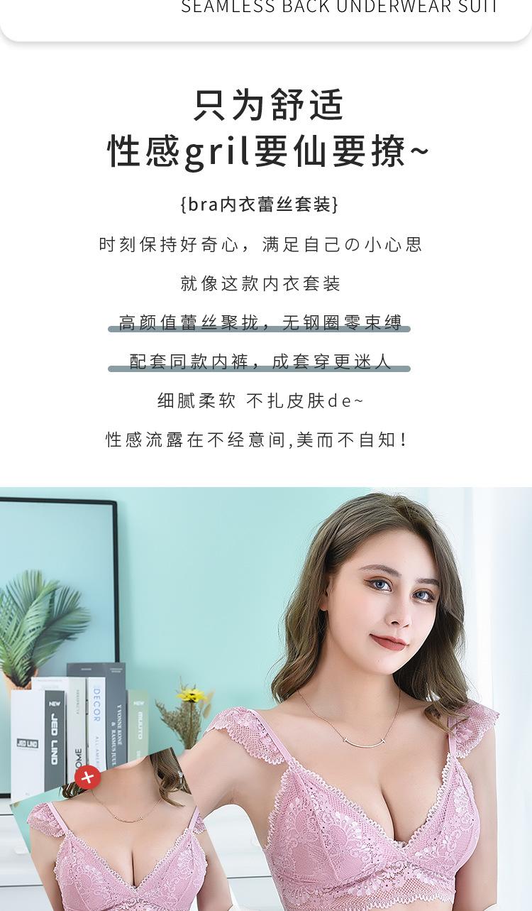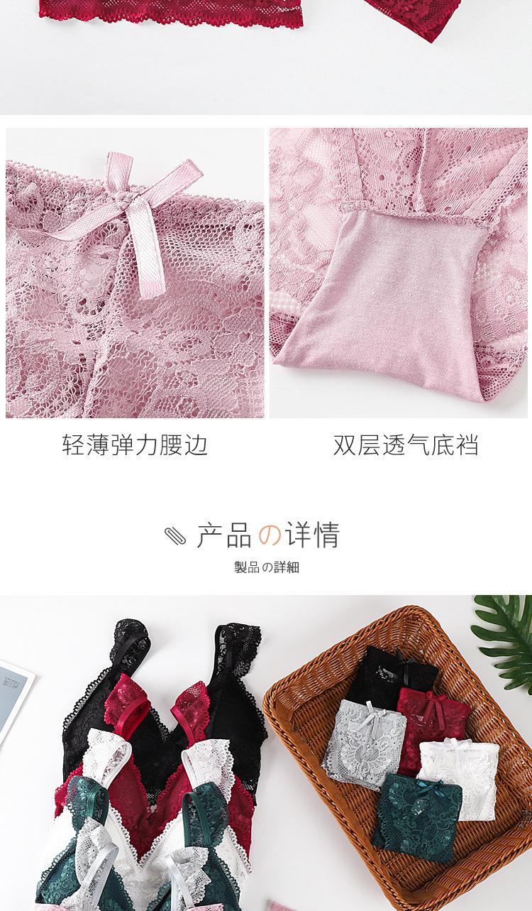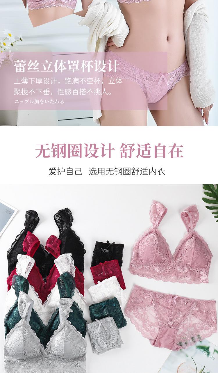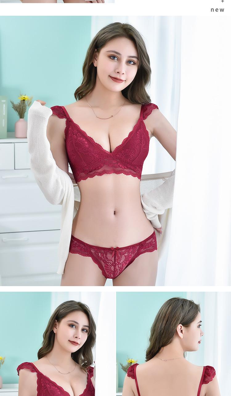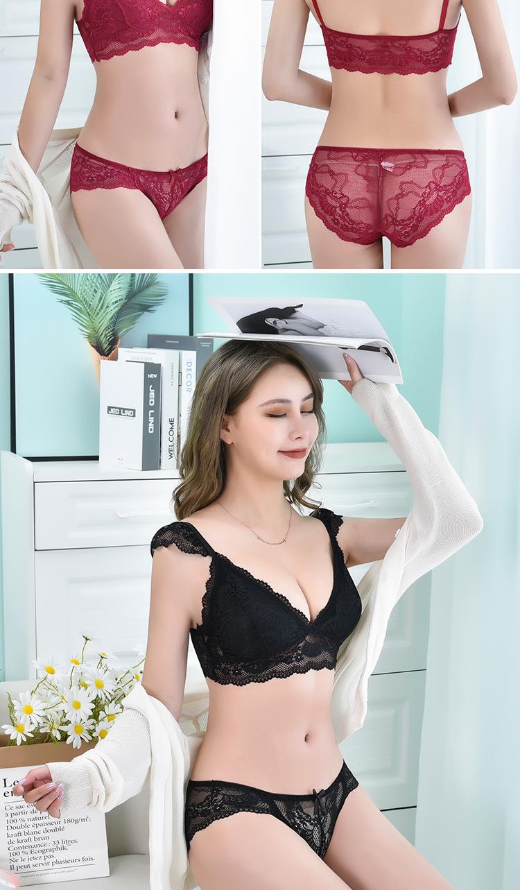 Sujetador de encaje sexy transfronterizo, sujetador transpirable agradable para la piel francés sin aros de acero, bragas de encaje para mujer, piel