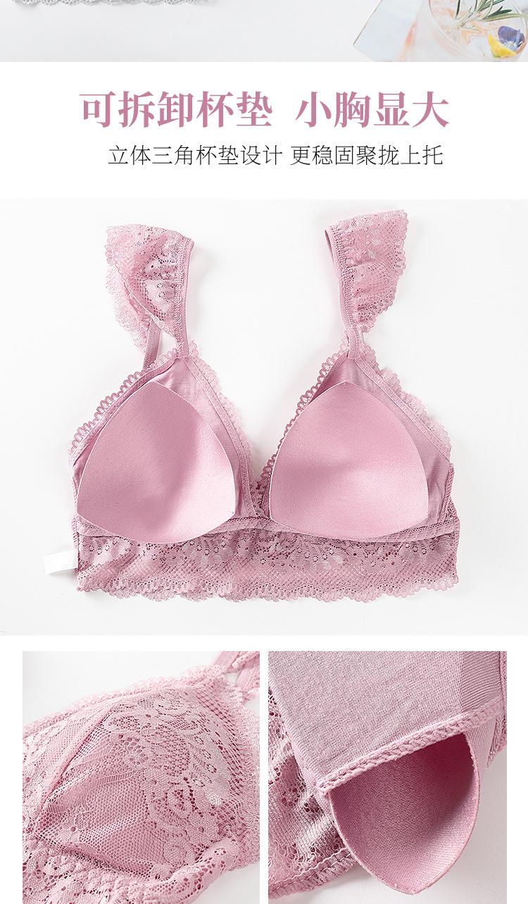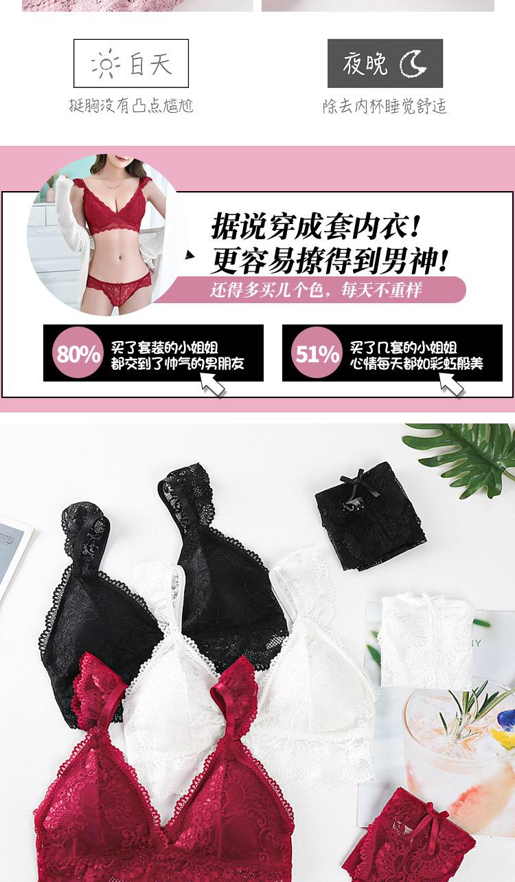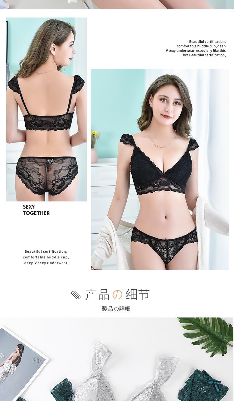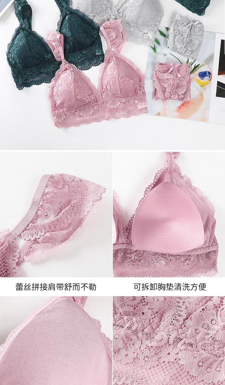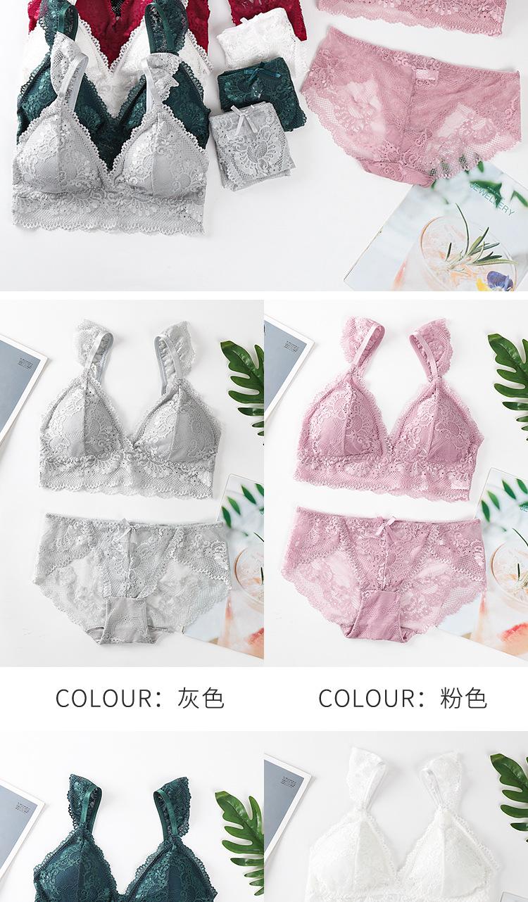 Sujetador de encaje sexy transfronterizo, sujetador transpirable agradable para la piel francés sin aros de acero, bragas de encaje para mujer, piel