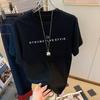 Camiseta de manga corta de algodón con letras para mujer, primavera y verano 2023, holgada, sencilla, informal, a la moda, combina con todo, blanca