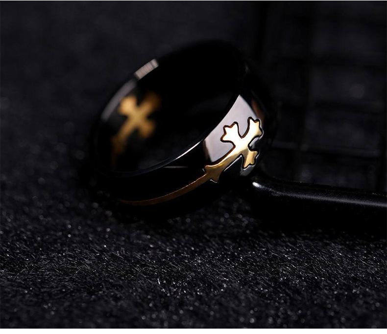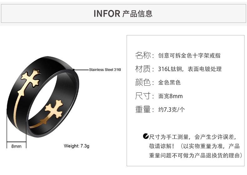 Anillo de acero de titanio con cruz de oro extraíble creativo para hombre, joyería de moda para hombre, fuente de eBay transfronteriza, muy vendido