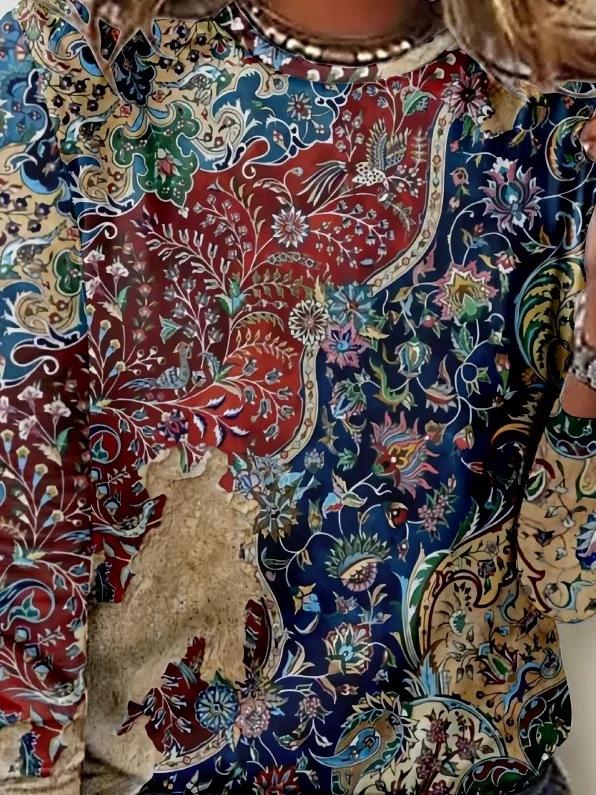Amazon Ebay Estación Independiente 2024 Otoño e Invierno Transfronterizo para Mujer Nuevo Top Camiseta de Manga Larga con Cuello Redondo Estampado