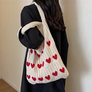 Bolso de punto cruzado para mujer, nuevo bolso de verano 2023, hecho a mano, de lana, tejido bajo las axilas, bolso de hombro con amor |