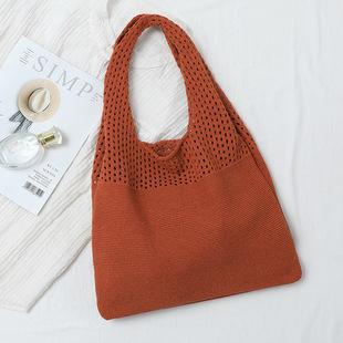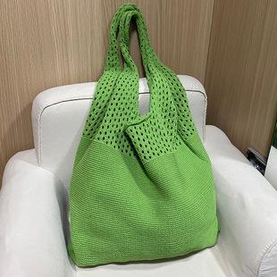 Bolso de mano de punto hueco retro, estilo chic, sencillo y elegante, tipo chaleco para mujer, de lana, combina con todo, grande, para un sitio web coreano. |