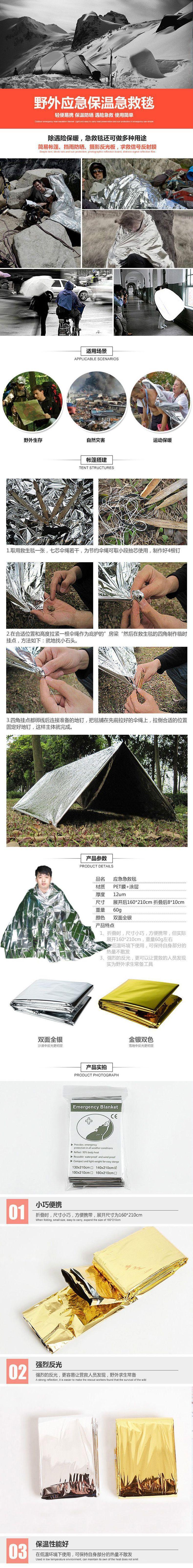 Manta portátil de primeros auxilios plateada 160 * 210PET manta térmica terremoto desechable a prueba de radiación manta de emergencia para la vida al por mayor