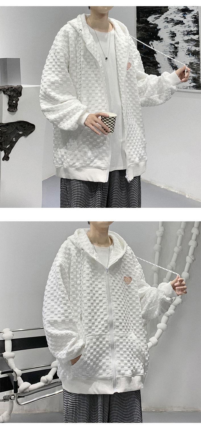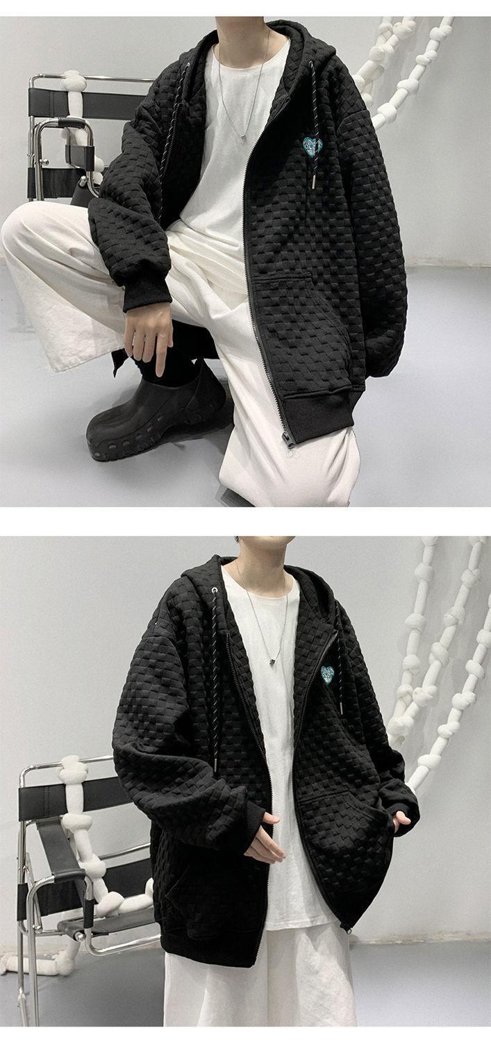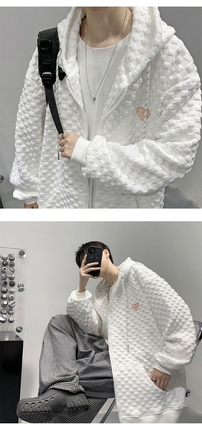 Suéter tipo cárdigan de gofre para mujer, primavera y otoño, nuevo, holgado, con capucha y cremallera, talla grande