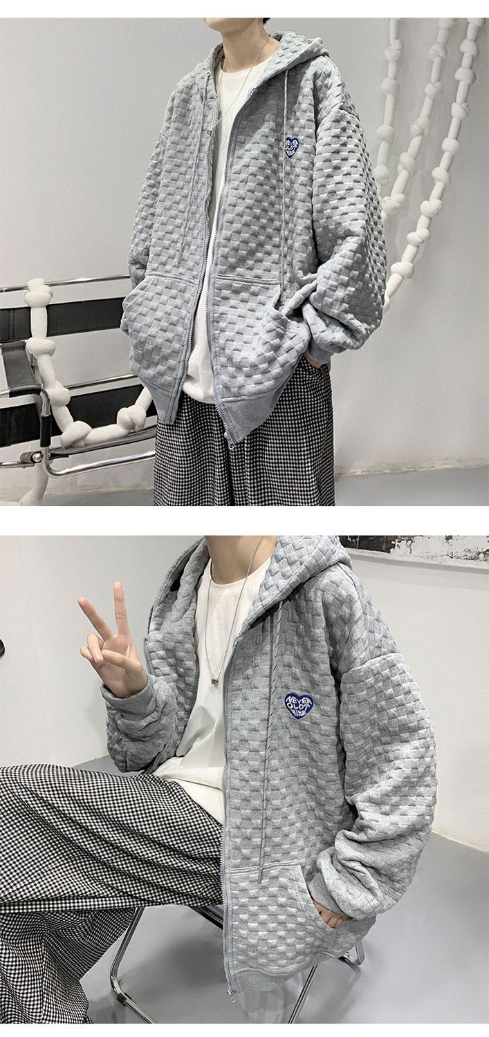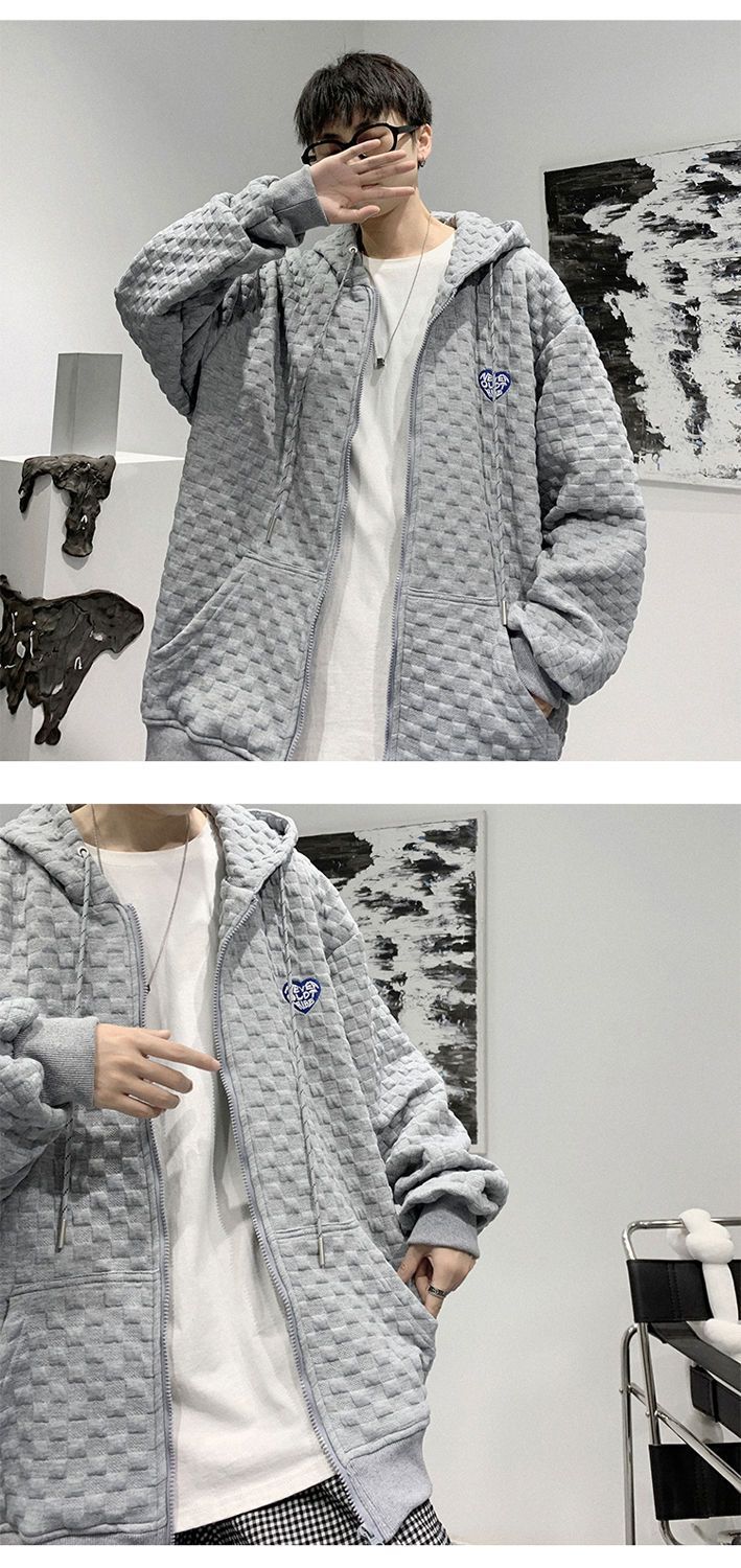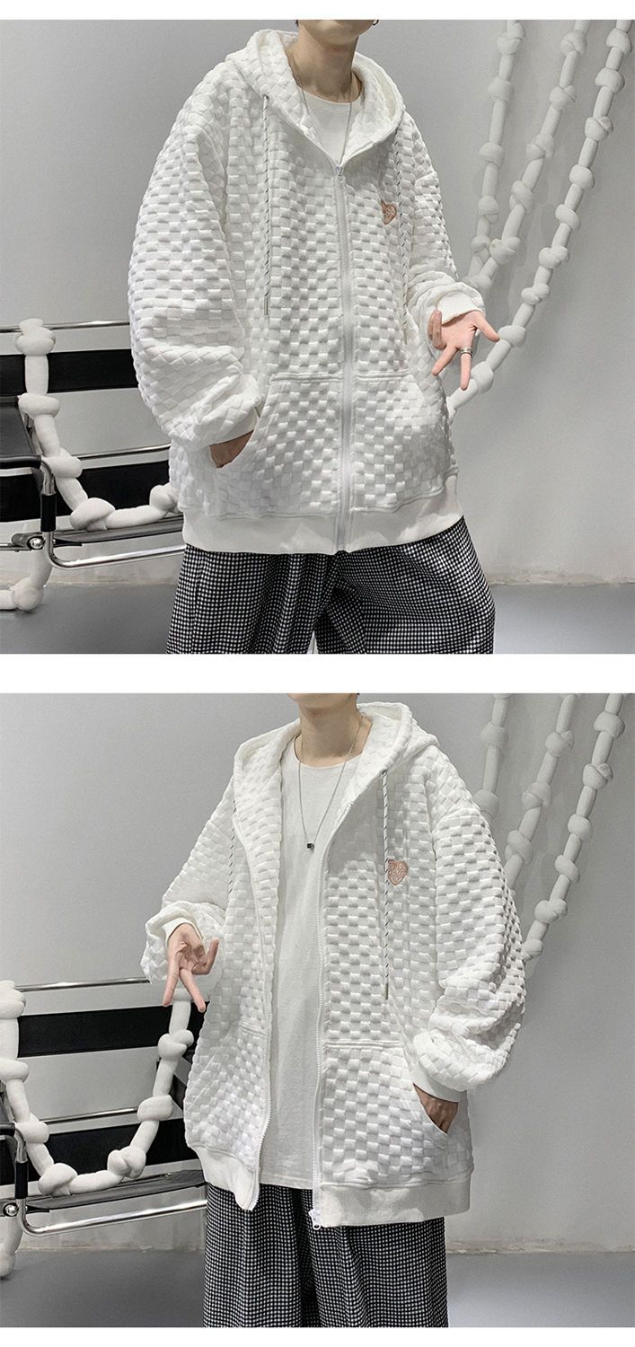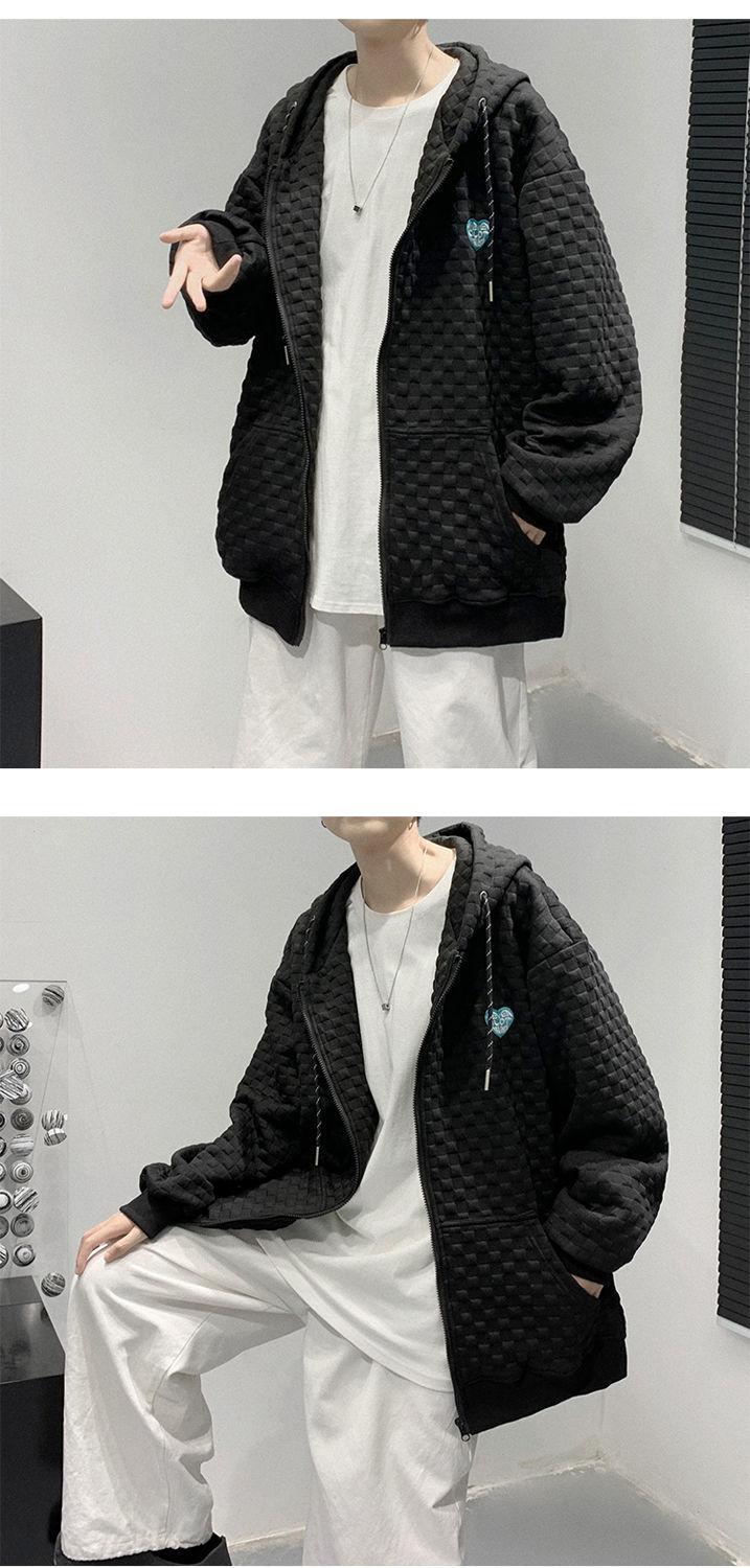 Suéter tipo cárdigan de gofre para mujer, primavera y otoño, nuevo, holgado, con capucha y cremallera, talla grande