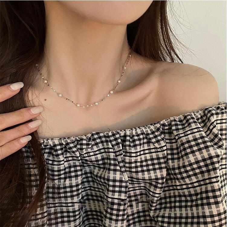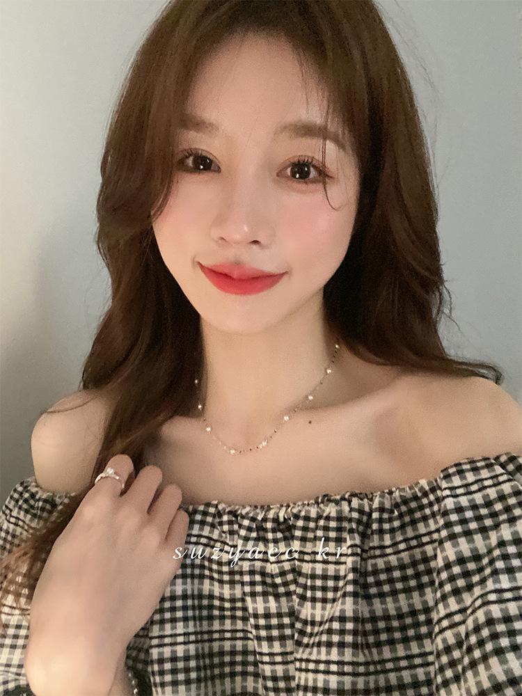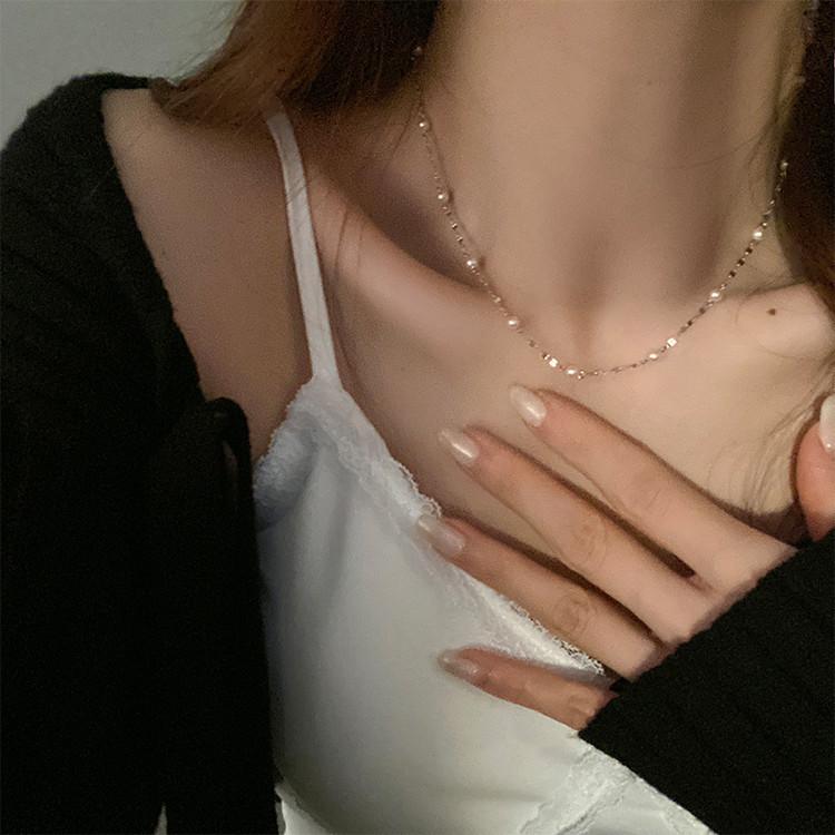 Collar de perlas estrellado femenino brillante nicho retro collar de lujo ligero cadena clavícula lujo ligero collar celebridad de internet