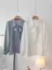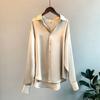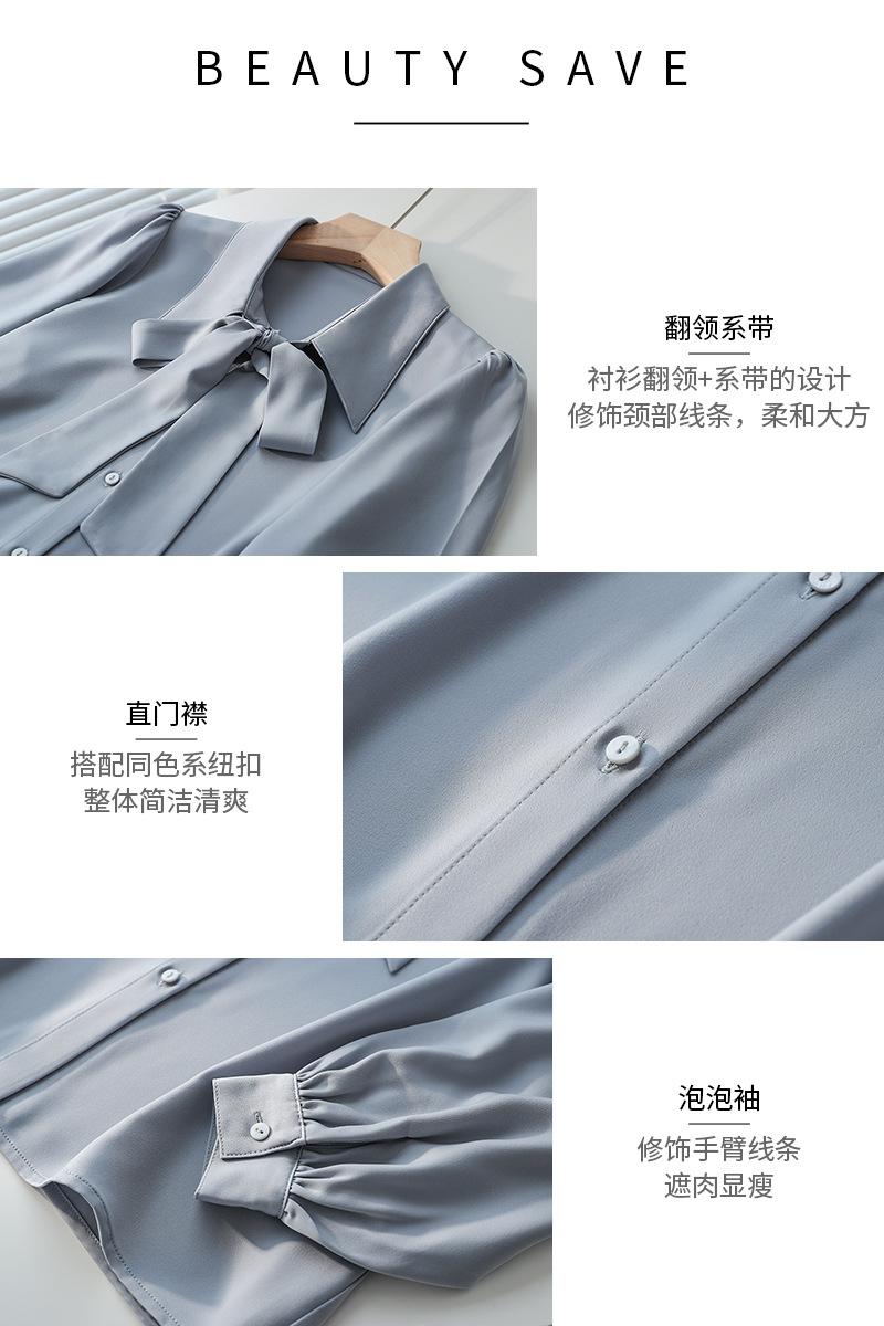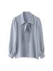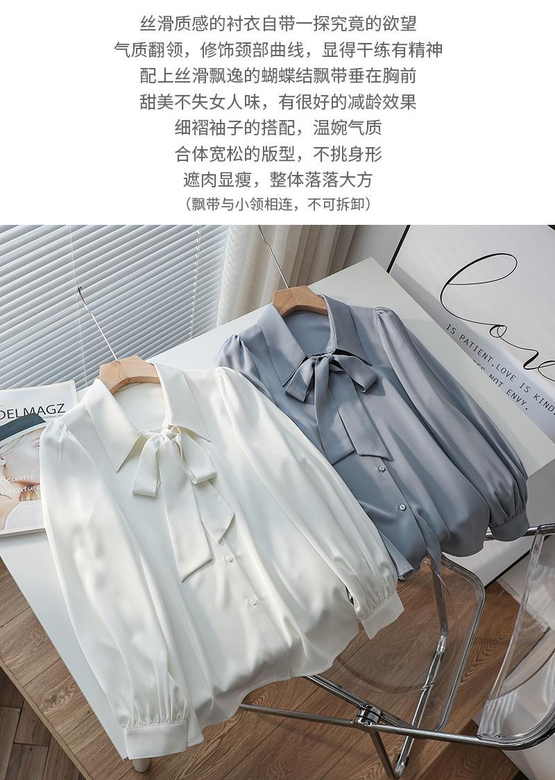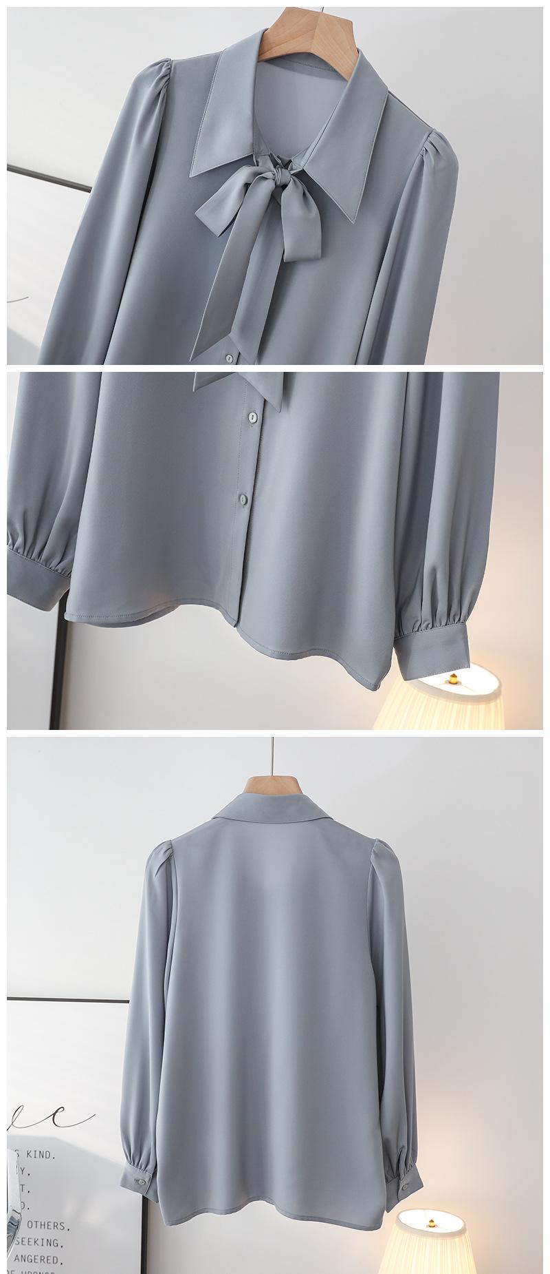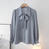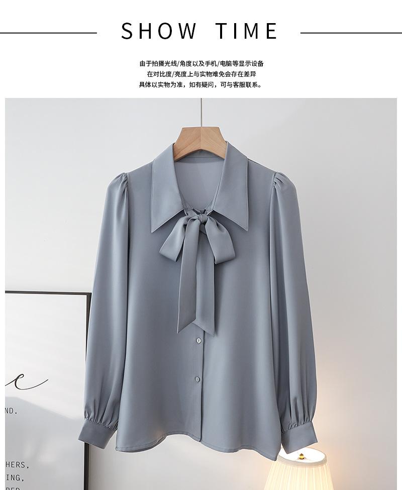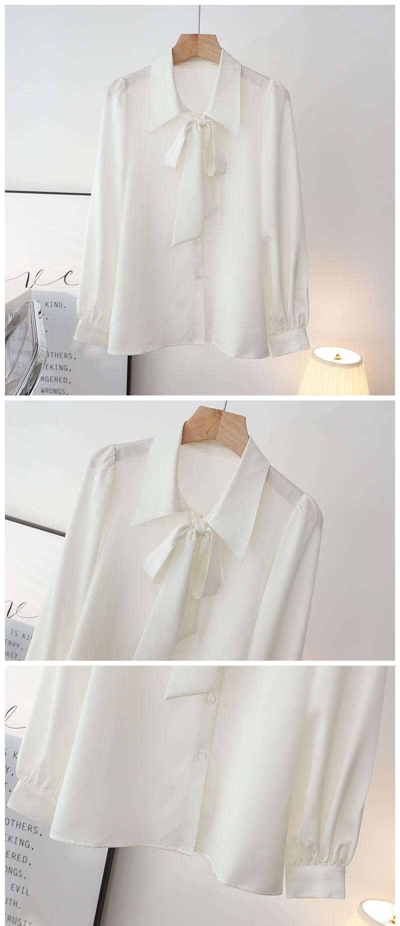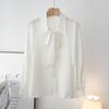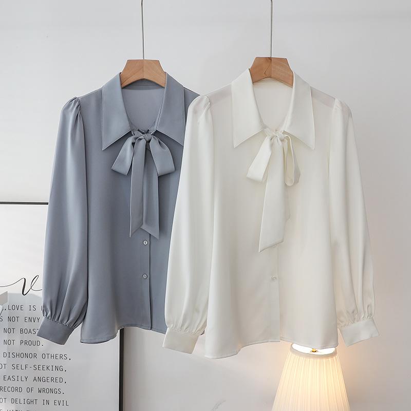 Primavera Nuevo Satén Lazo Camisa de Mujer Manga Larga Diseño Nicho Maduro Ligero Estilo Hong Kong Elegante Top OL