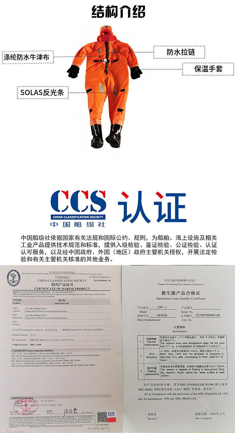 Suministro de fábrica Tipo I Tipo II Traje de inmersión salvavidas marino Aislamiento Ropa de trabajo cálida Traje de rescate certificado CCS