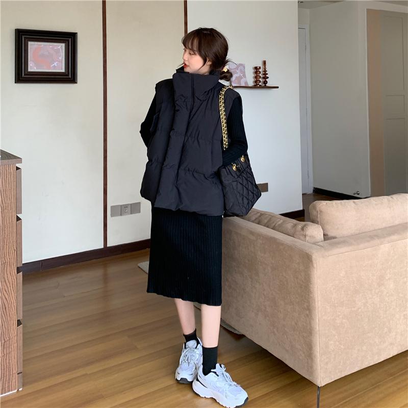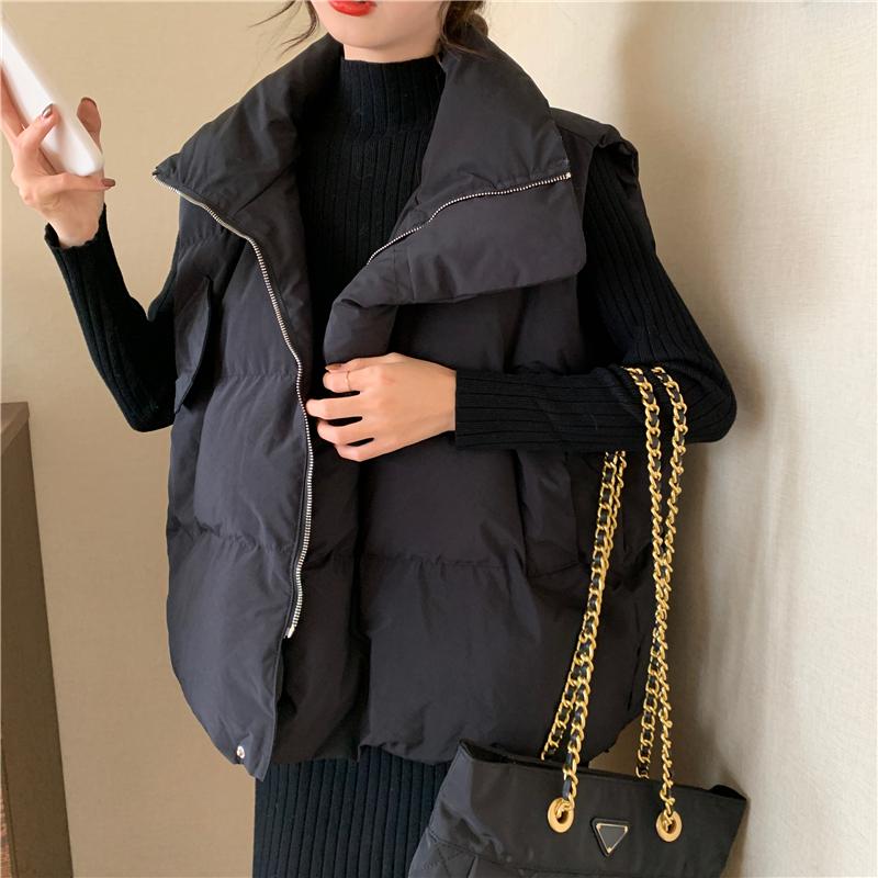 Chaleco de Algodón Plumón para Mujer 2025 Nuevo Ancho Estilo K Suelto Exterior Chaleco Pan Ropa Exterior Otoño e Invierno Cintura Chaqueta