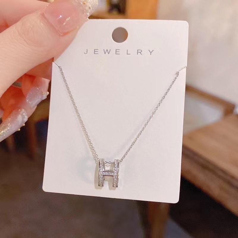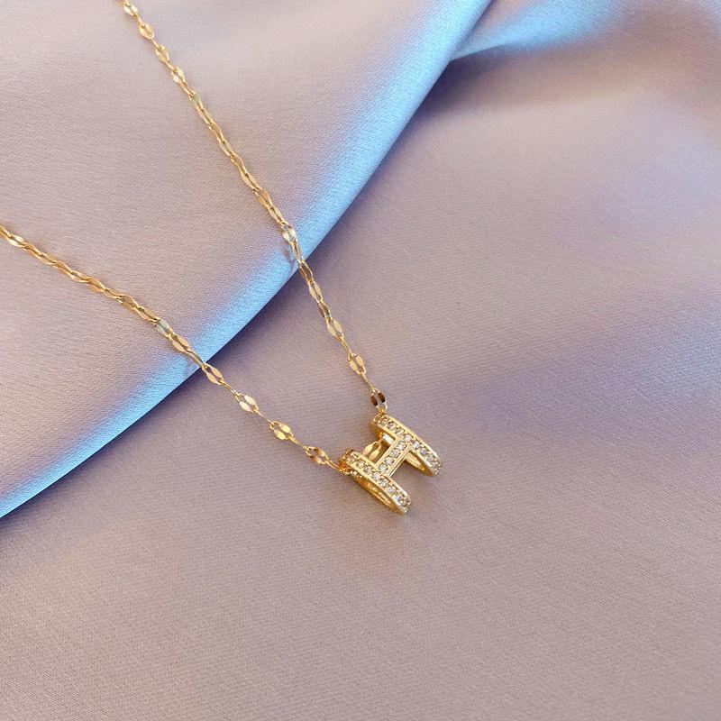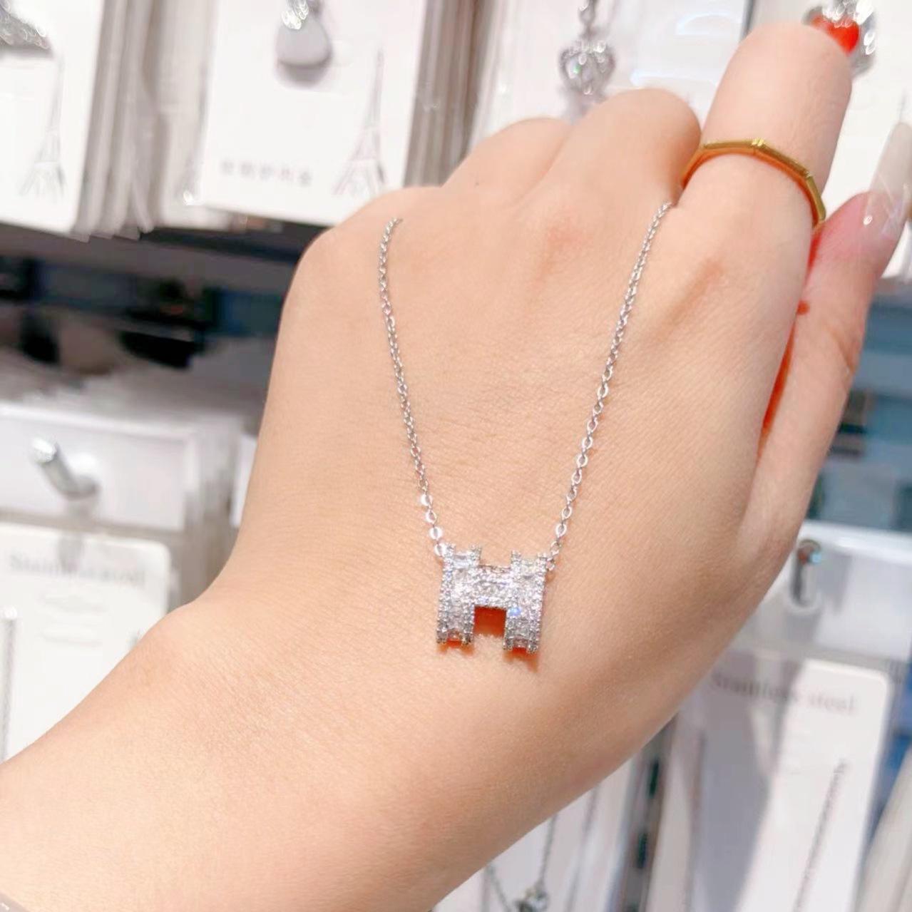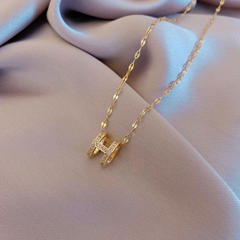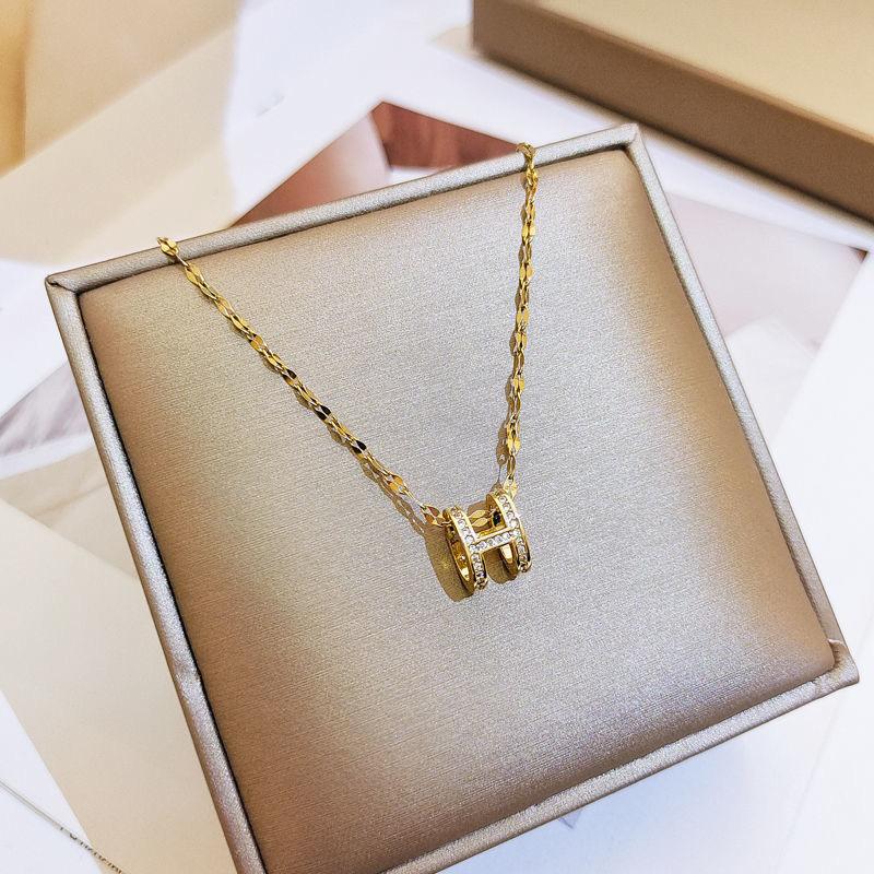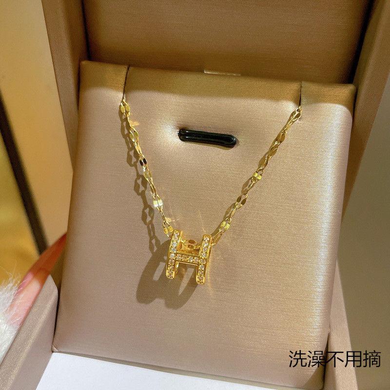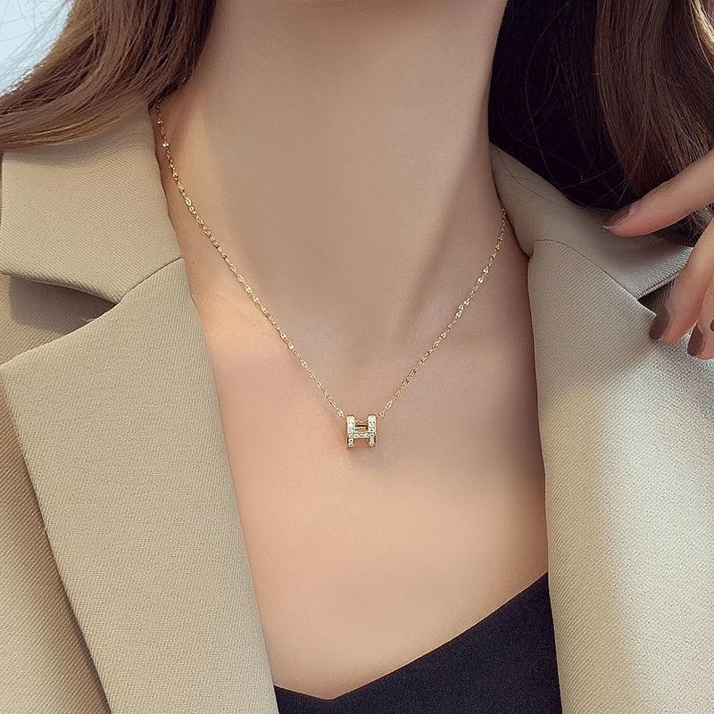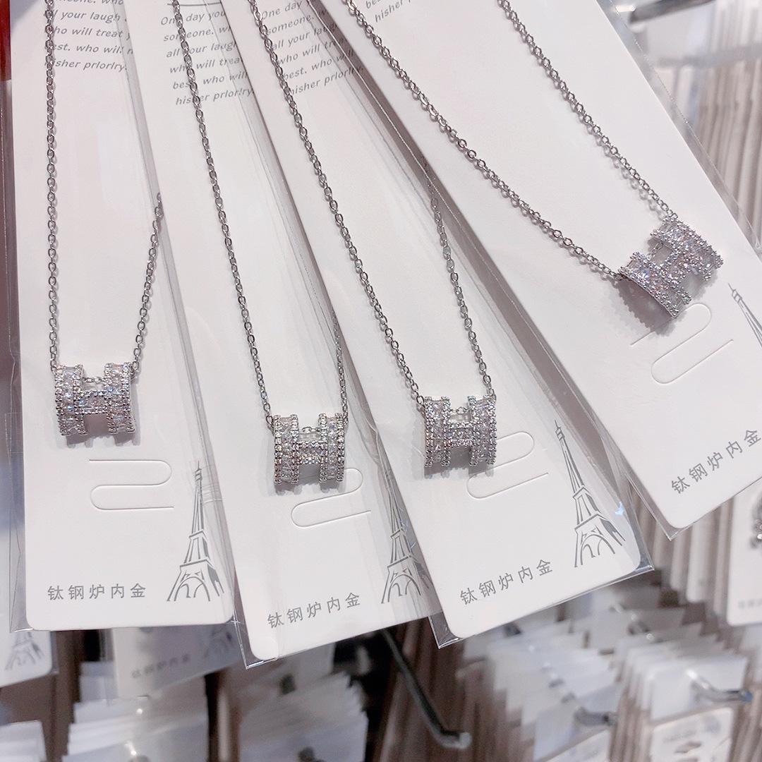 Explosiones Transfronterizas Moda Acero de Titanio Collar Letra H Collar para Mujer Simple Estilo Frío Cadena Clavícula Moda Collar Cadena Combinable
