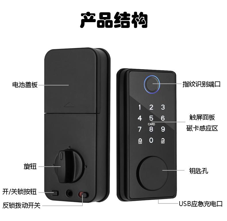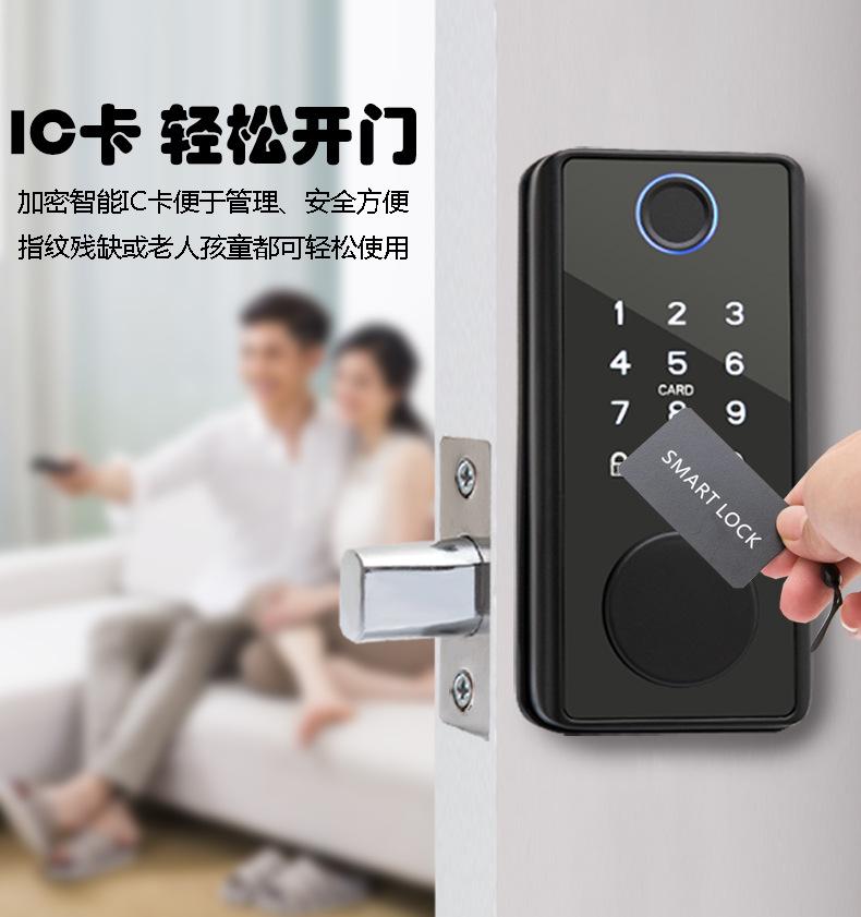 Cerradura de contraseña con huella dactilar inteligente, reconocimiento facial, tarjeta deslizante con desbloqueo remoto por teléfono móvil, cerradura antirrobo inteligente, puerta de vidrio, huella dactilar