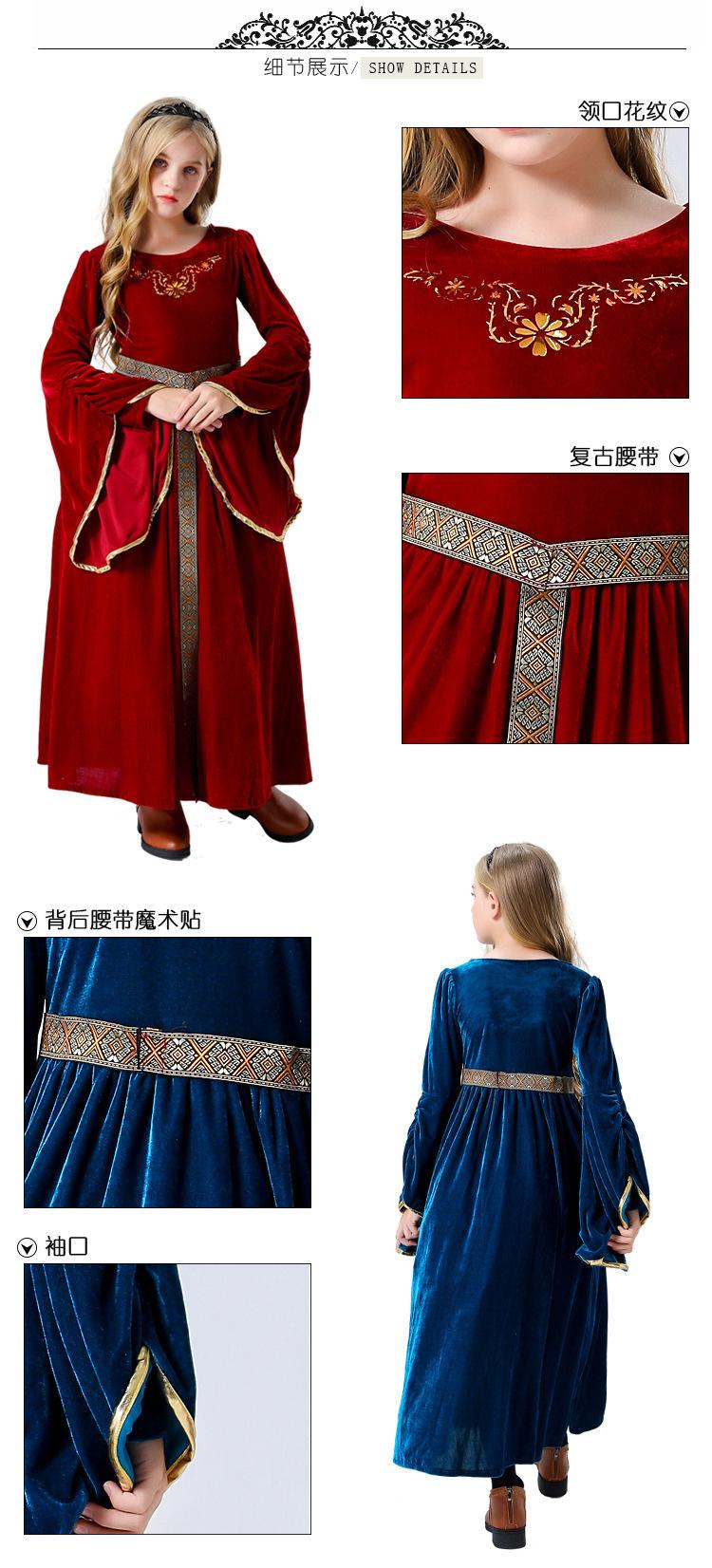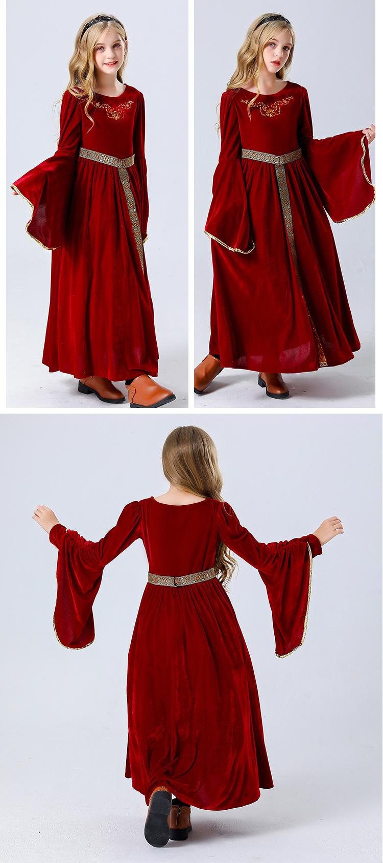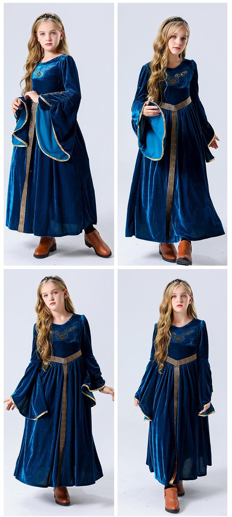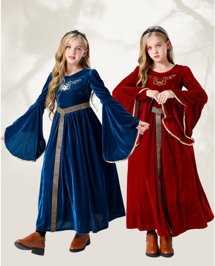 Halloween Retro Palacio Baile Manga Trompeta Cosplay Disfraz de Actuación para Niños Ropa Europea Medieval