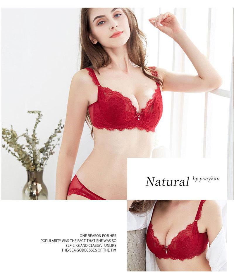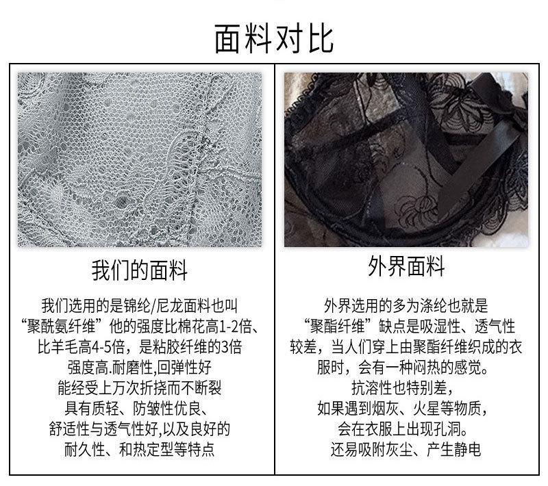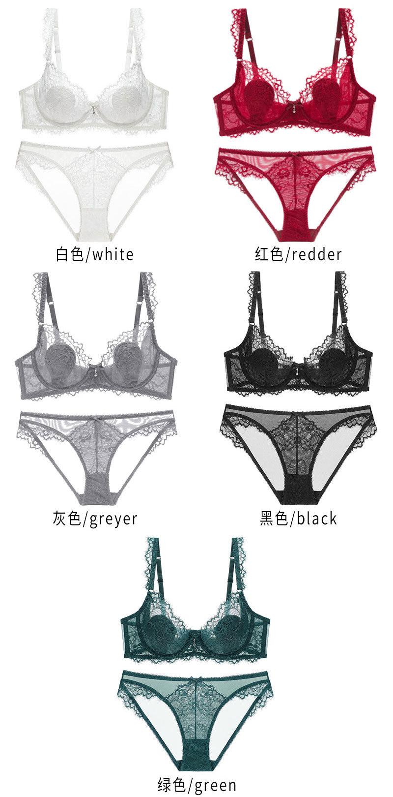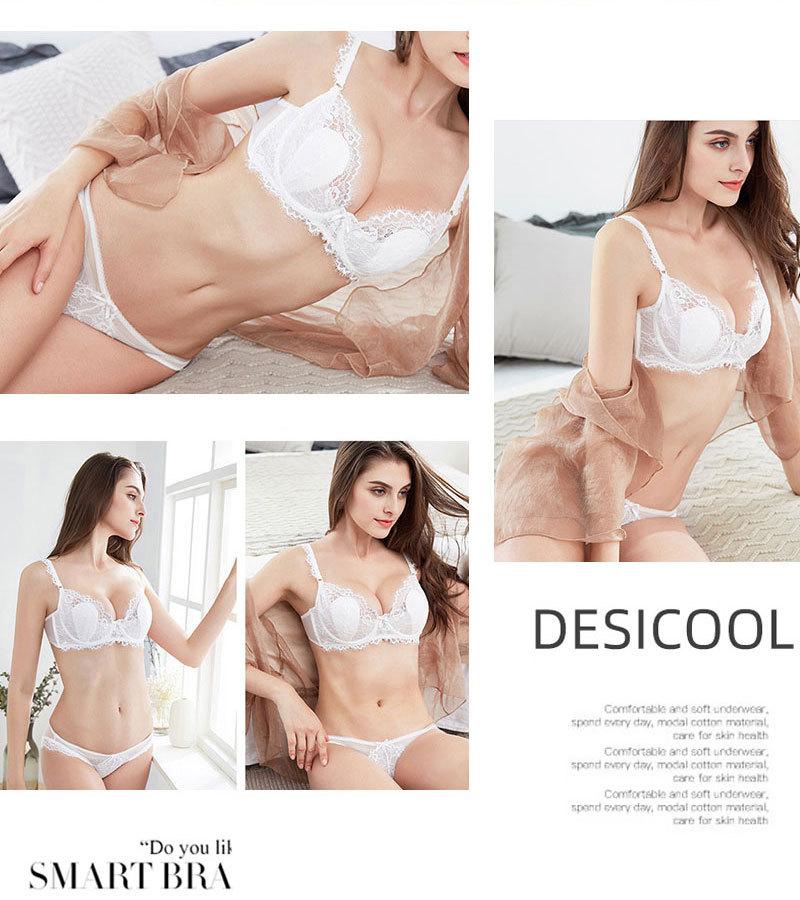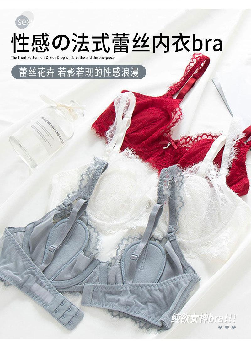 Conjunto de ropa interior de encaje sexy, ropa interior fina de pecho grande y pequeña para mujer, sujetador transpirable Pure Desire, conjunto de sujetador ultrafino