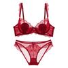 Venta caliente europea y americana, ropa interior sexy, puro deseo, conjunto de sujetador de encaje fino, ropa interior roja, bragas al por mayor