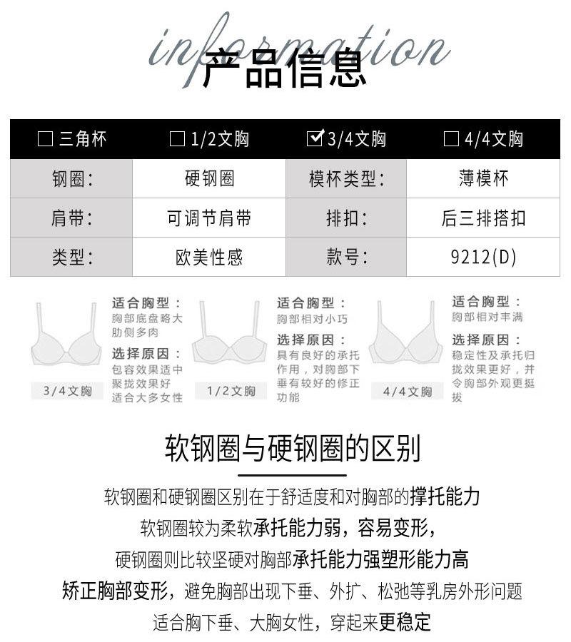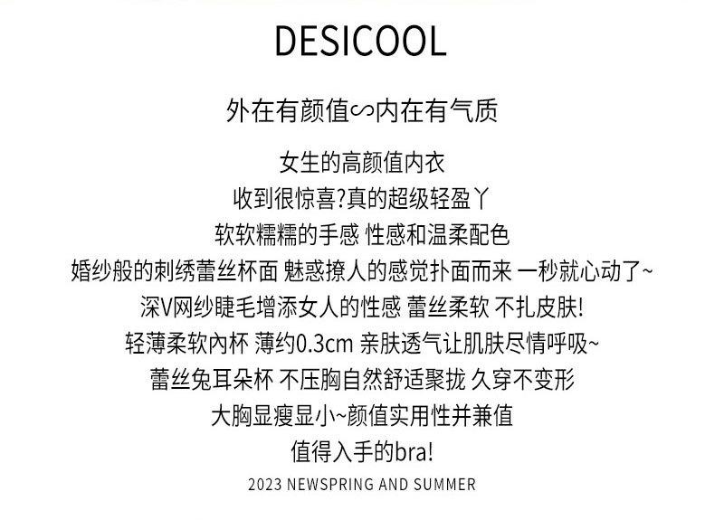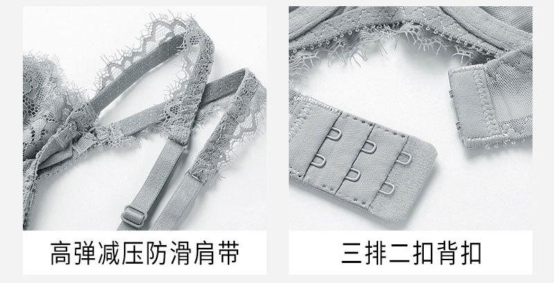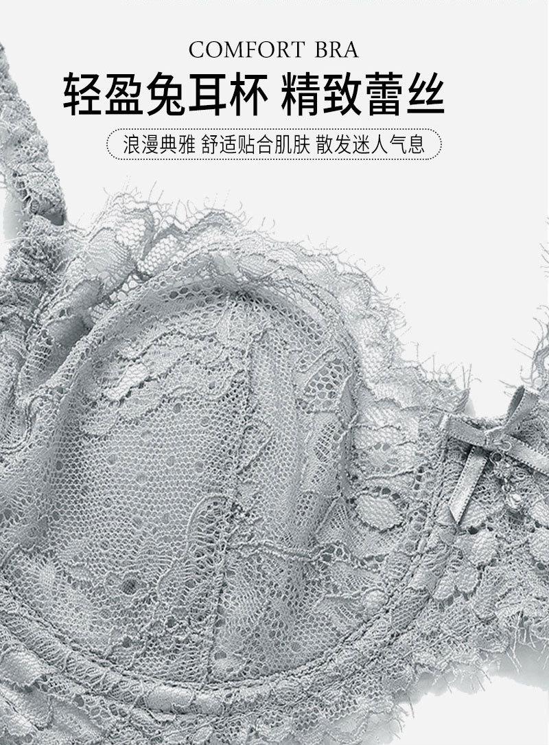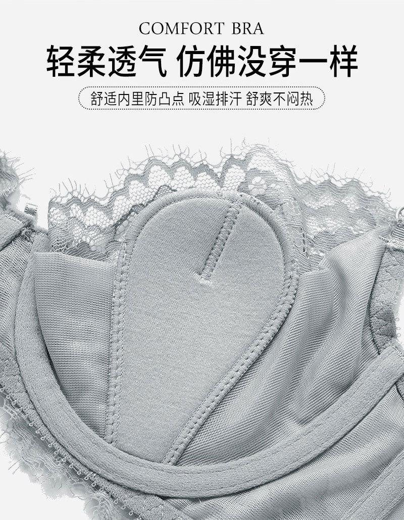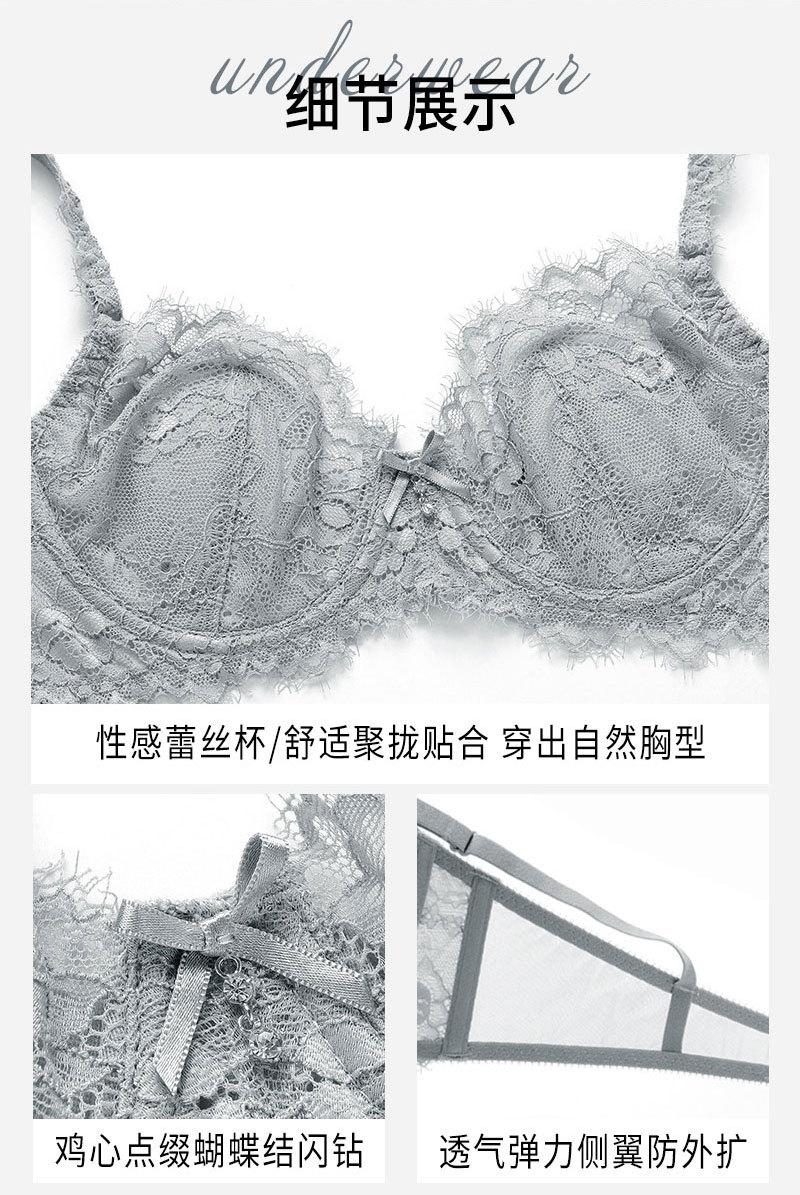 Conjunto de ropa interior ultrafina de verano con sujetador de encaje bordado sexy, deseo puro, pechos grandes que muestran un pequeño sujetador antiflacidez