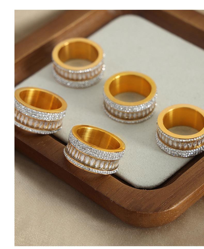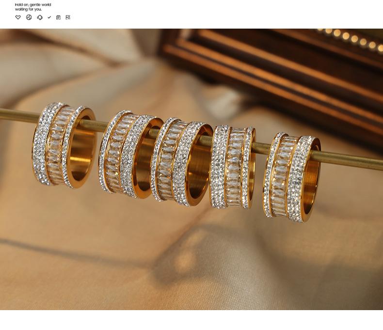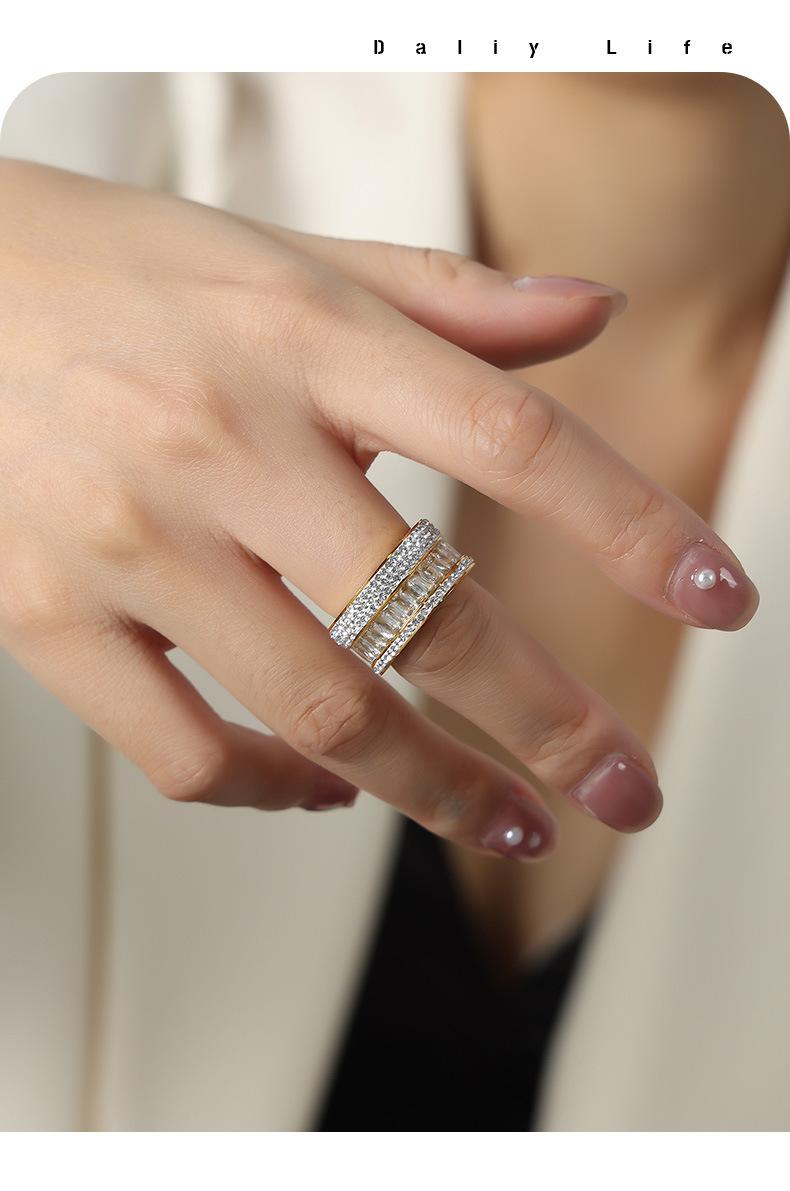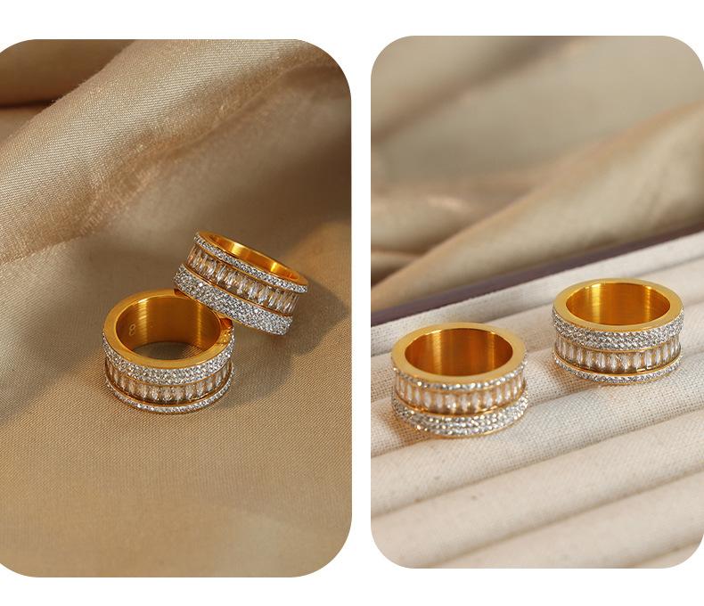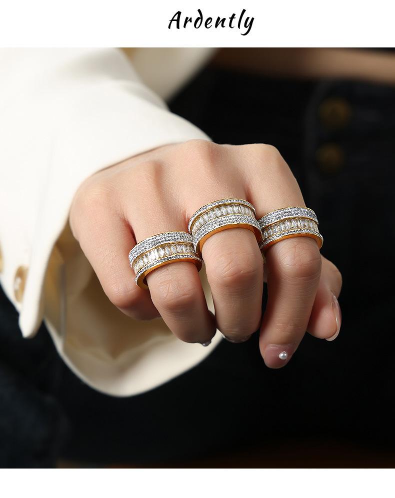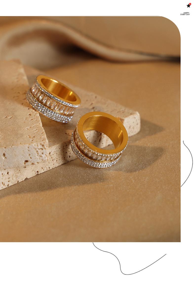 Estilo chic moda personalidad simple combina con todo estilo lujo ligero joyería diseño en capas con incrustaciones de diamantes y circonitas anillo de acero de titanio